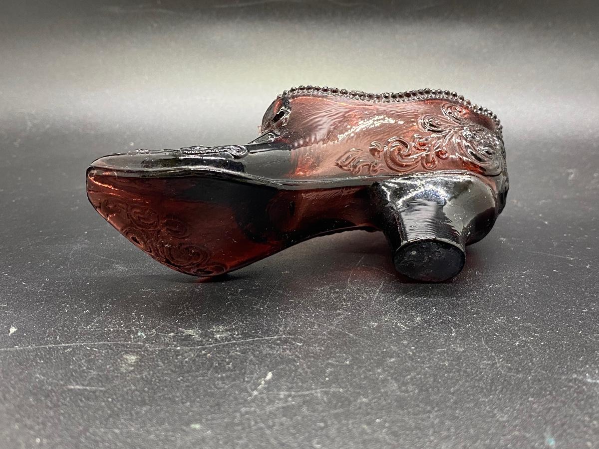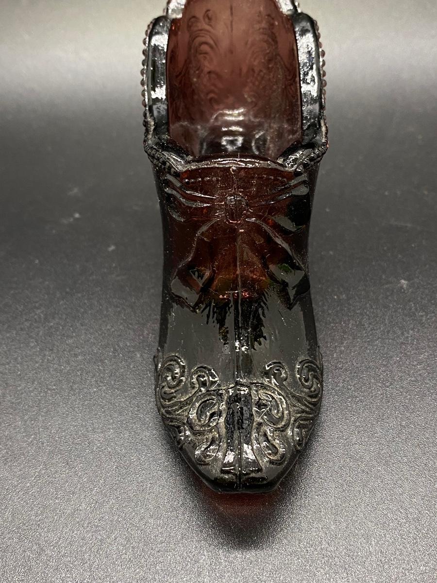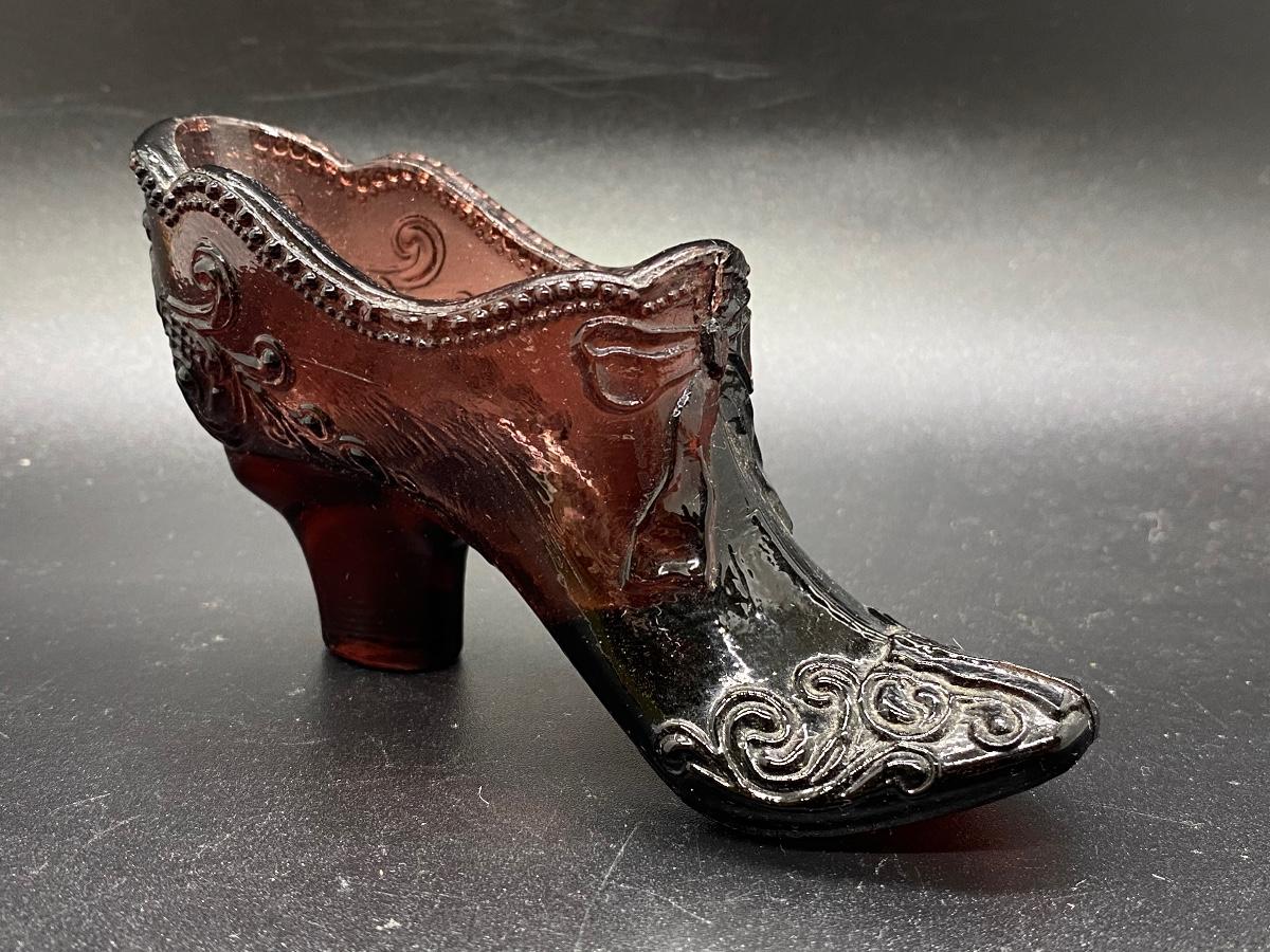 Vintage Purple Amethyst Violet Glass Slipper Shoe Paperweight Trinket Dish Figurine