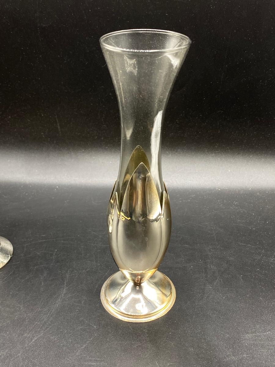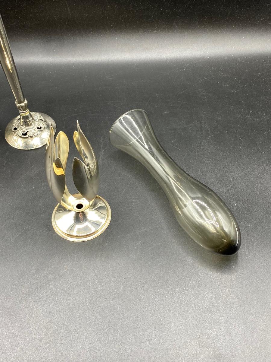 Set of 3 Silver Plate Tone Metal Vintage Bud Vases