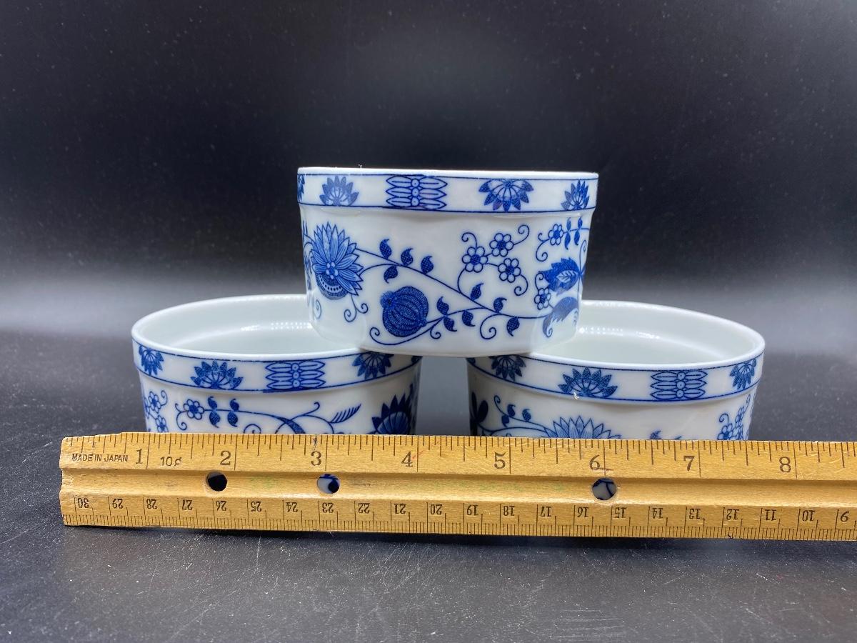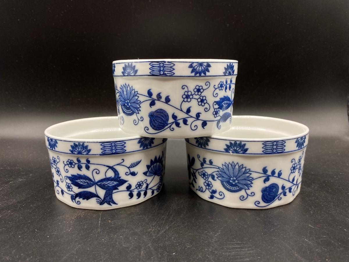Set of 3 Blue Onion Ceramic Ramakin Bowls by Mann