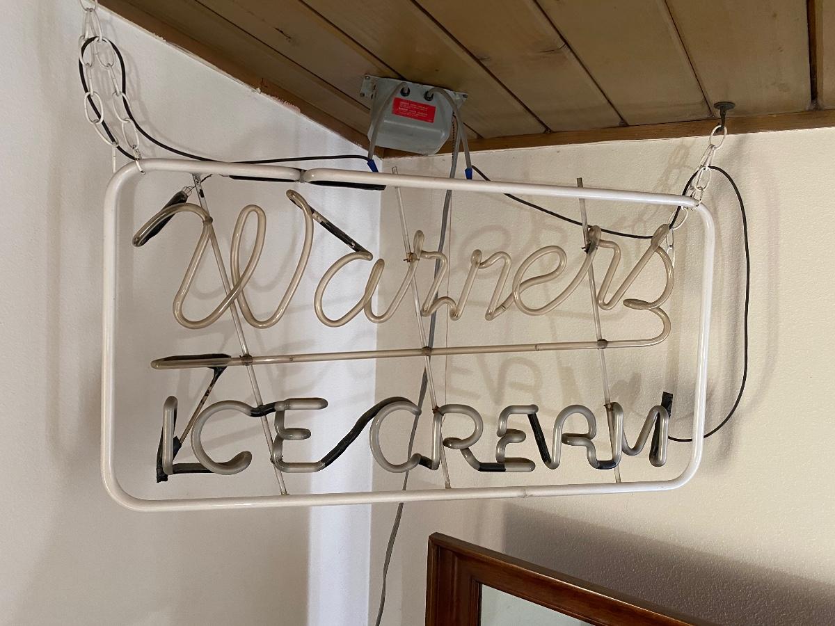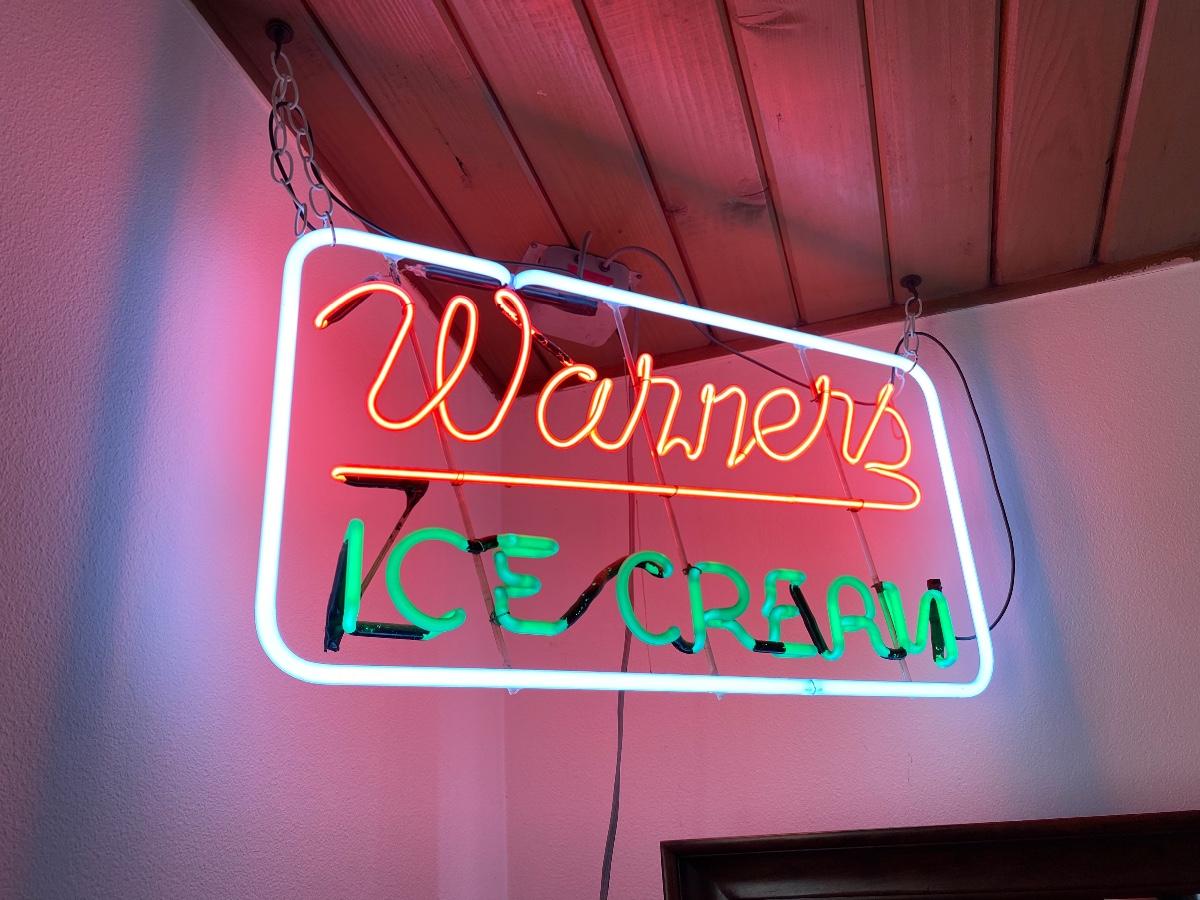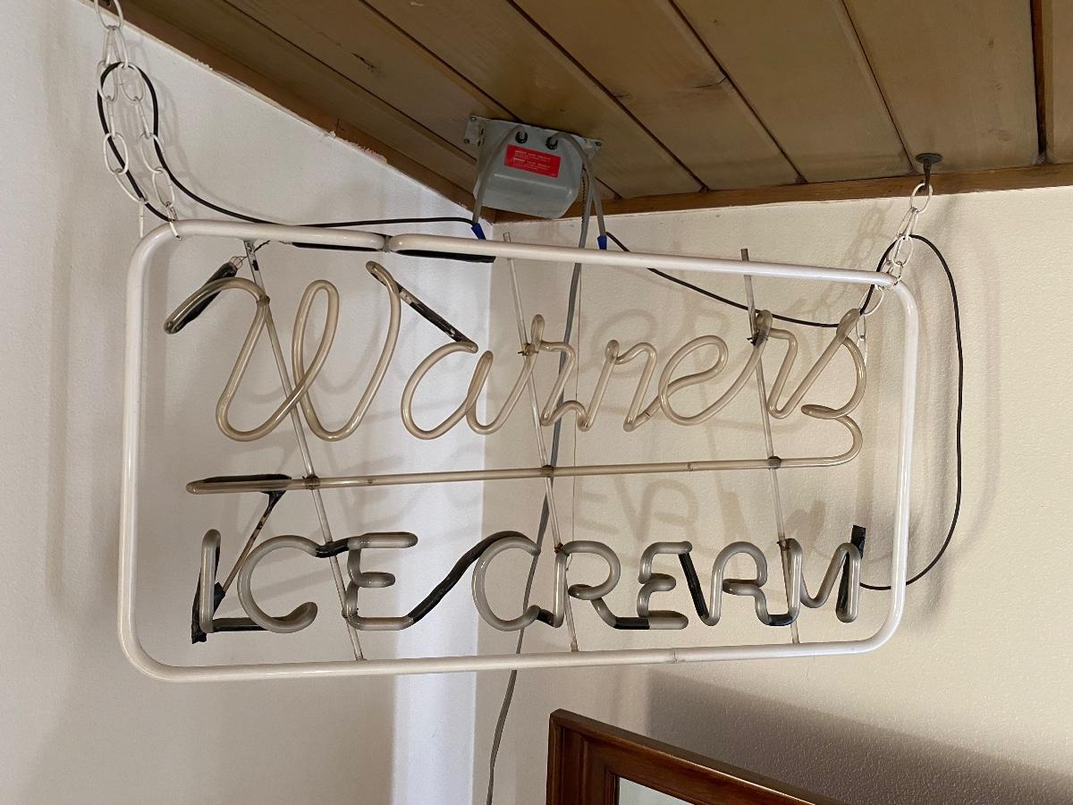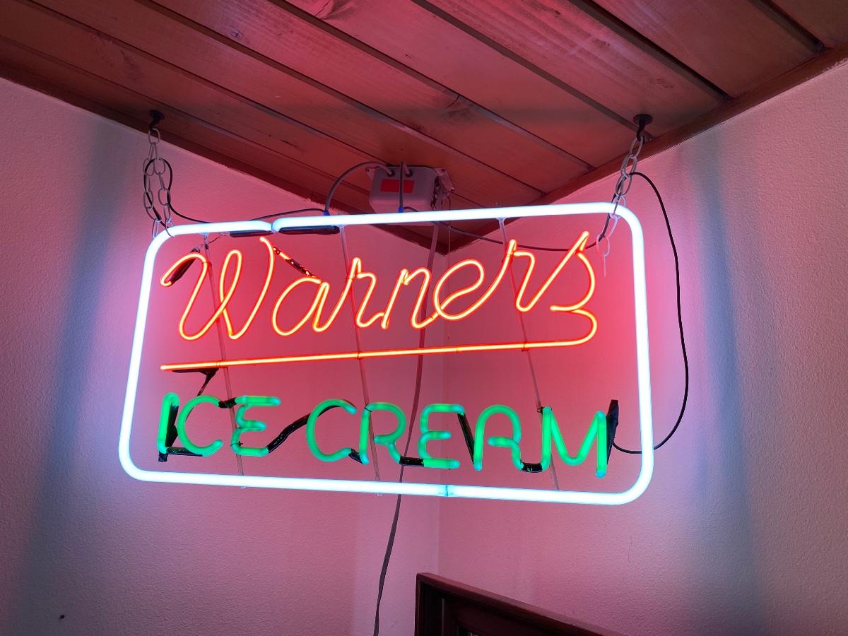 Warners Ice Cream neon hanging window sign. Not sure of signs origin. Working. About 30" wide. LOCAL PICK UP FULLERTON.