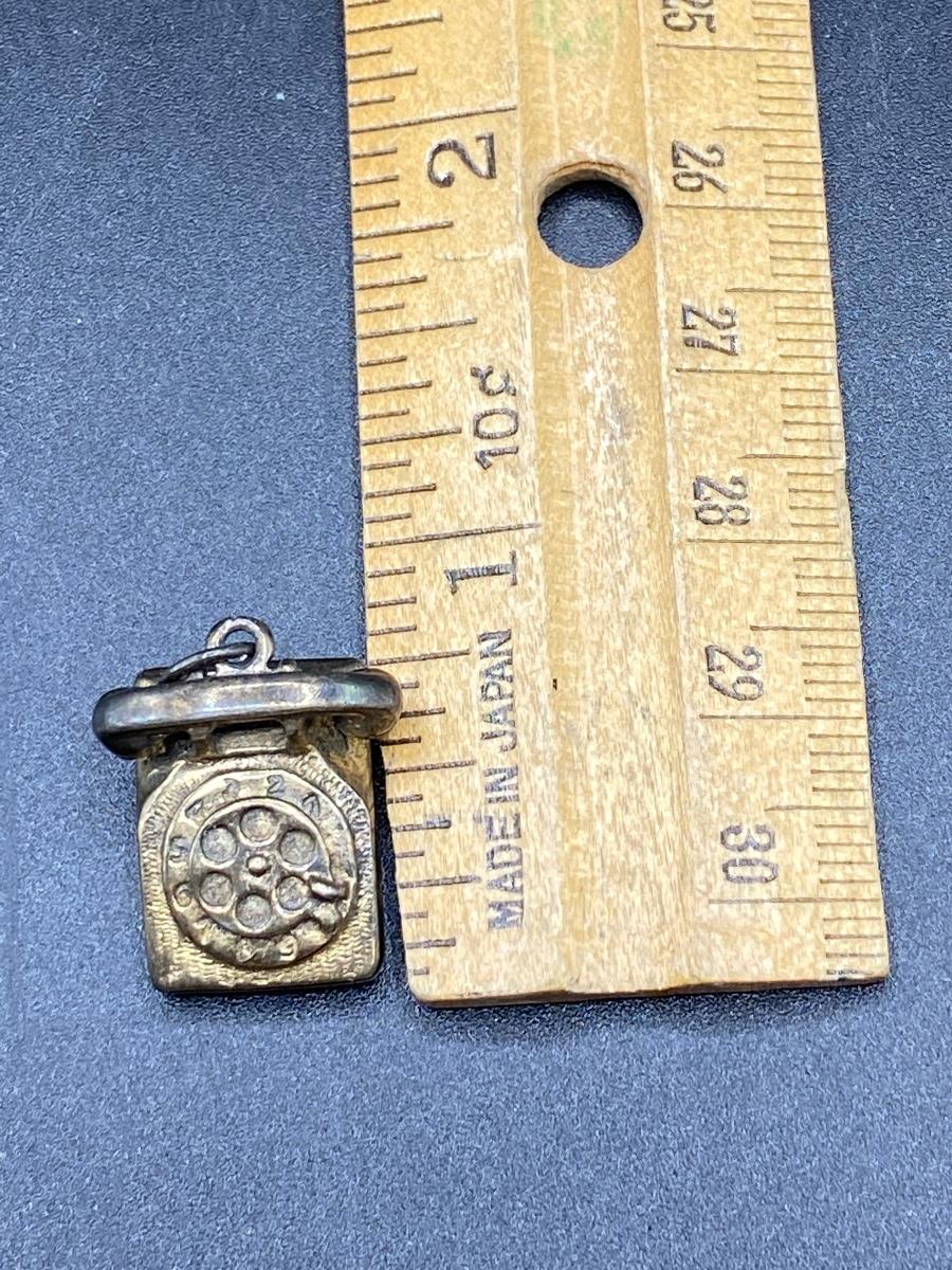 Vintage M&M Sterling rotary phone pendant charm. About 3/4" length.