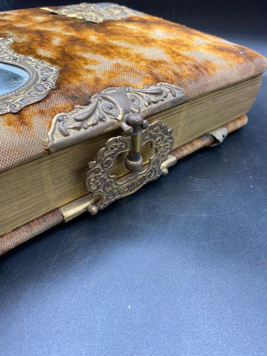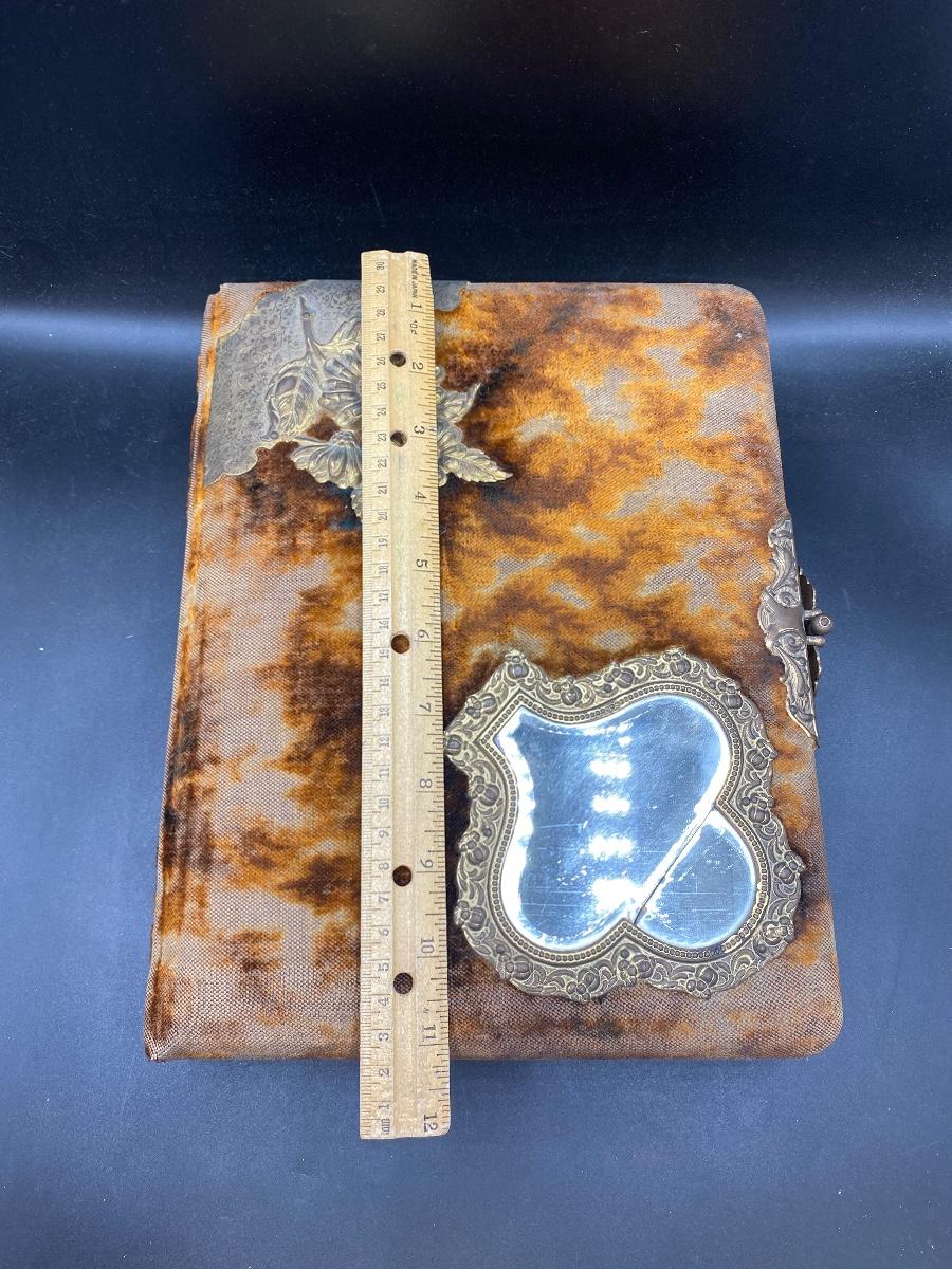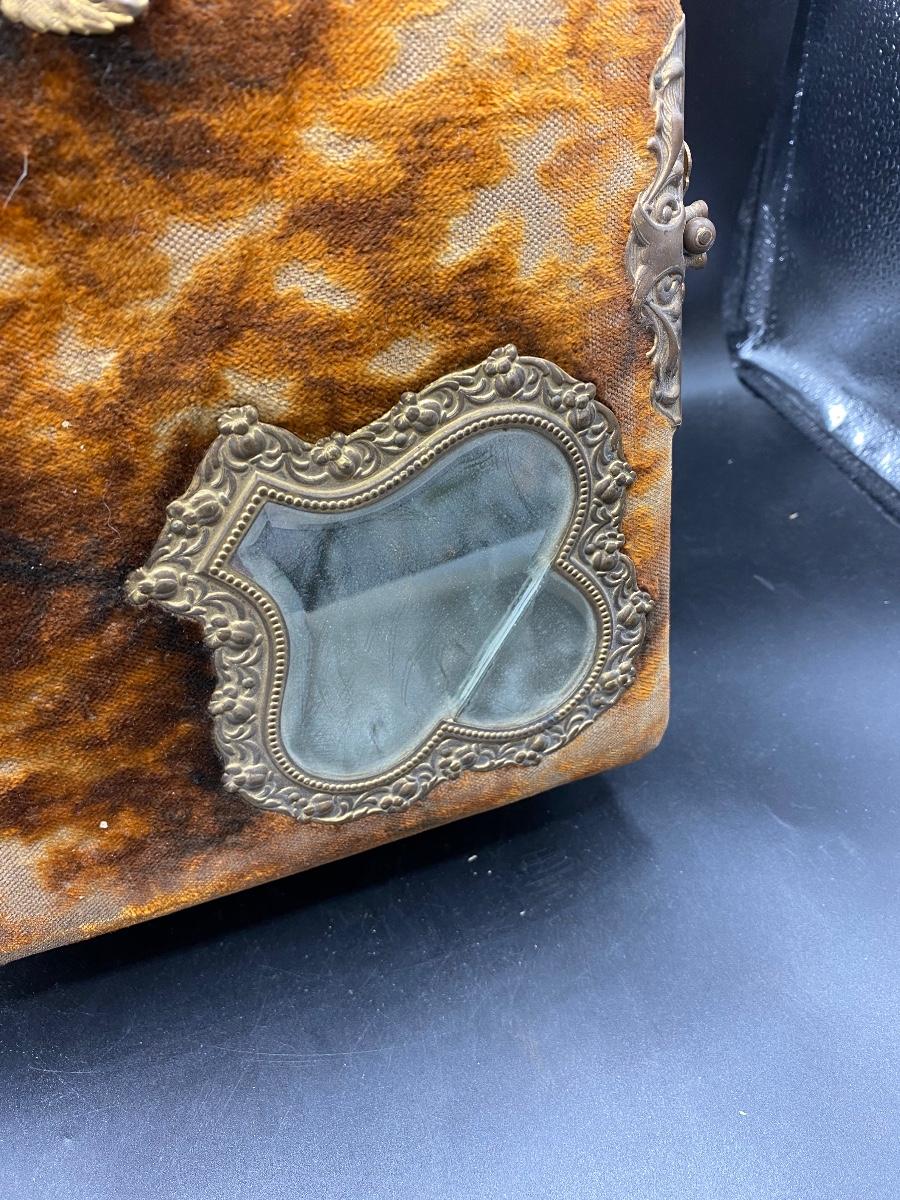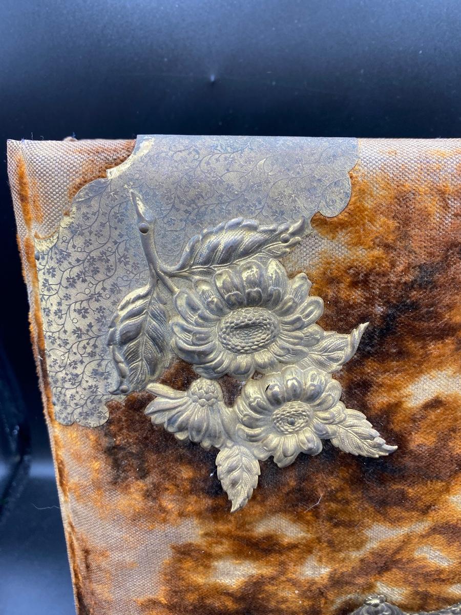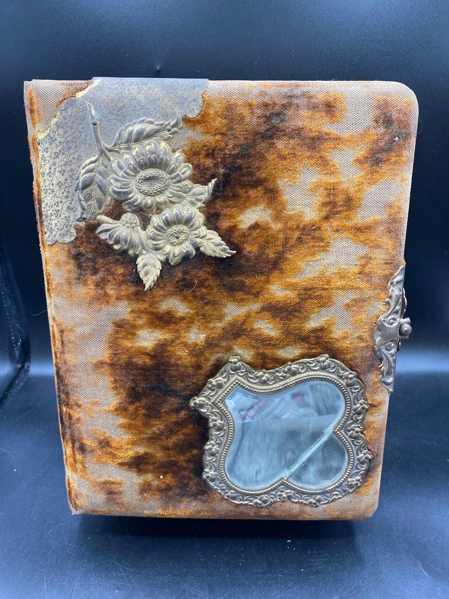 Antique Vintage Photo Album Book. The velvet outer material is very worn, and there is some rips inside.