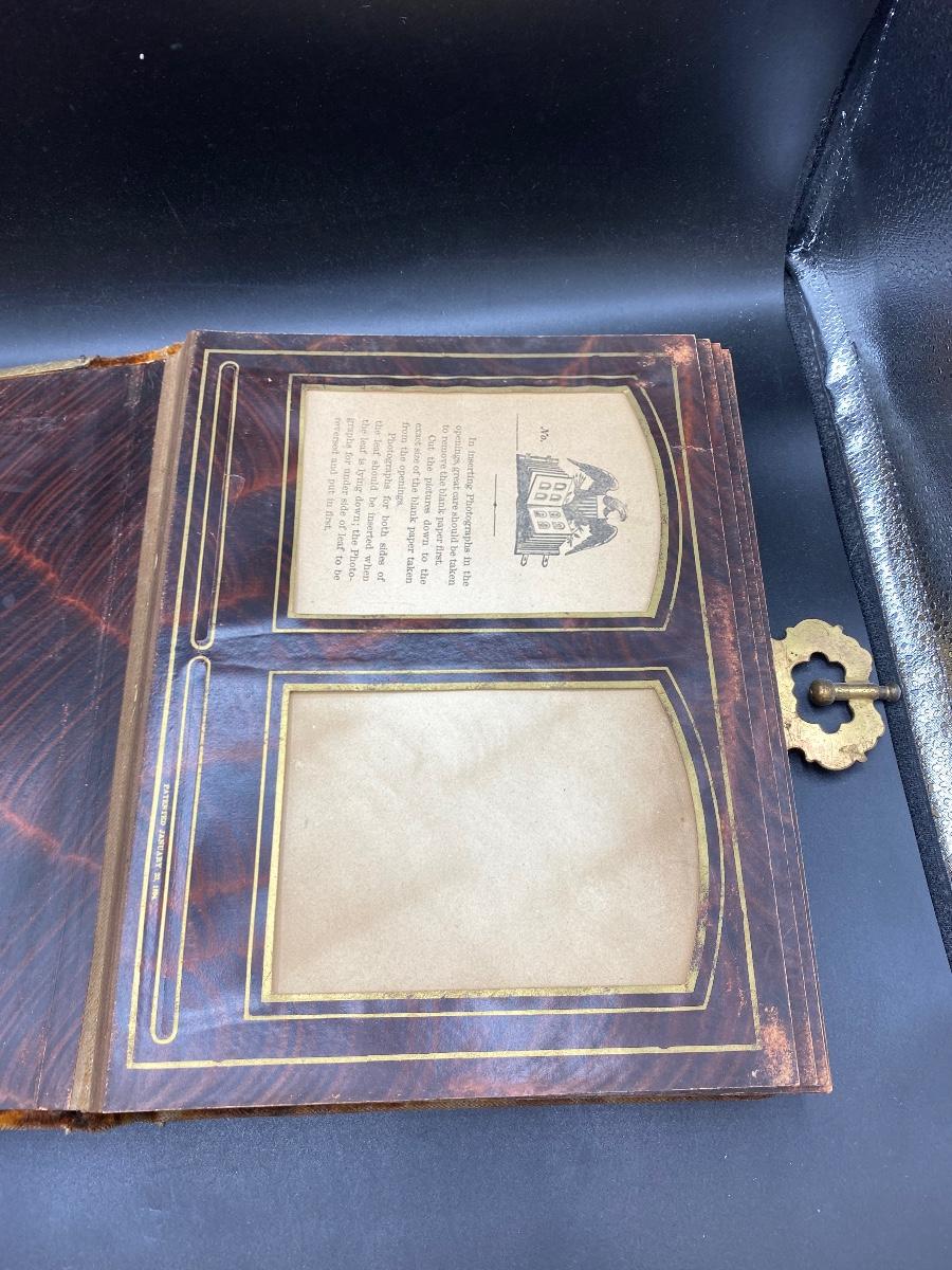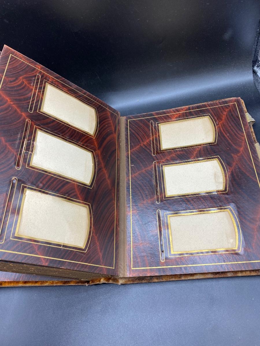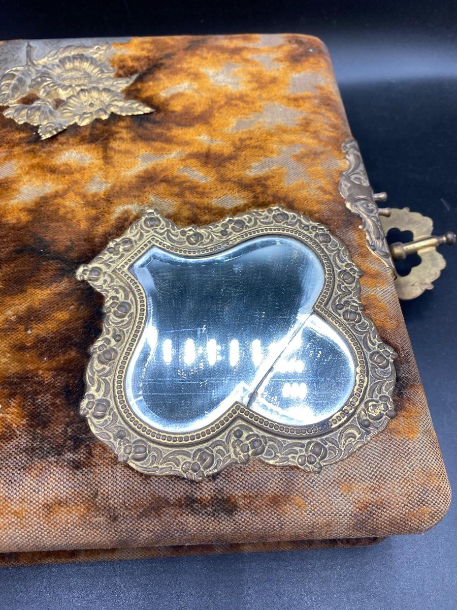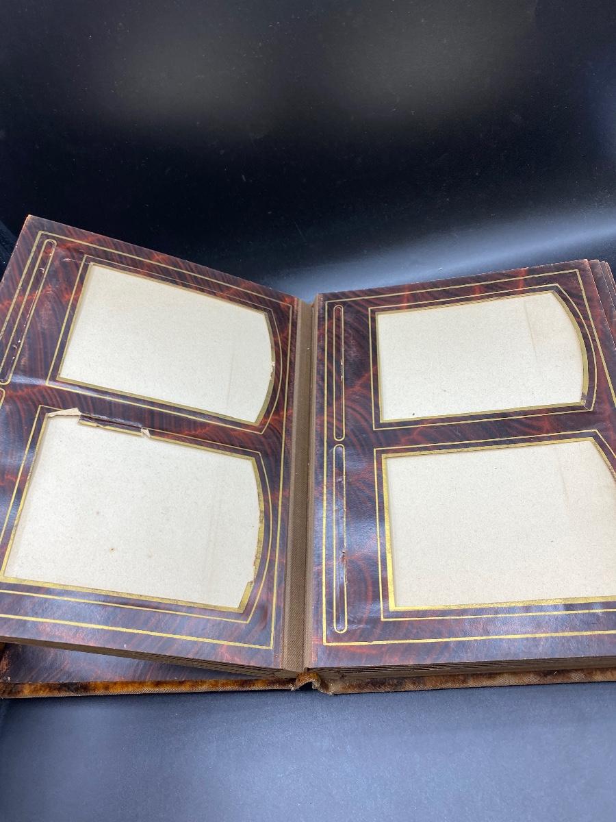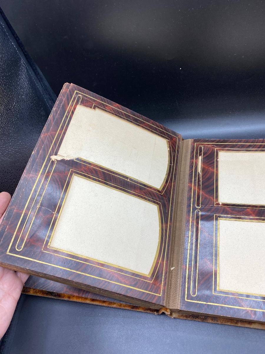 Antique Vintage Photo Album Book. The velvet outer material is very worn, and there is some rips inside.