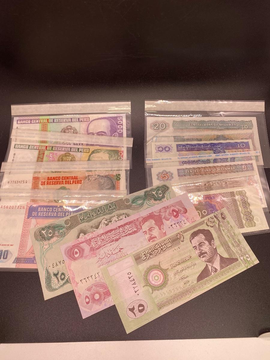 Foreign Money from Peru, Myanmar, and Iraq. All bills are in exceptional condition. See Photos. Some are currency no longer used by the country.