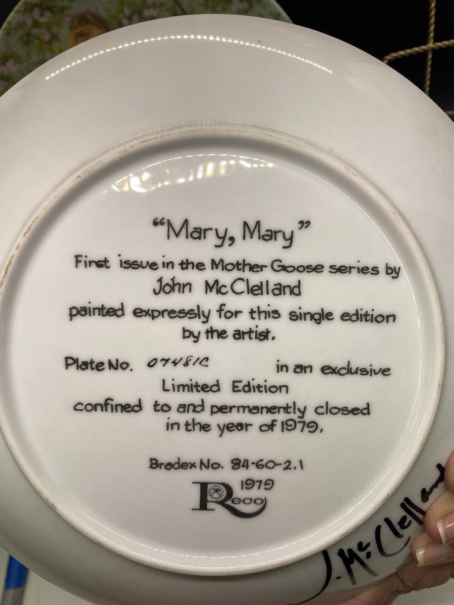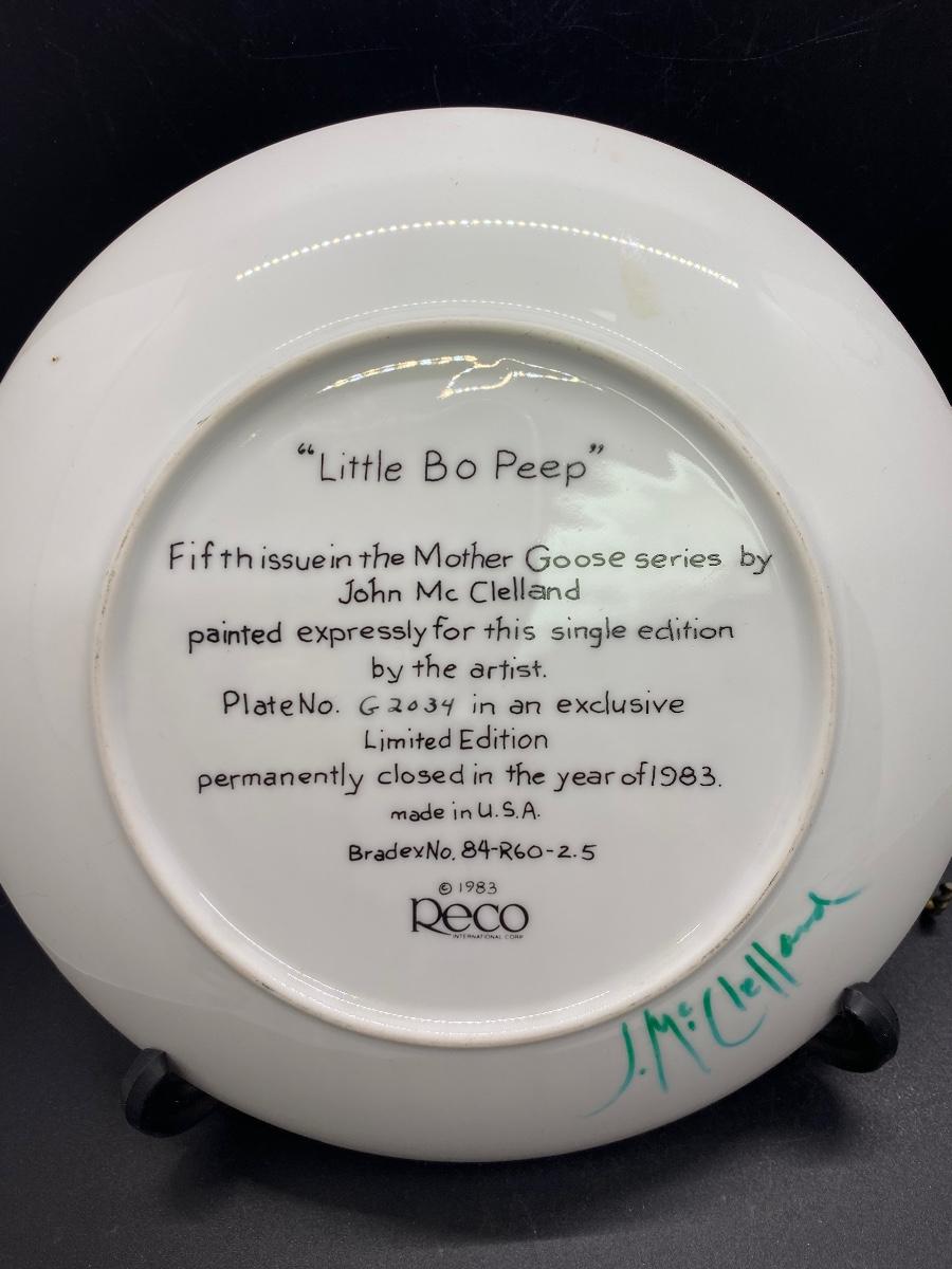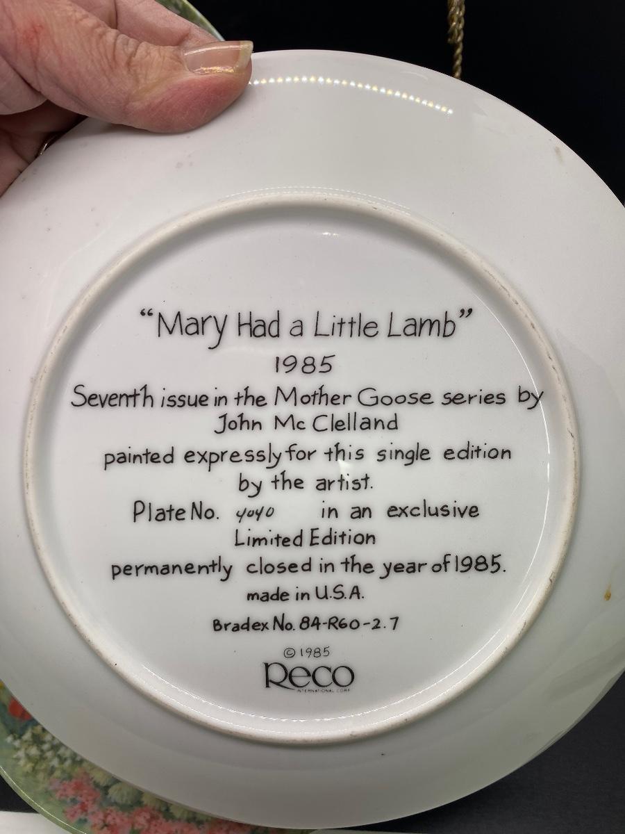 Set of three collector plates from John McClellands Mother Goose Series. Mary had a Little Lamb, Mary, Mary, & Little Bo Peep. Two have been artist signed. All are limited editions.