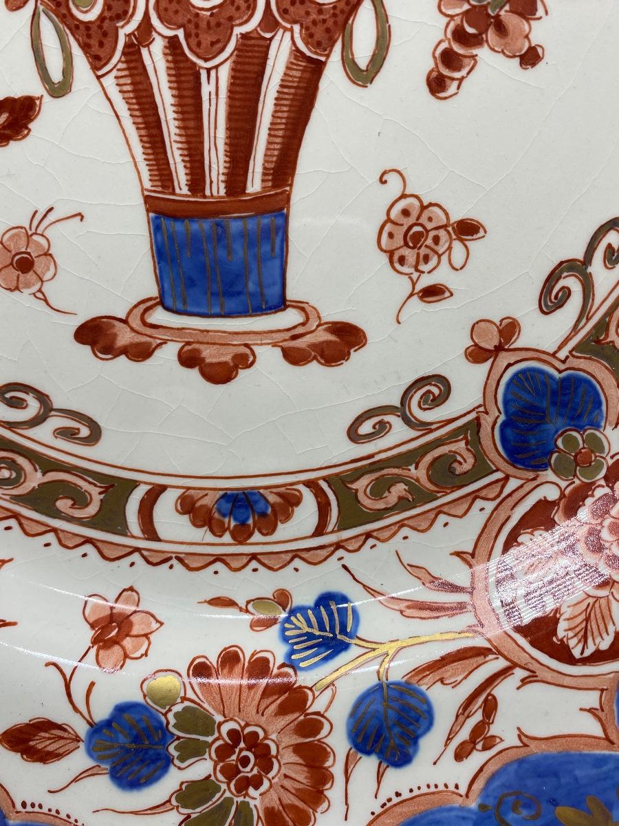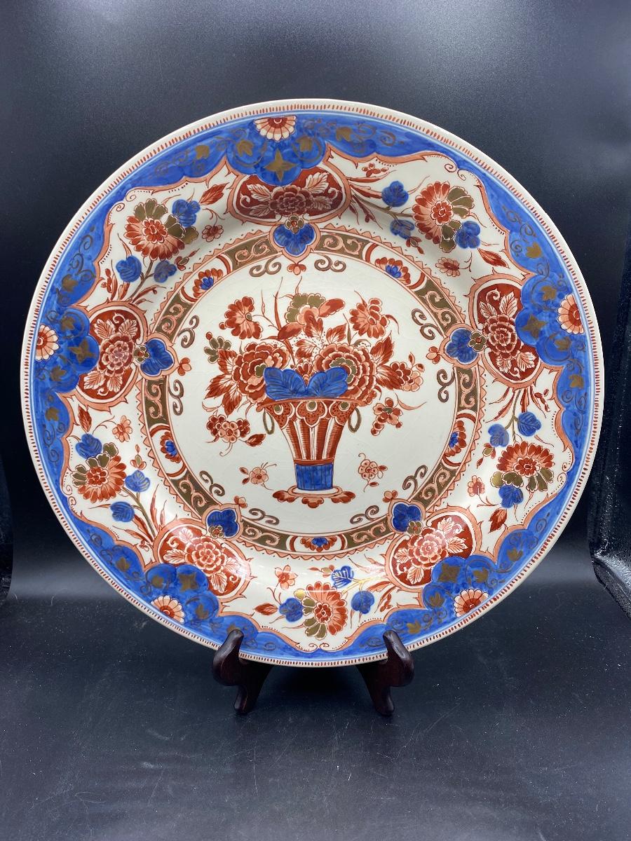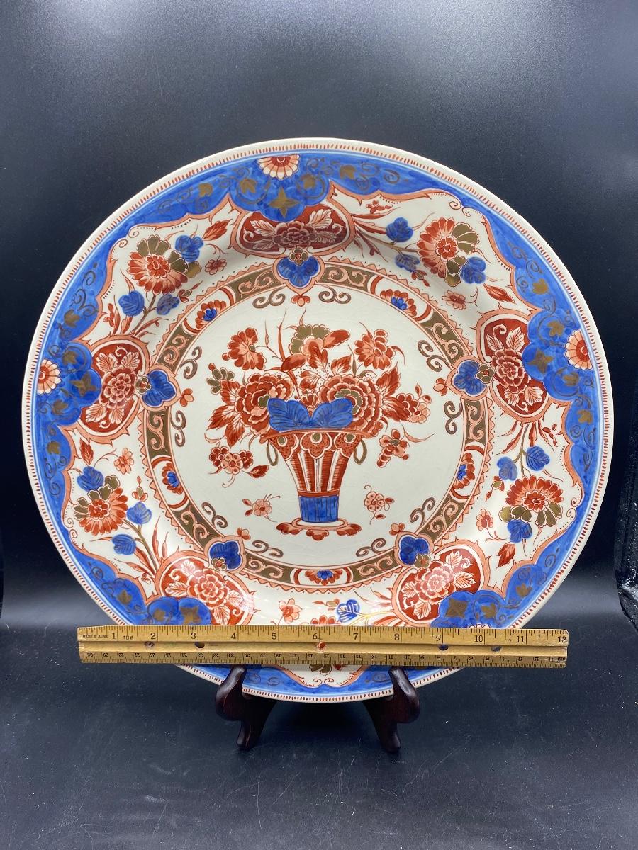 Large Orange & Blue Delft Ornate Floral Charger Round Plate Platter