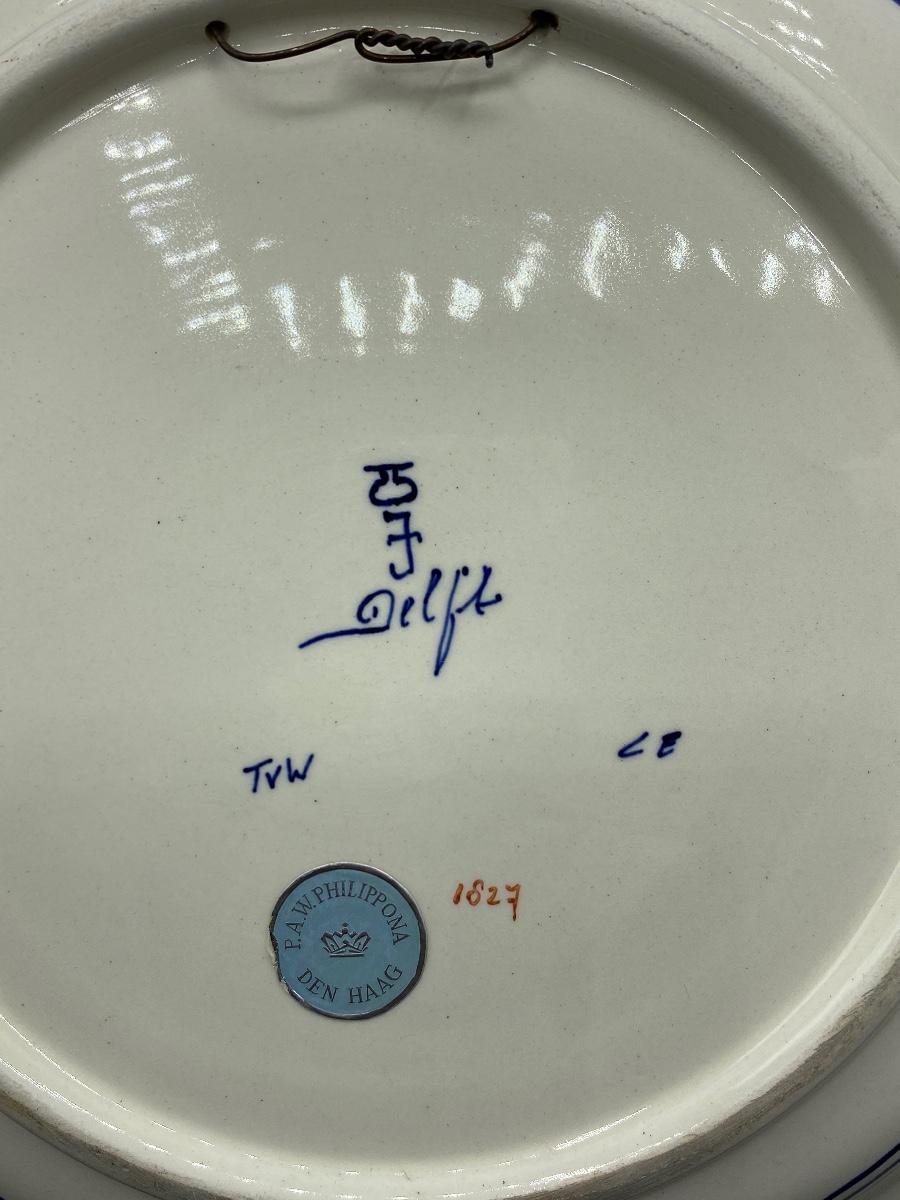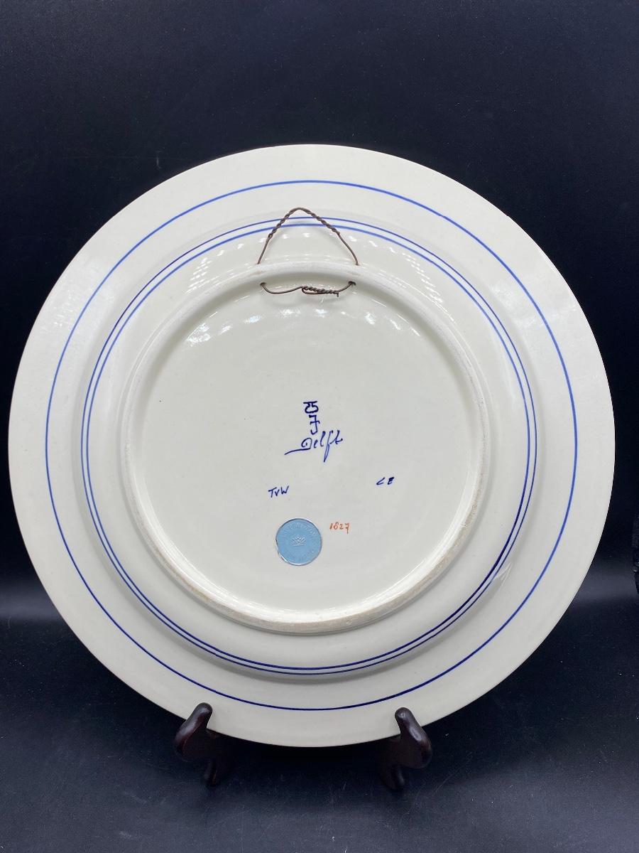 Vintage orange and blue charger plate. Marked Delft on the back. Beautiful ornate floral pattern. Good condition, displays nicely. Can be hung on wall.