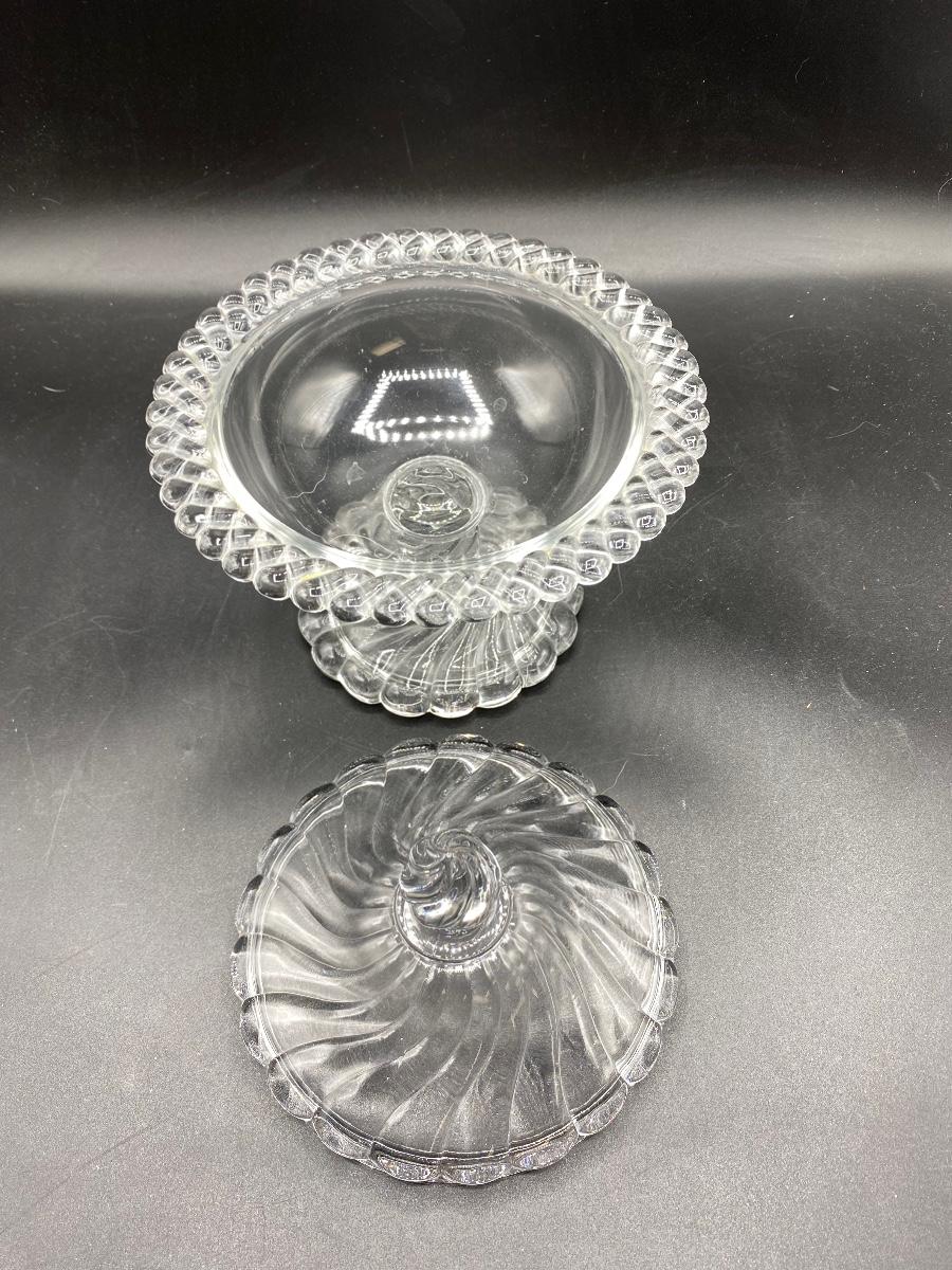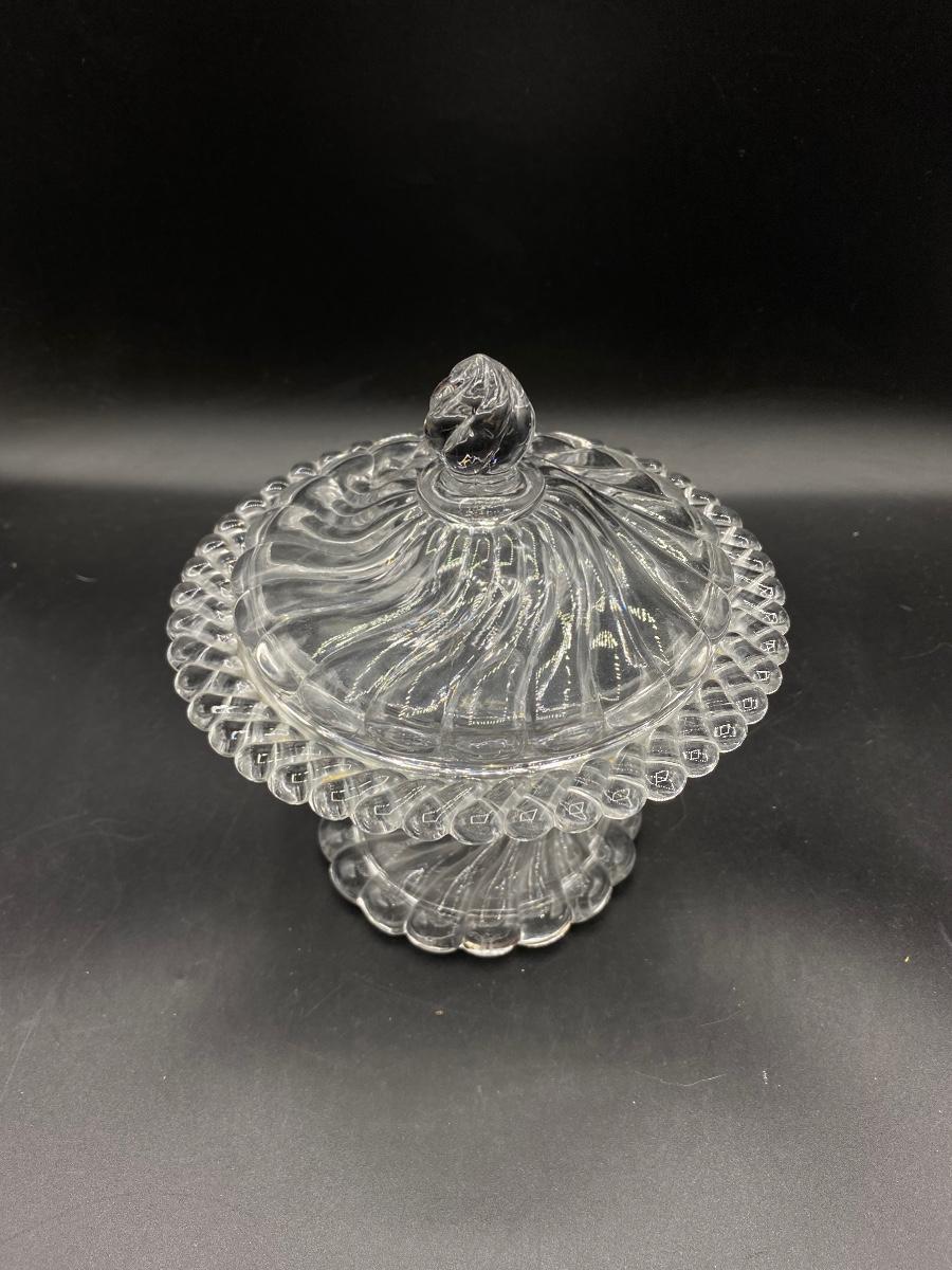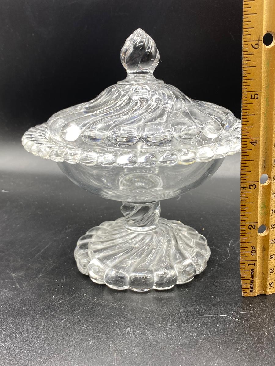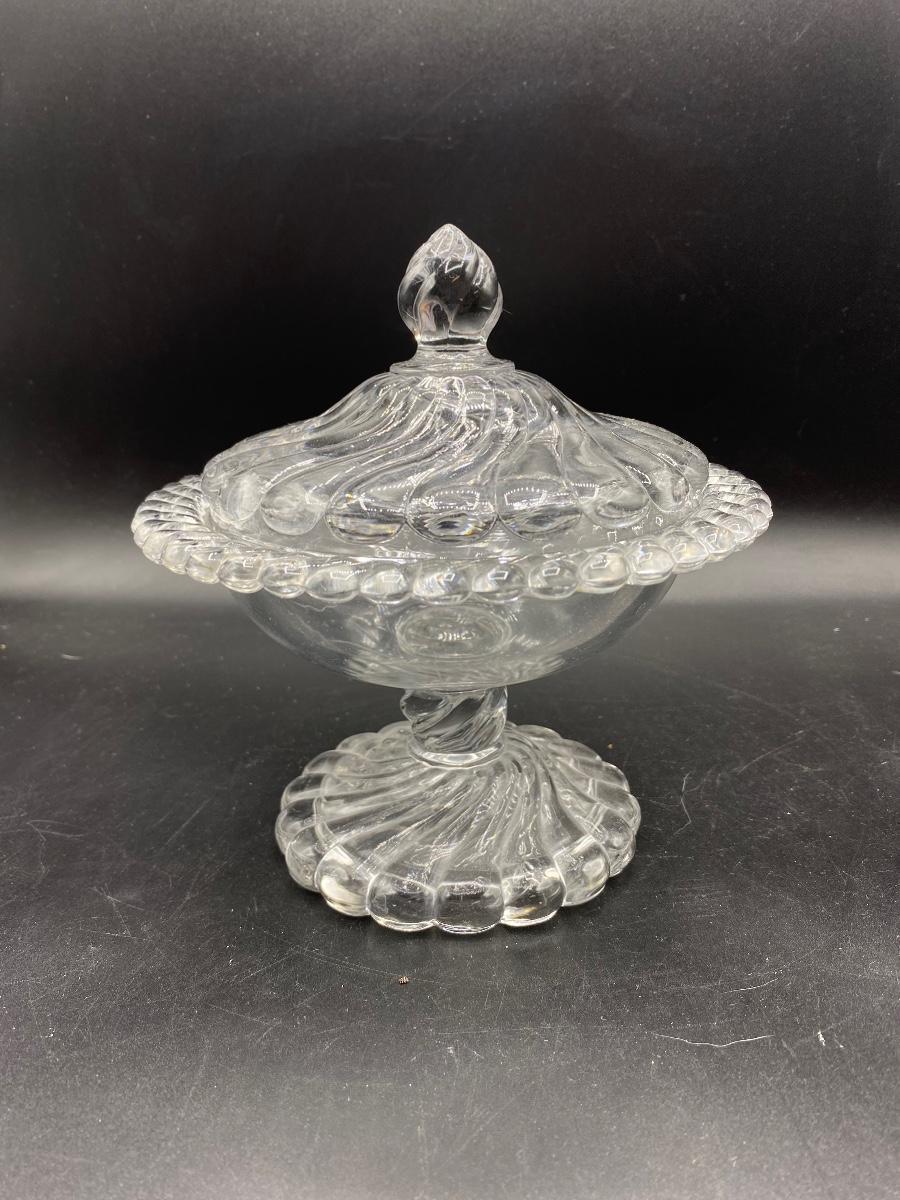 Vintage Colony by Fostoria Swirled Glass Pedestal Lidded Candy Dish