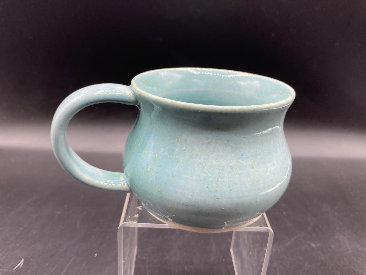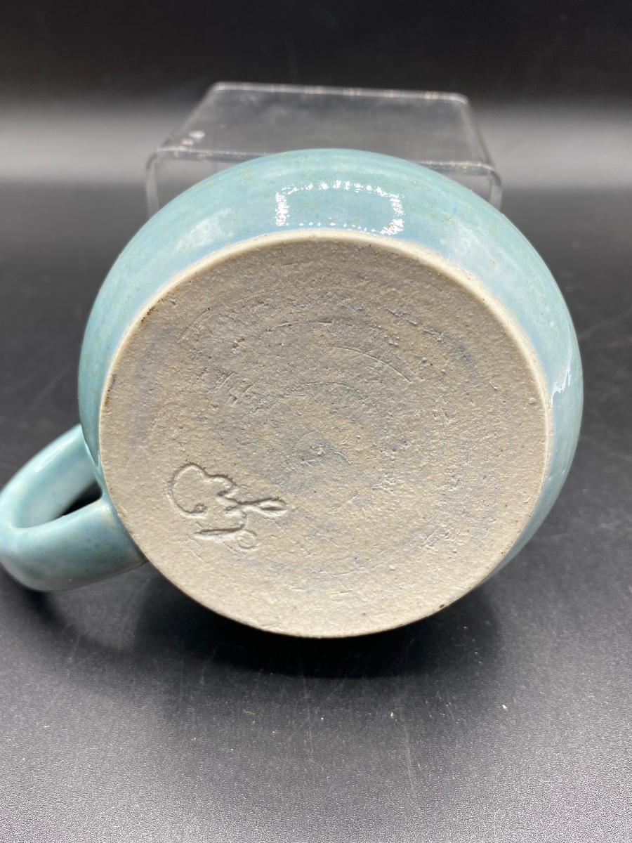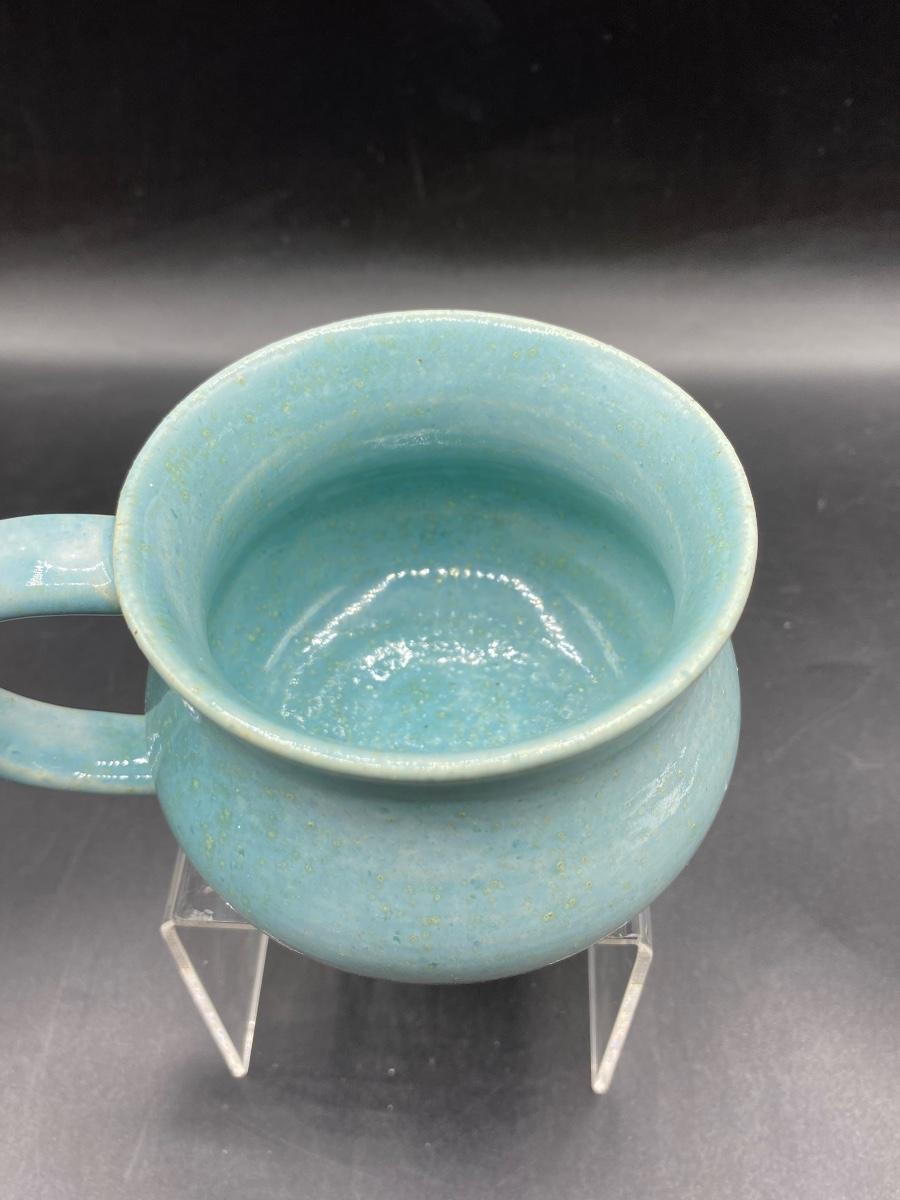 Vintage pale turquoise blue coffee cup. Signed turned pottery piece. In great condition, no chips.