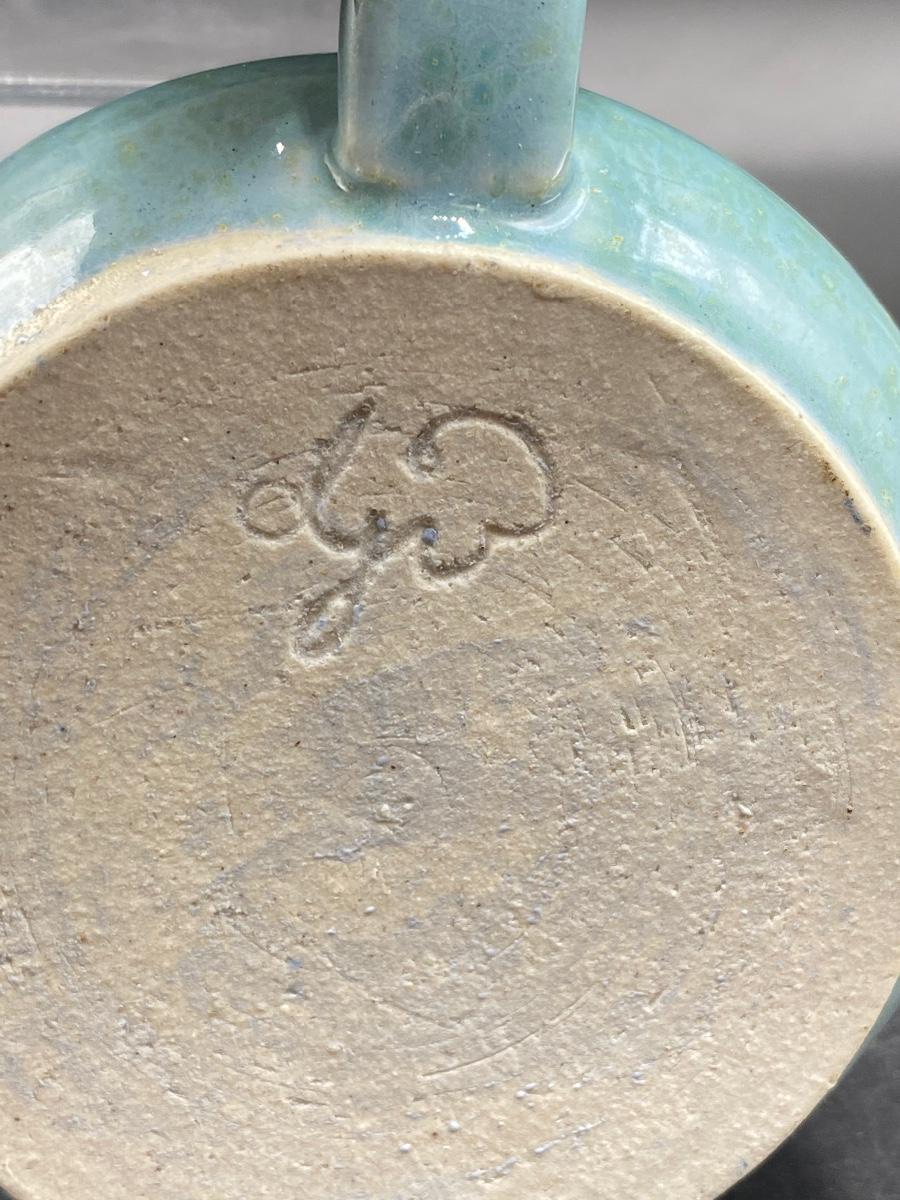 Vintage Pale Teal Turquoise Blue Pottery Coffee Cup Mug Signed