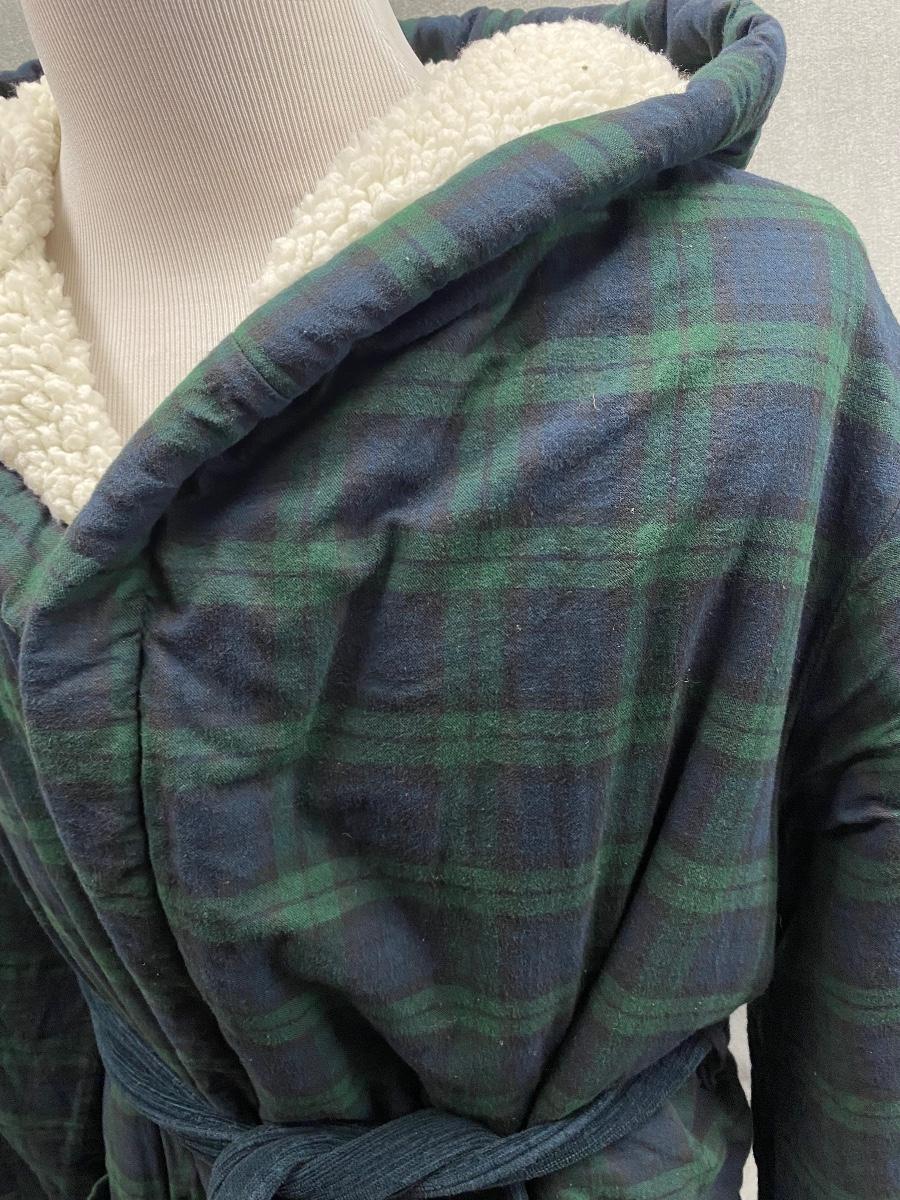 Men's Blue Green Flannel Plaid Fleece Lined Bath Robe Goodfellow & Co.