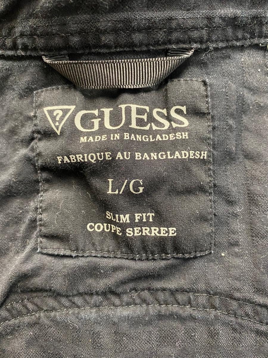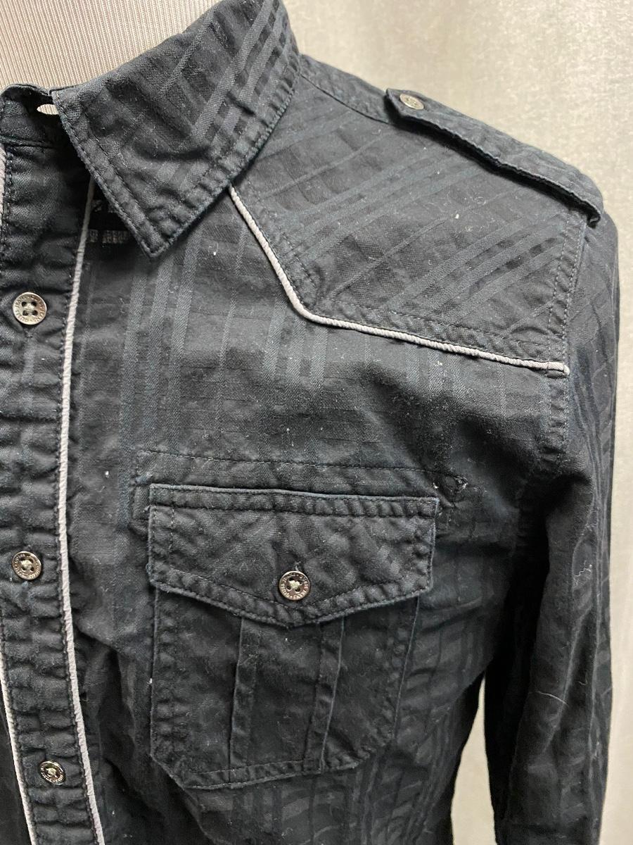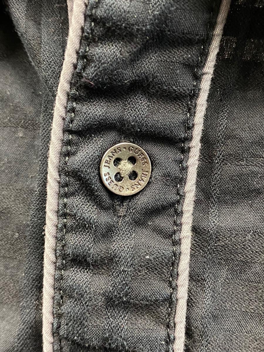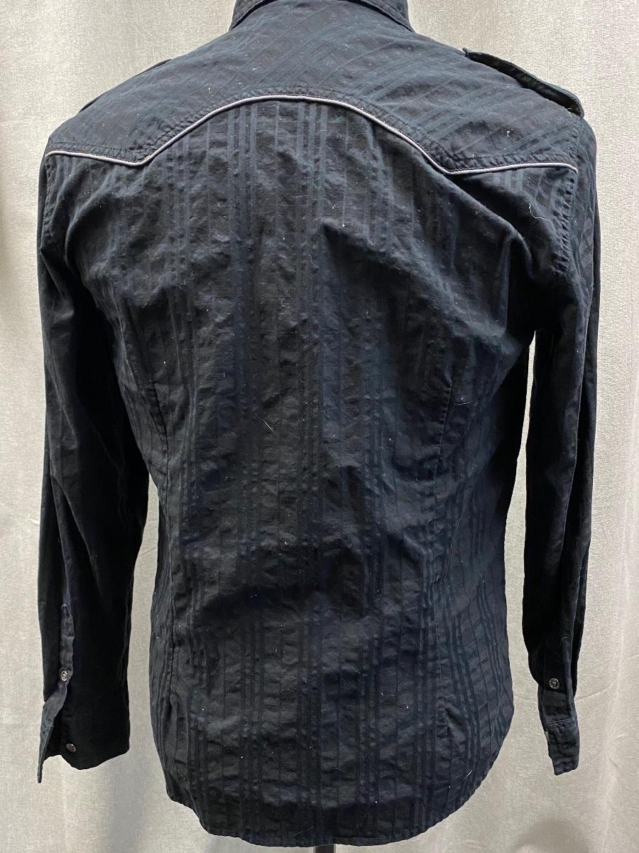 Black on black rodeo cowboy western style shirt from Guess Jeans. Long sleeve, button front. Slim fit size large. Good condition.
