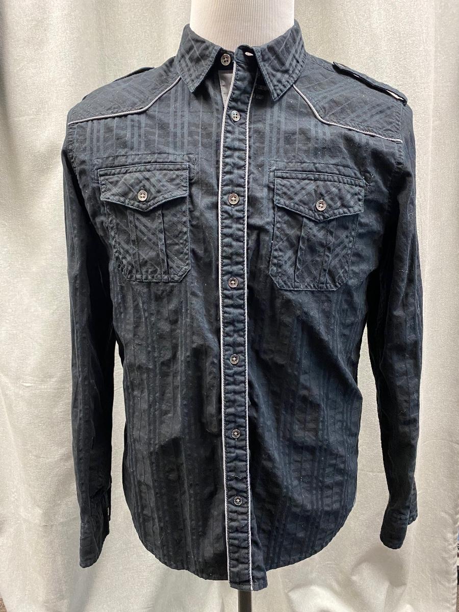 Guess Jeans Black on Black Cowboy Rodeo Western Style Button Front Long Sleeve Slim Fit Large Shirt