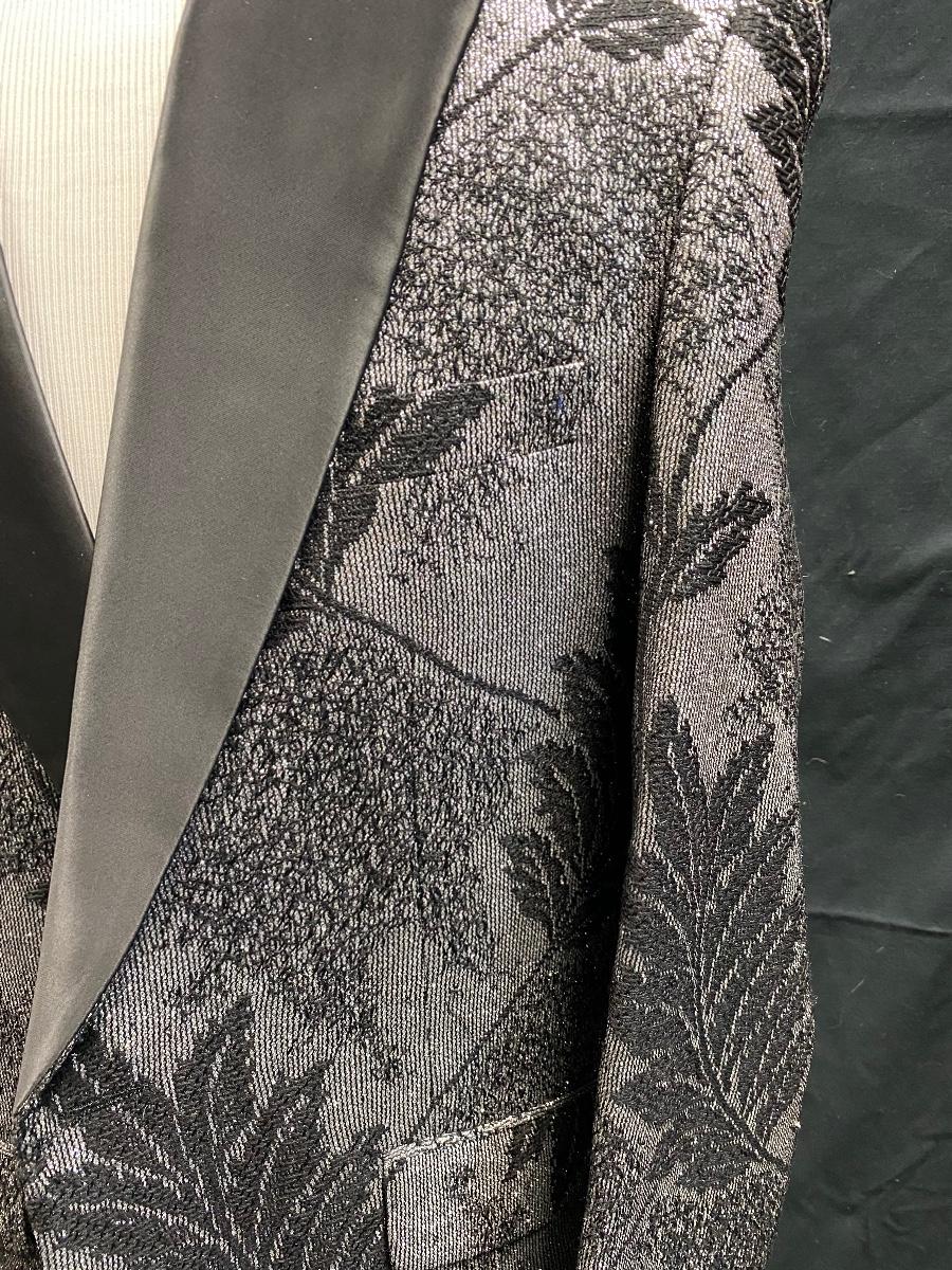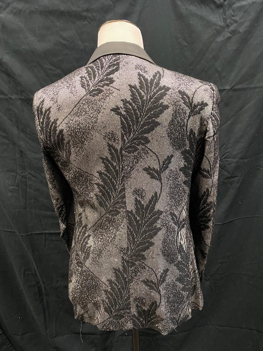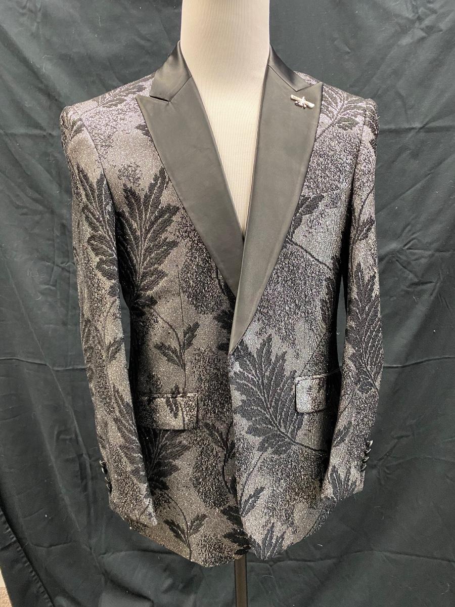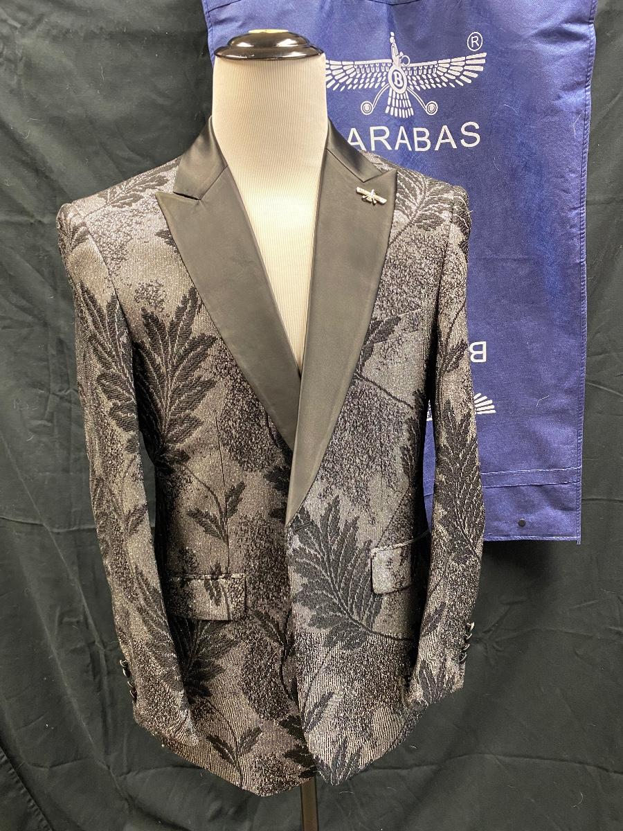 Barabas Black on Black Leaf Pattern Formal Tuxedo Blazer Jacket Suit Coat 42R/L Slim Fit