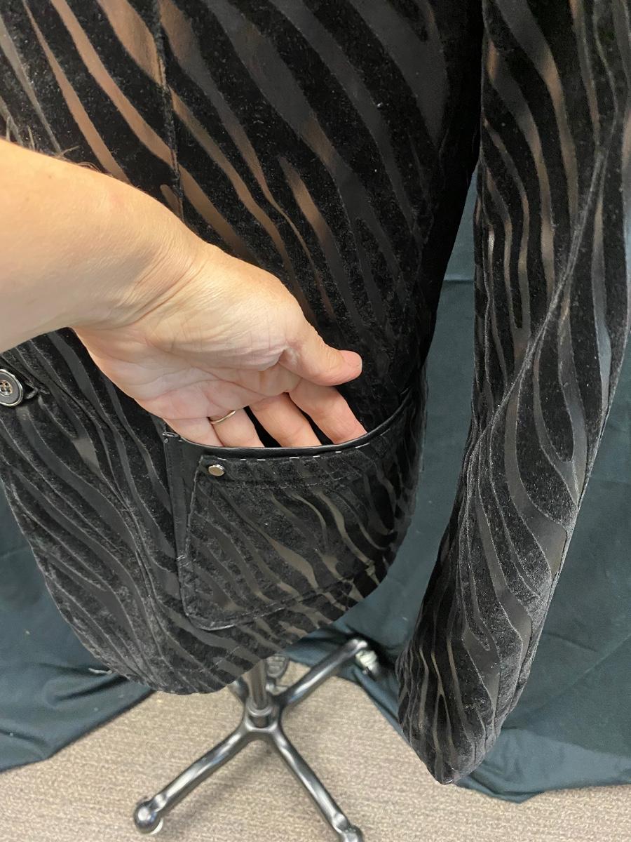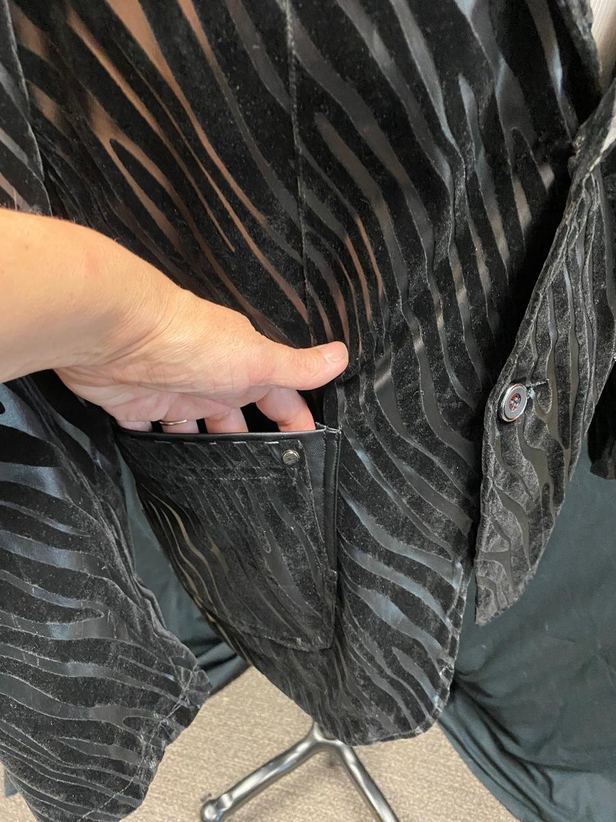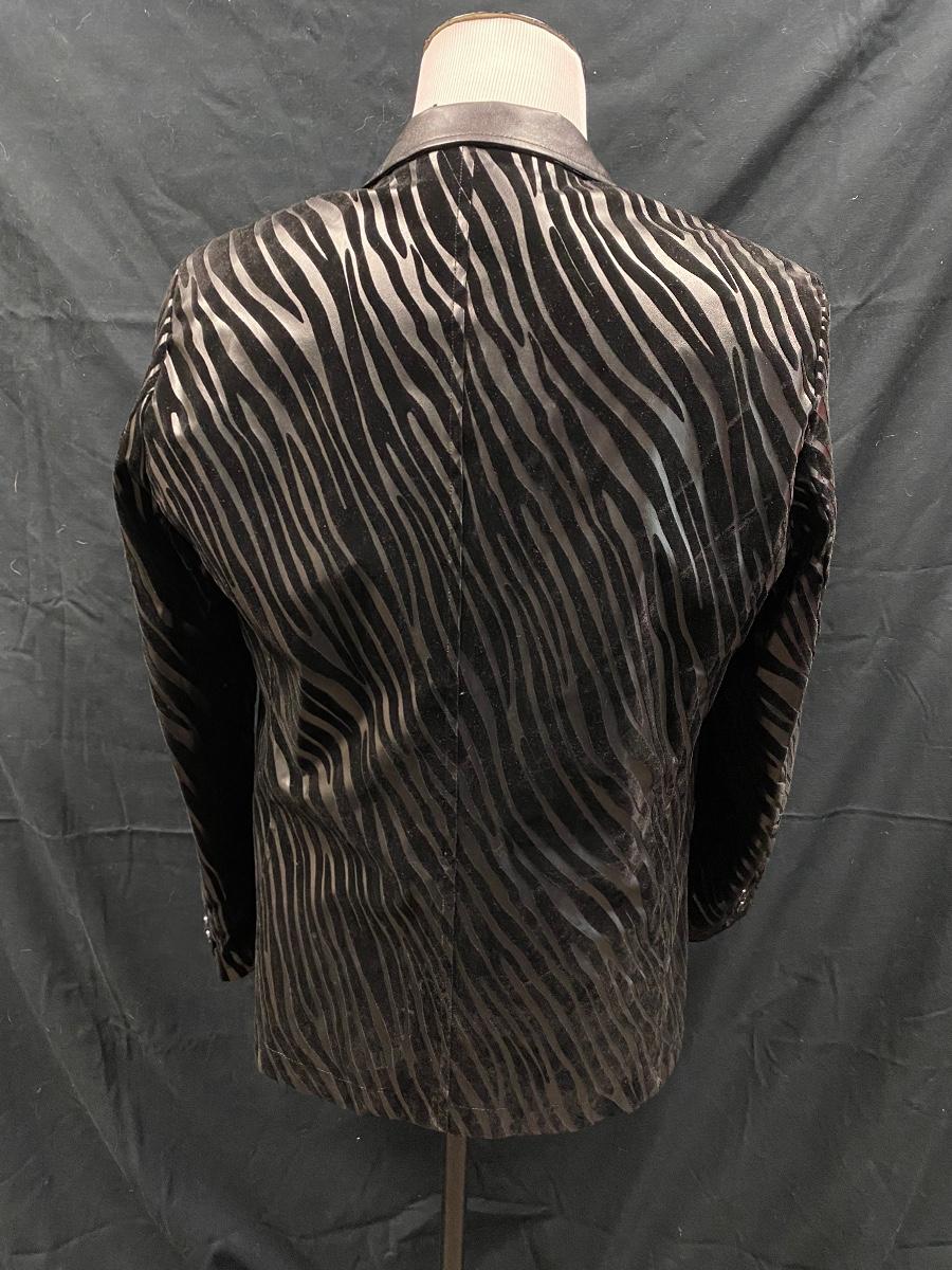 Platini Jeans Cougar Men's Black on Black Velvet Zebra Tiger Stripe Dinner Sports Coat Formal Jacket Large