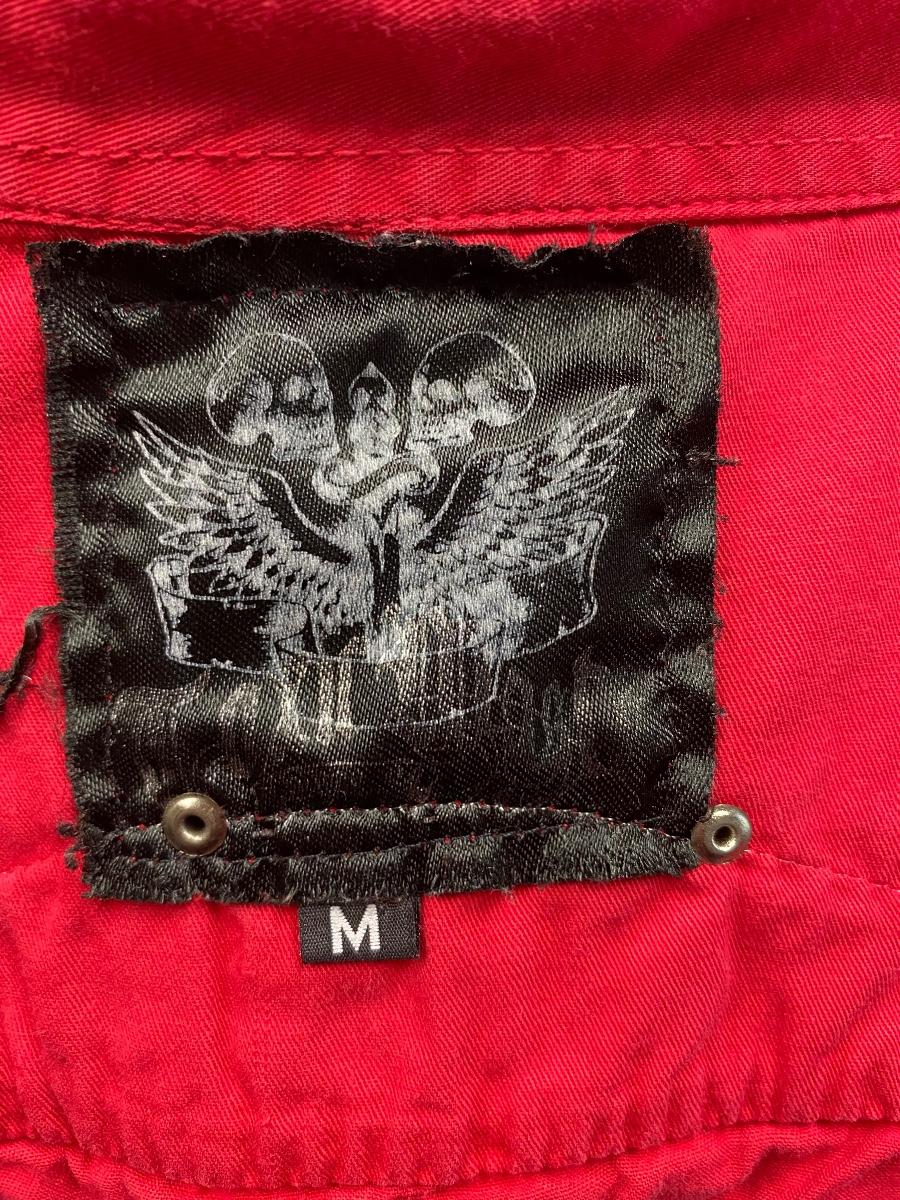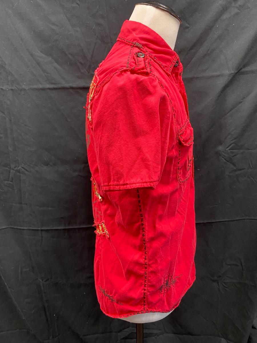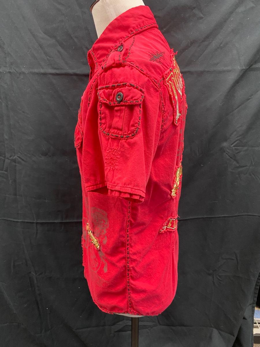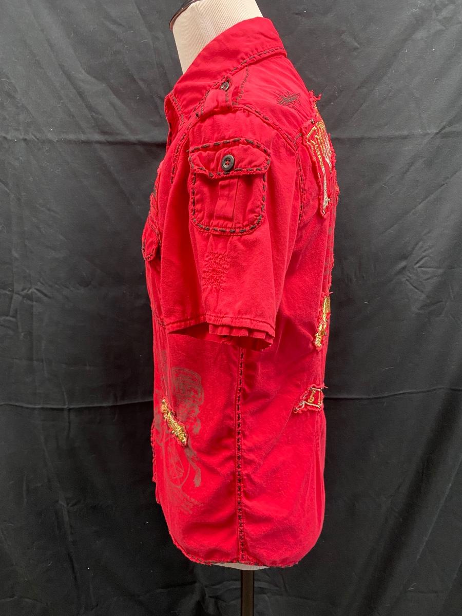Men's Toxic Waste Los Angeles Distressed Motorcycle Red Button Front Shirt Medium