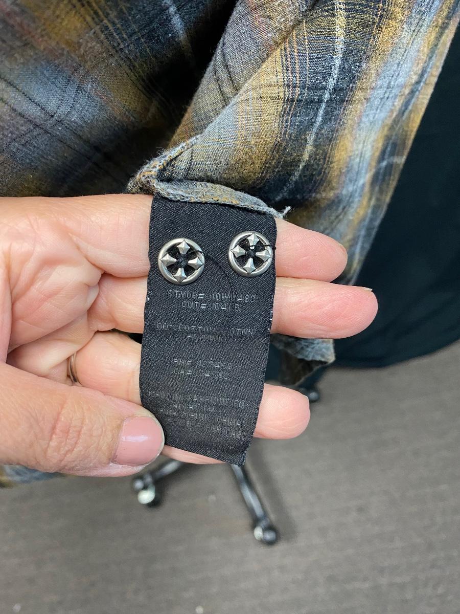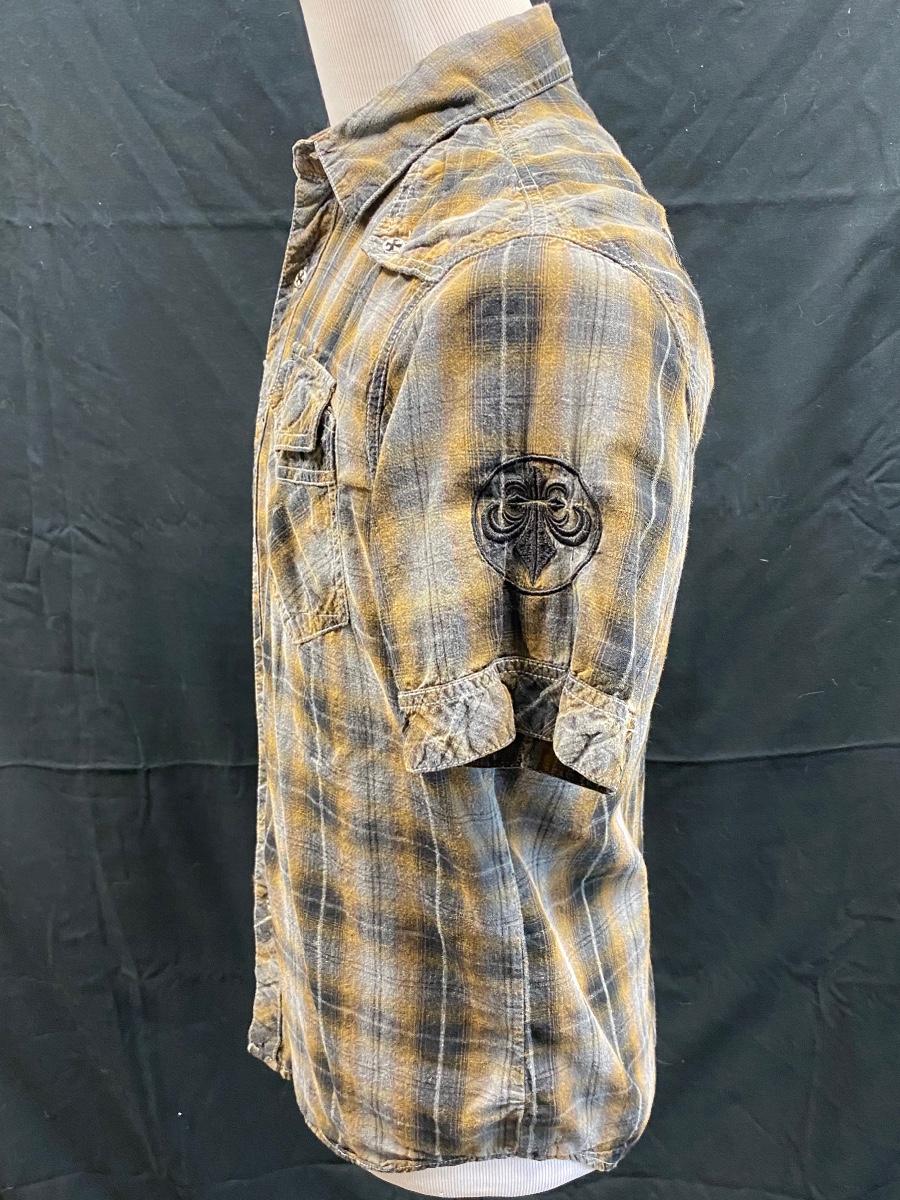 Affliction Men's Plaid Cowboy Western Button Front Embroidered Shirt