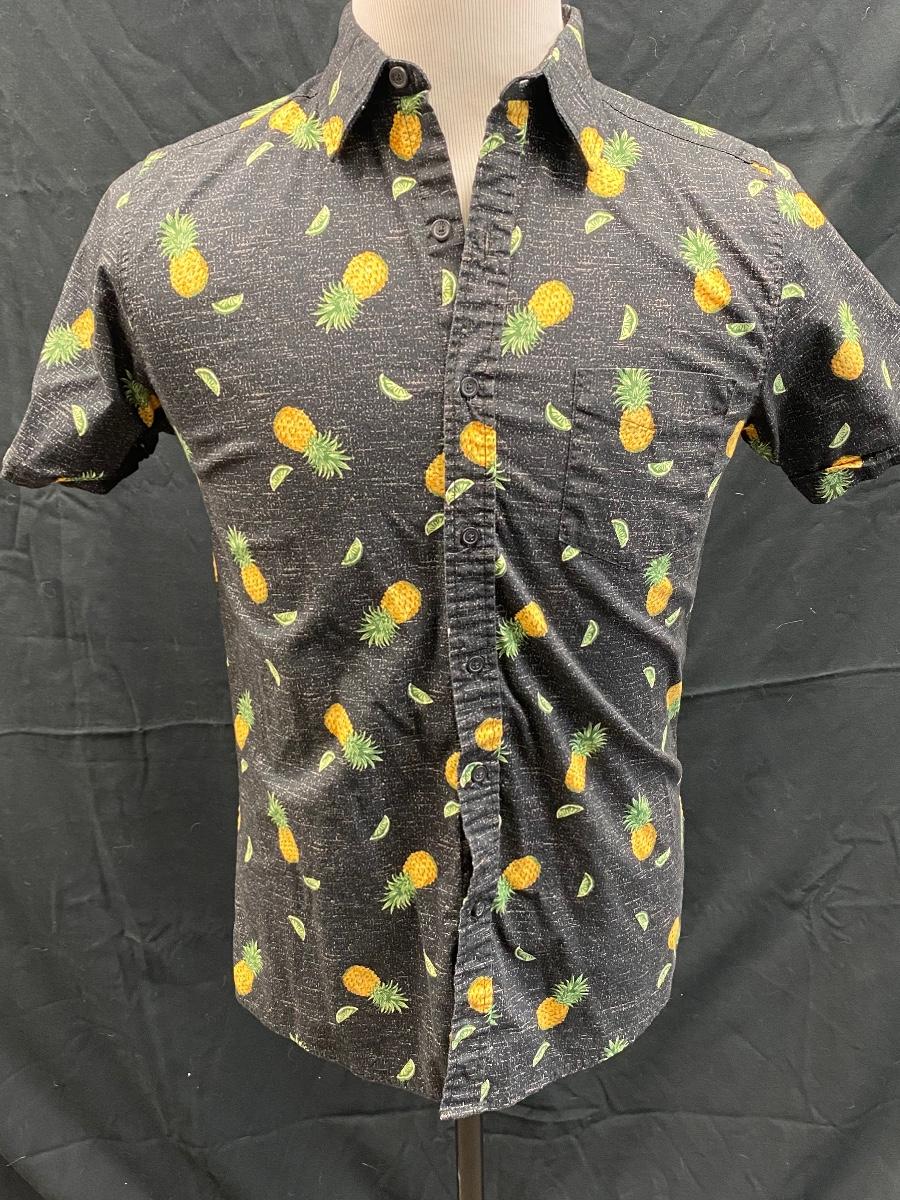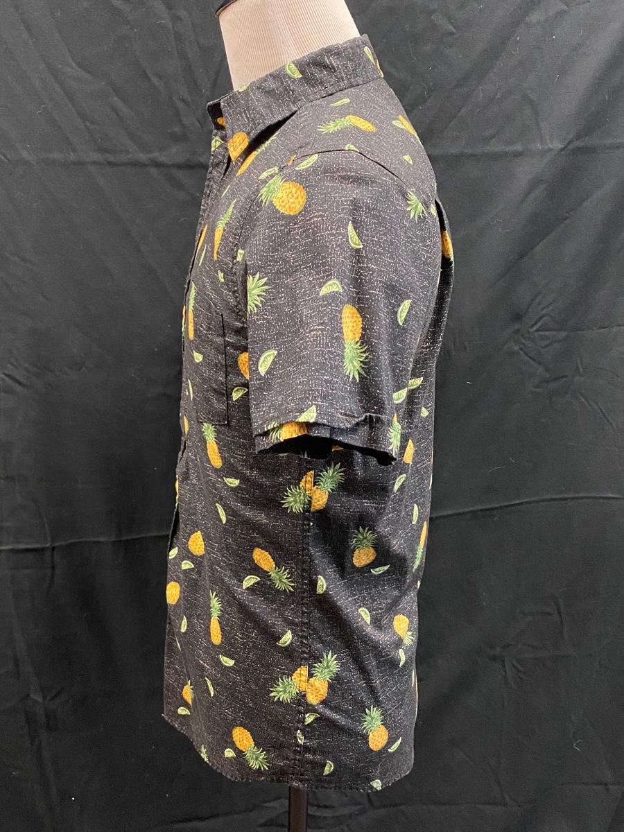 Men's Haggar Clothing Stretch Fit Black Button Front Pineapple Shirt Medium
