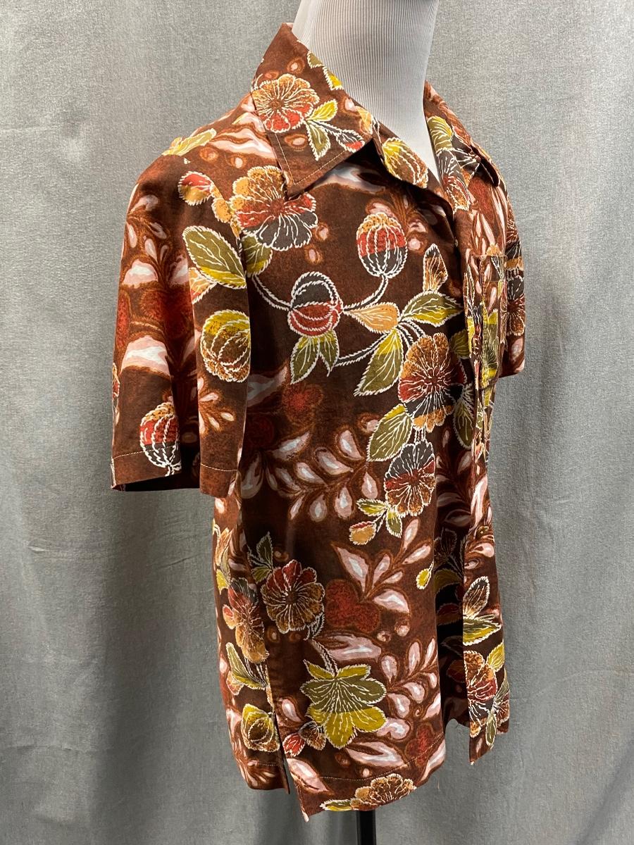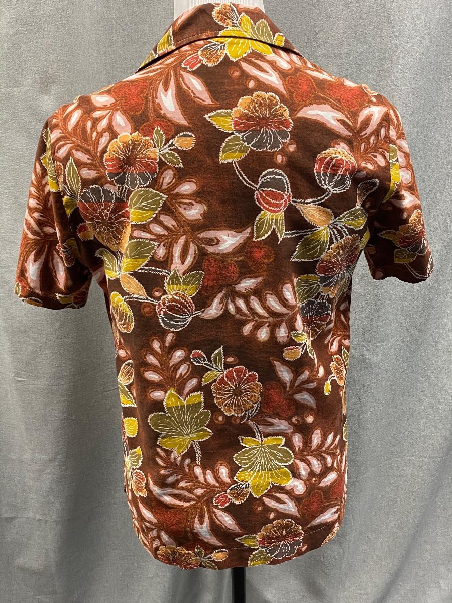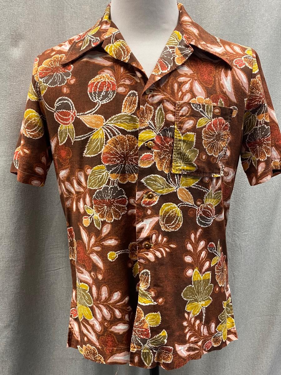 Retro brown floral Hawaiian style button front shirt. No tags. In good vintage condition. May be a size medium.