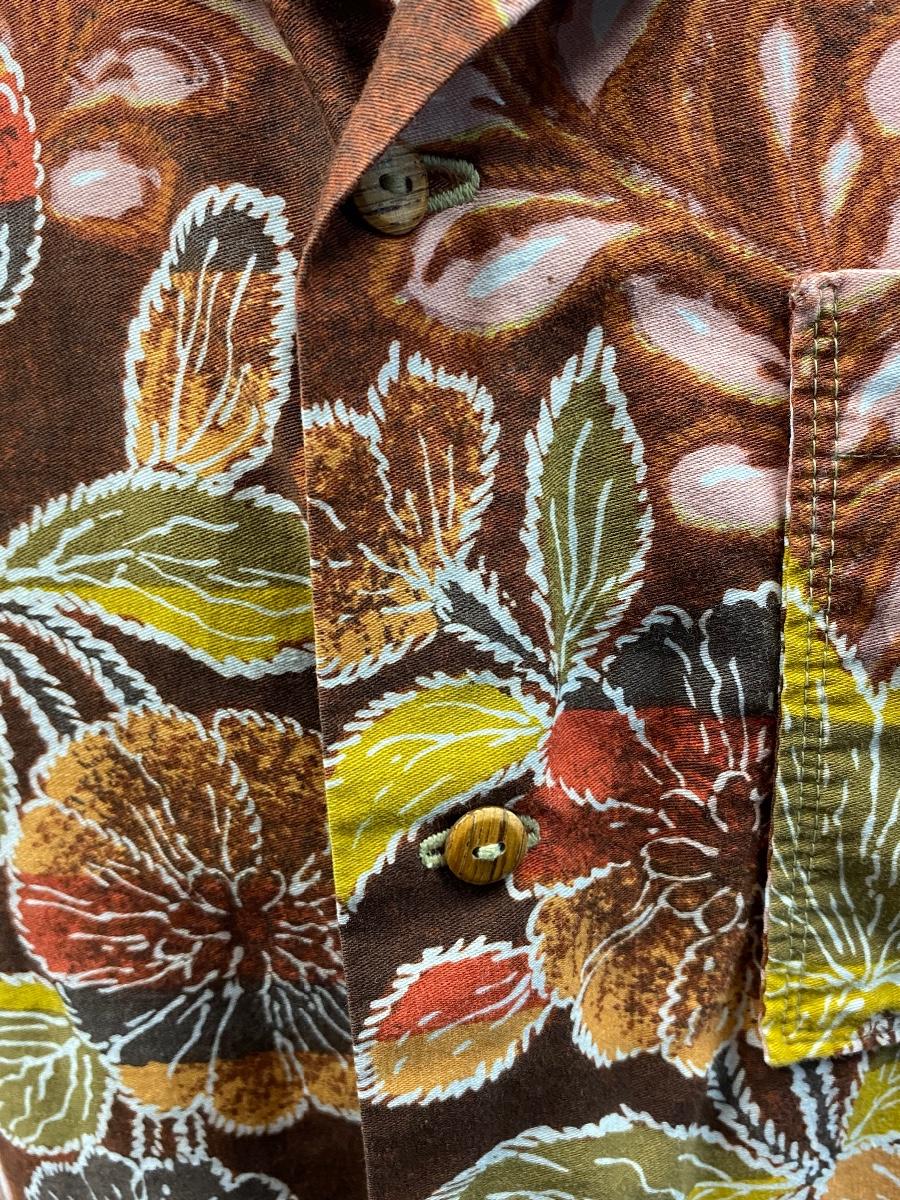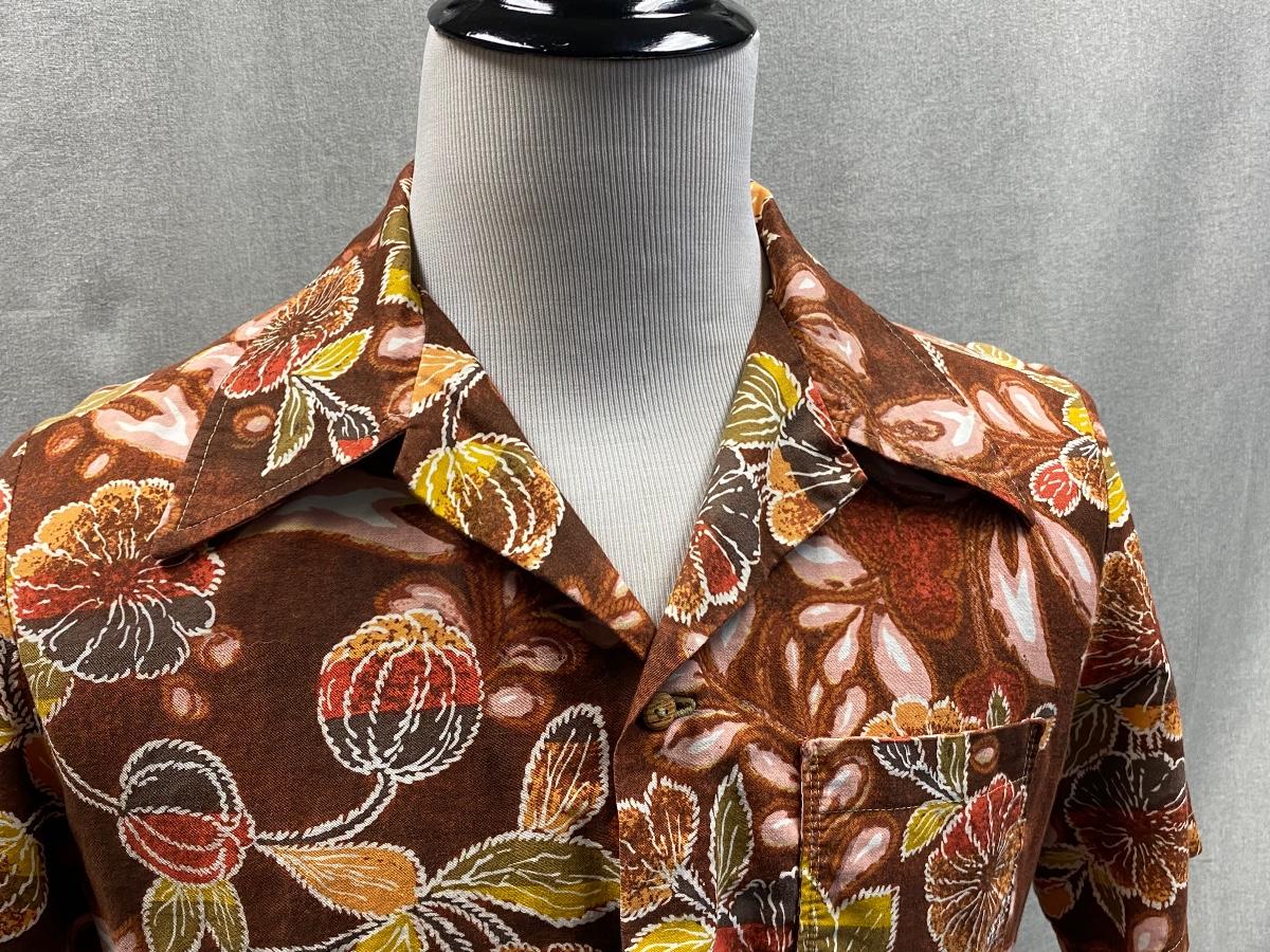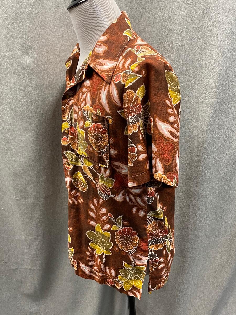 Retro brown floral Hawaiian style button front shirt. No tags. In good vintage condition. May be a size medium.