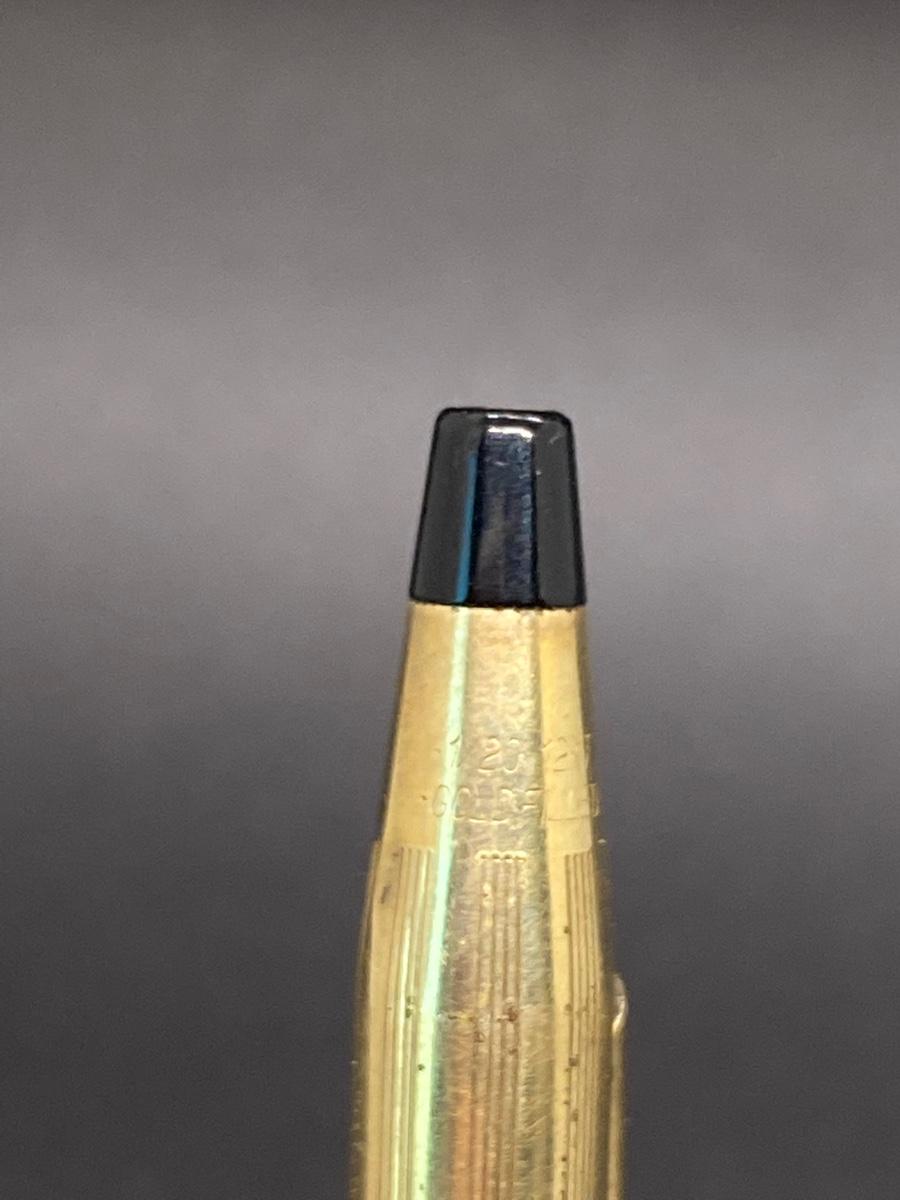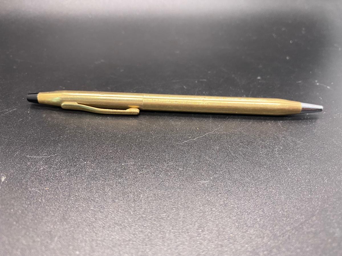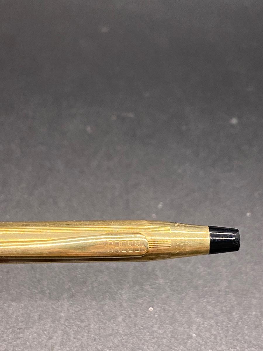 12k yellow gold filled CROSS brand pen. Has blue ink and does write, not sure how much ink it has though. In good condition, no box.