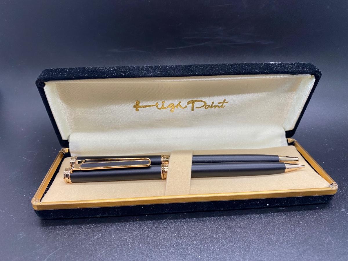 High Point Pen & Pencil Set. Pen writes, but do not know how much ink it has left. Pencil has lead. Come in original box.