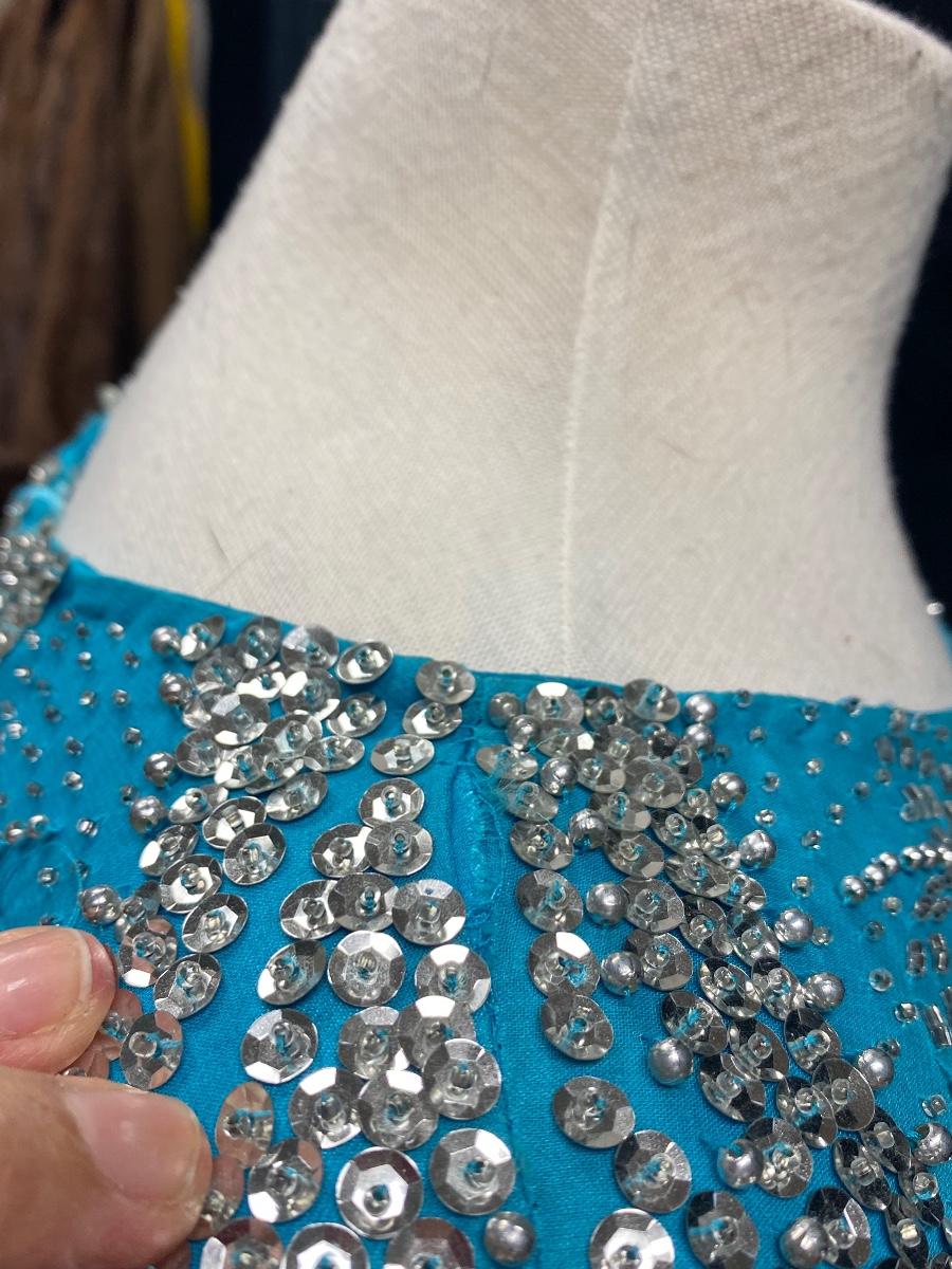 Turquoise and Silver Sequined Vintage Retro Party Cocktail Dress Nite Line Size 14