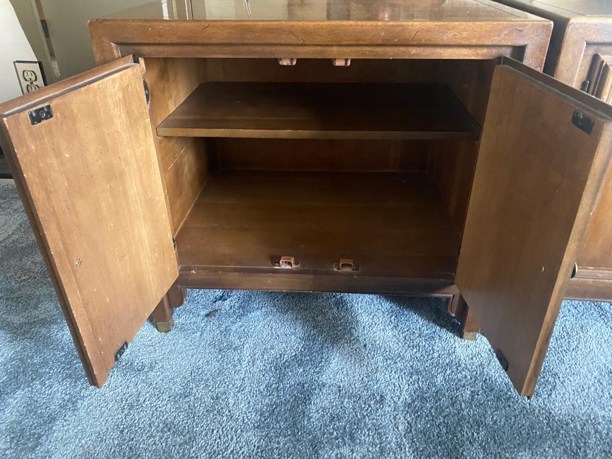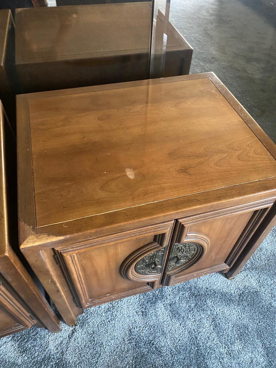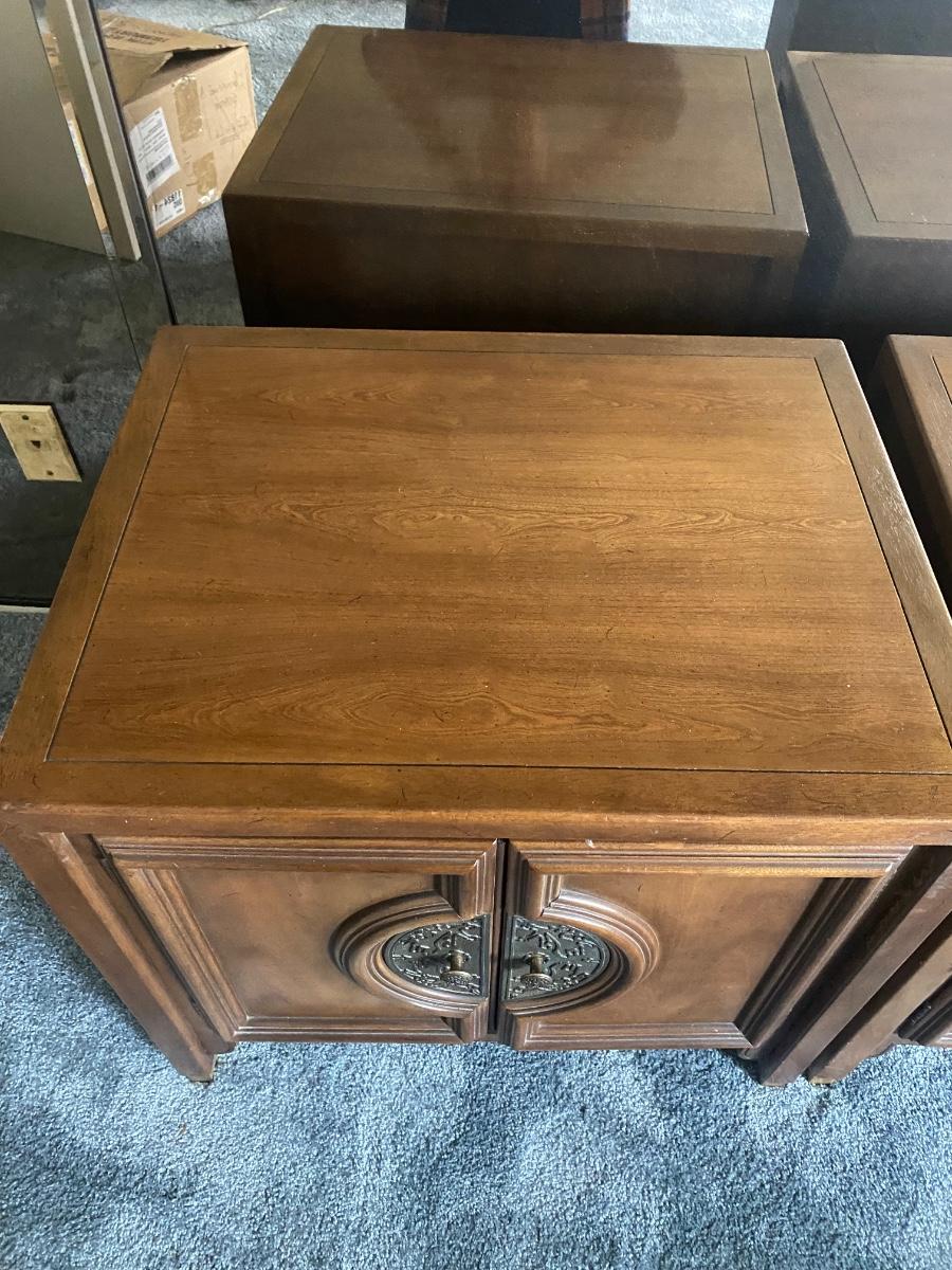 Pair of Vintage Mid Century Walnut Asian Style Chin Hua Nightstand End Table Cabinets from Century Furniture