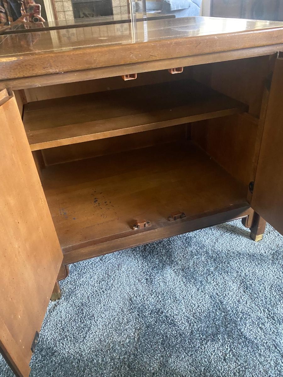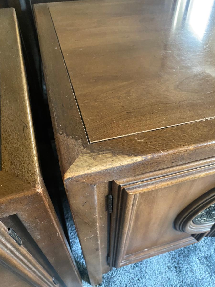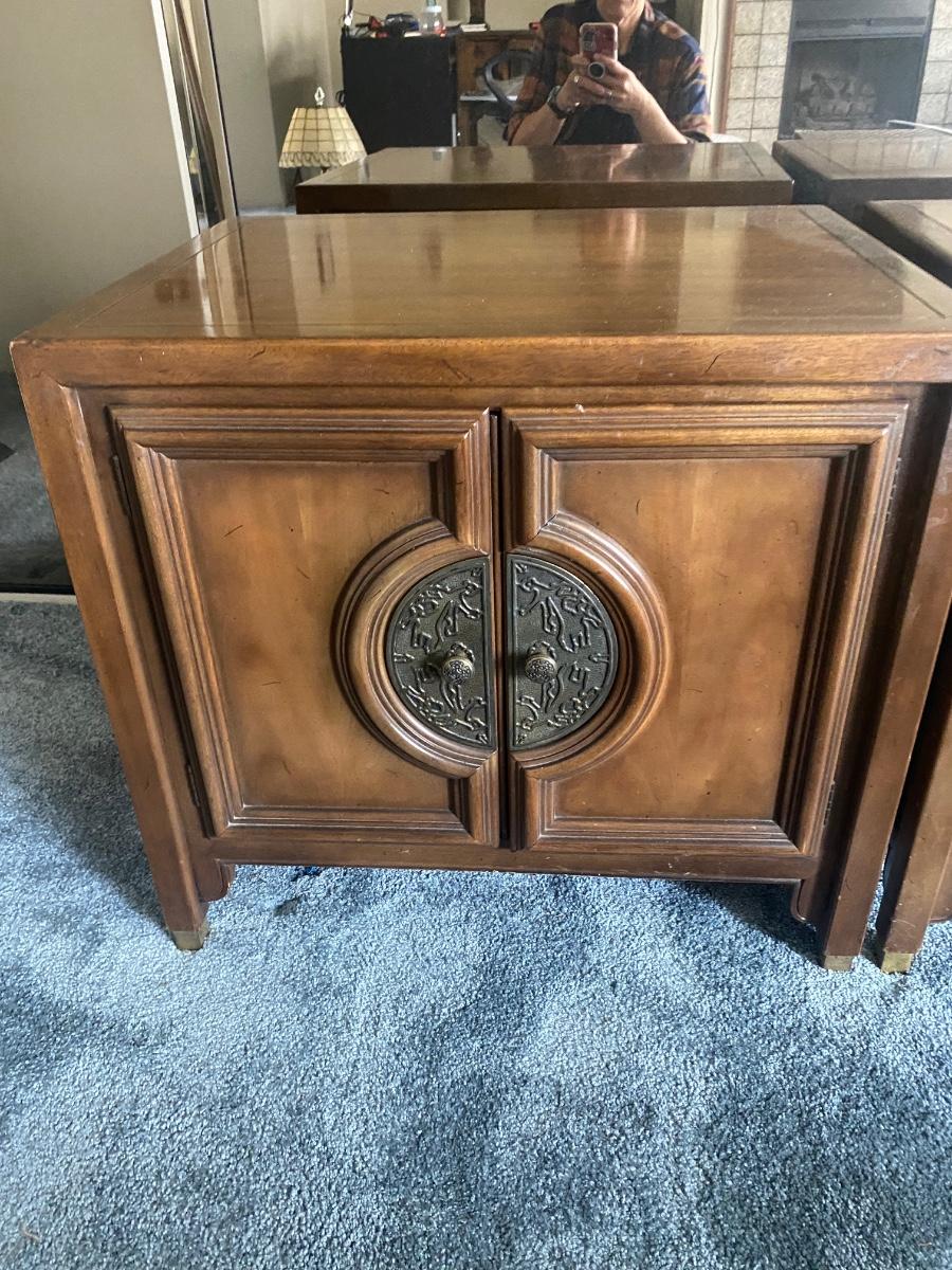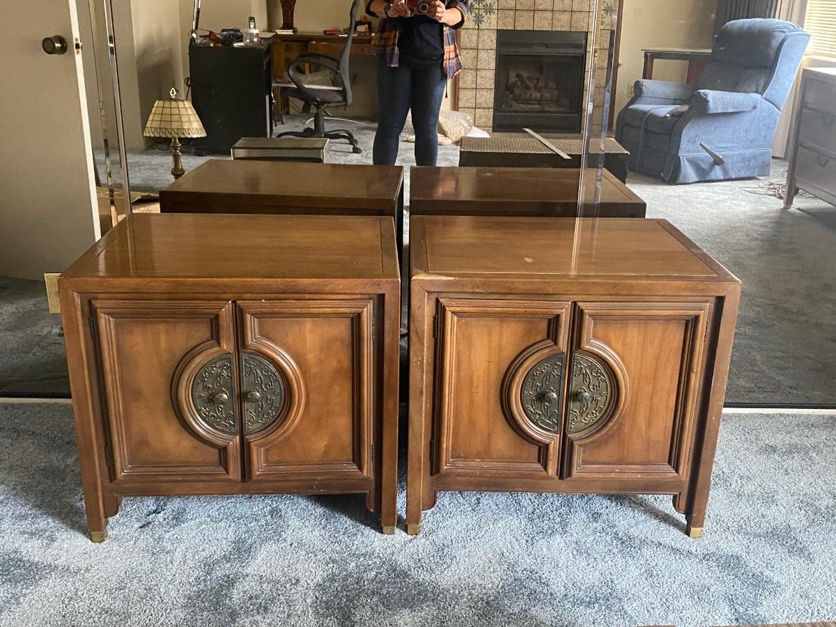 Pair of Vintage Mid Century Walnut Asian Style Chin Hua Nightstand End Table Cabinets from Century Furniture