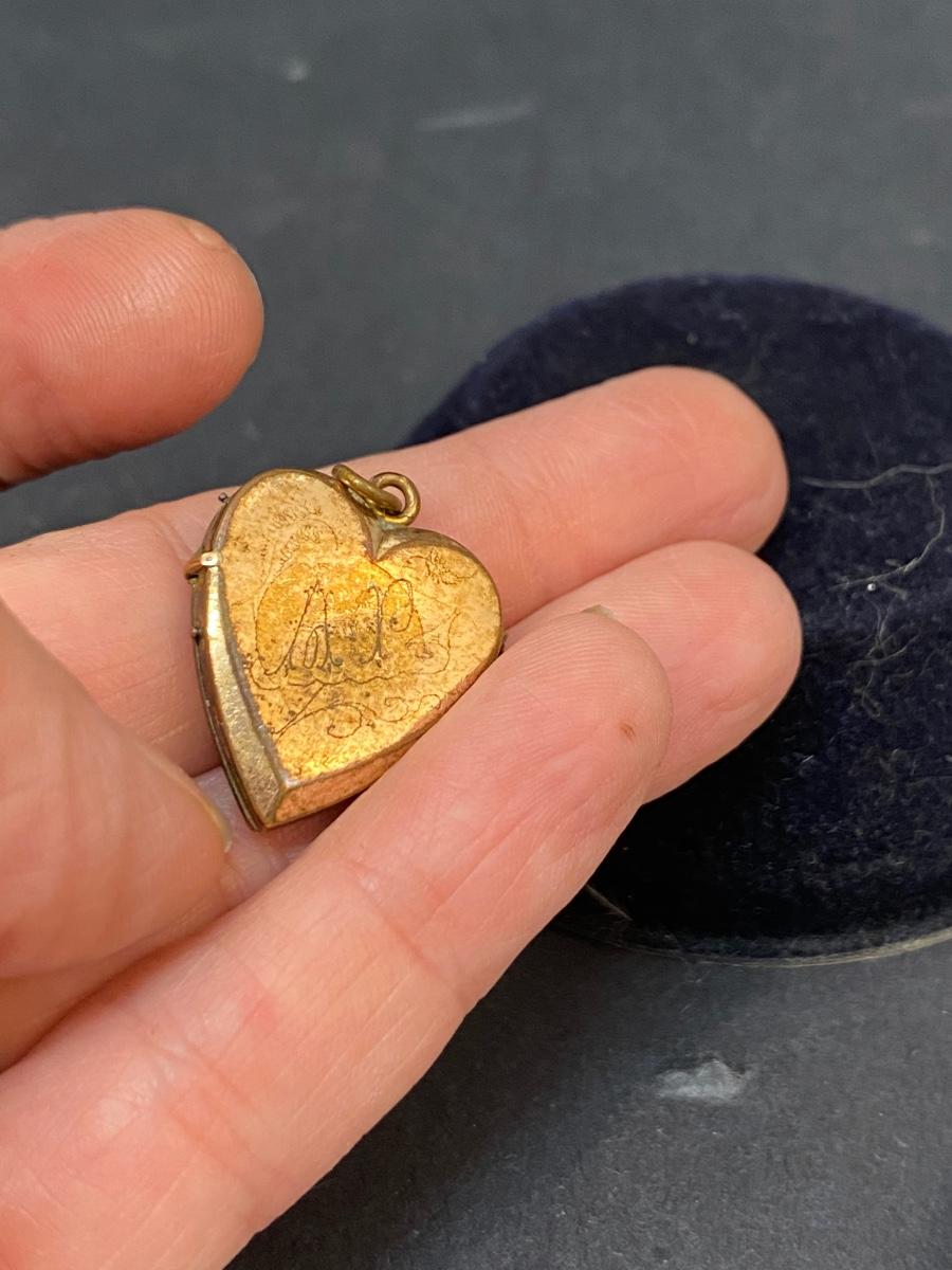 There is some light vintage wear to the locket, but there is no significant damage and is in overall good collectible condition. Check pictures for more details and for sizing.