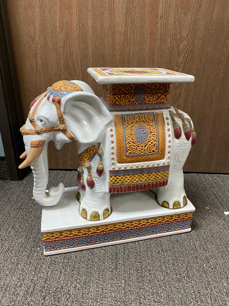 Vintage Ceramic Mid Century Asian Indian Elephant Plant Stand Side Table Garden Stool Yard Art
