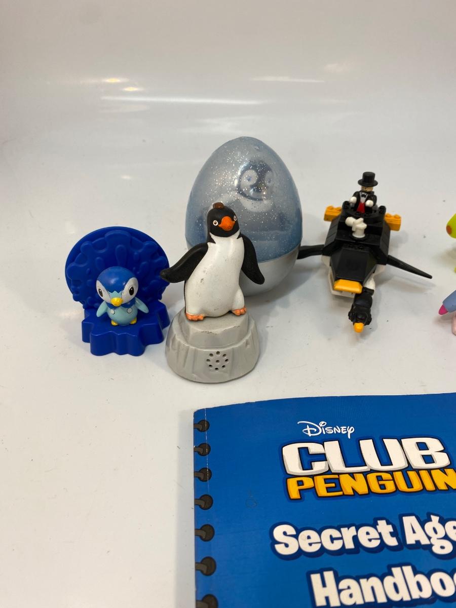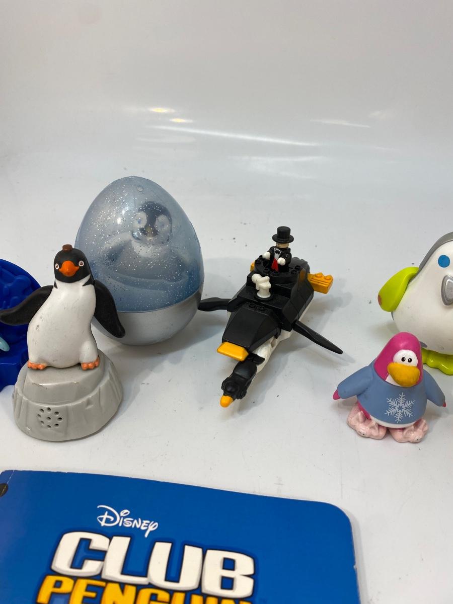 Mixed Lot of Penguin Themed Kids Toys Figures Pokémon Club Penguin Lego. Most look to be kids' meal toys from various fast-food restaurants.