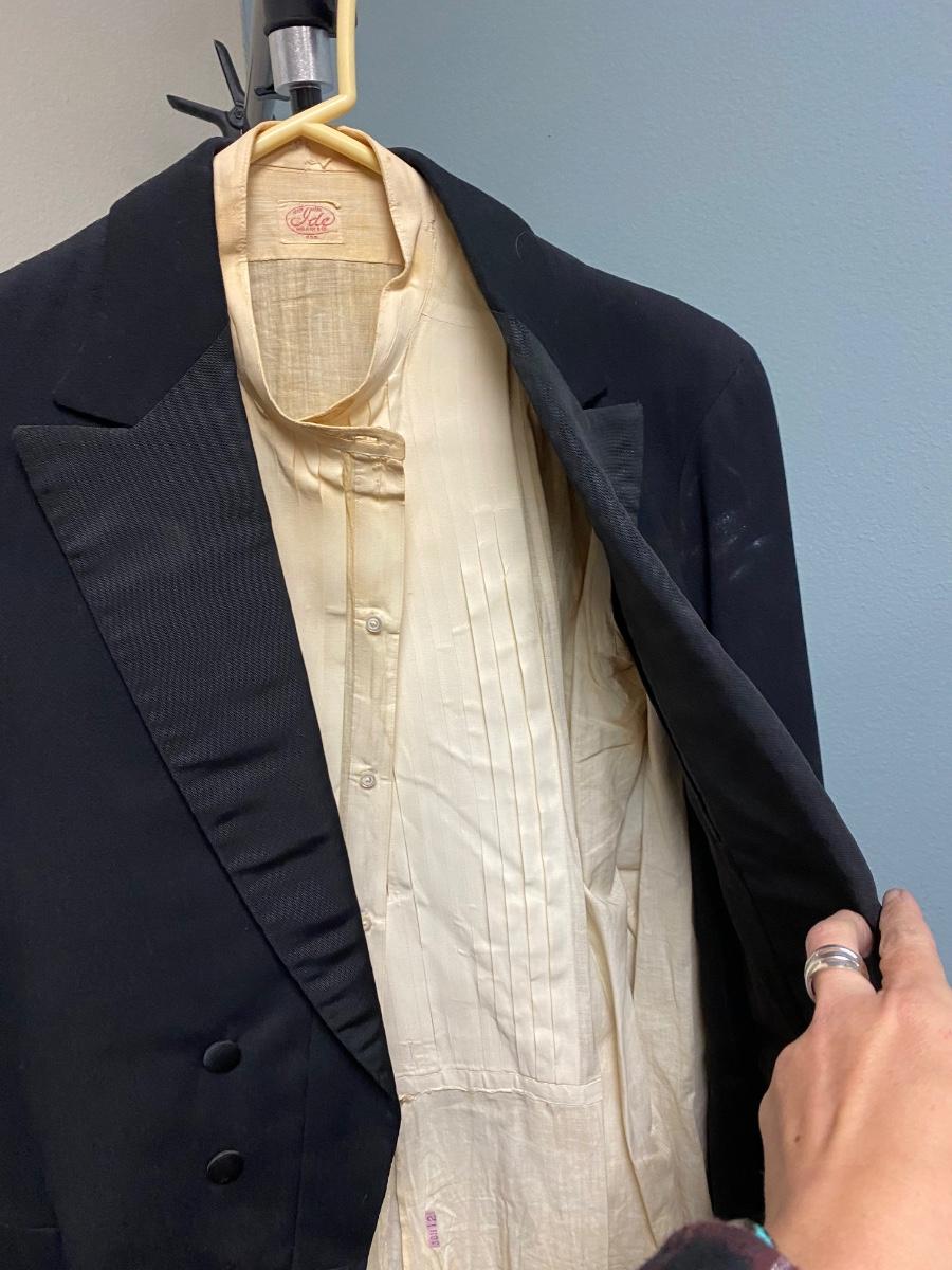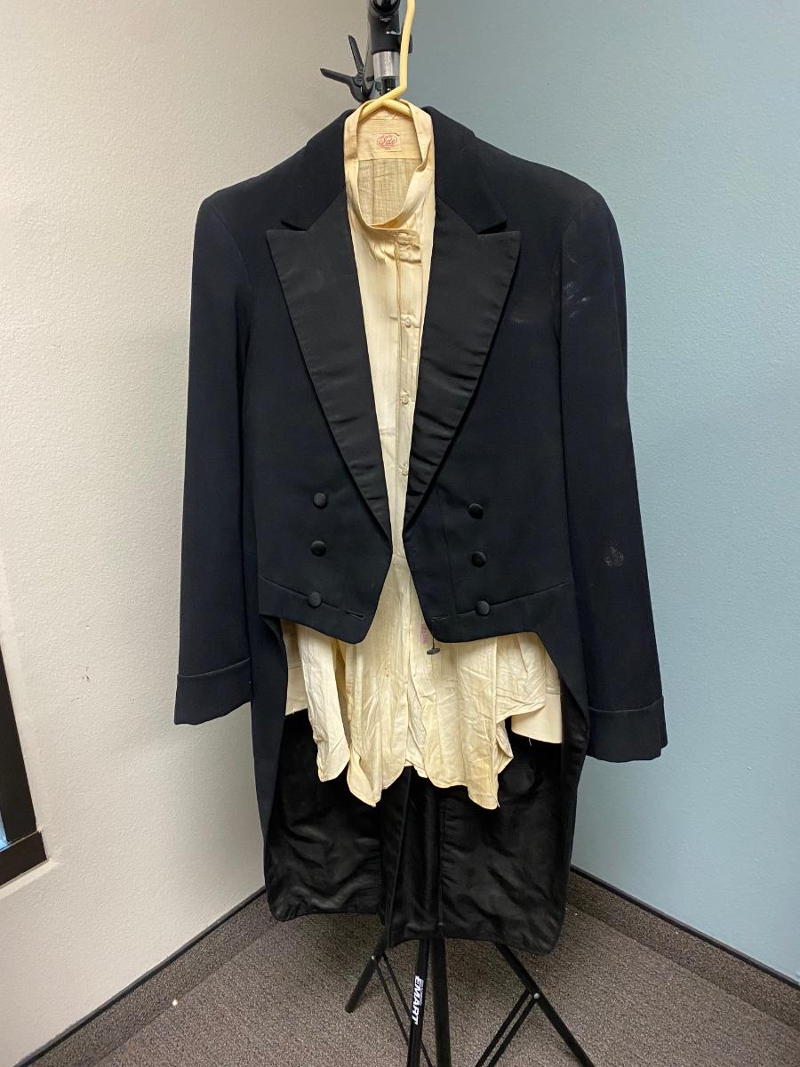 Vintage Victorian Men's Black Tuxedo Suit Tail Jacket Coat with Dress Shirt