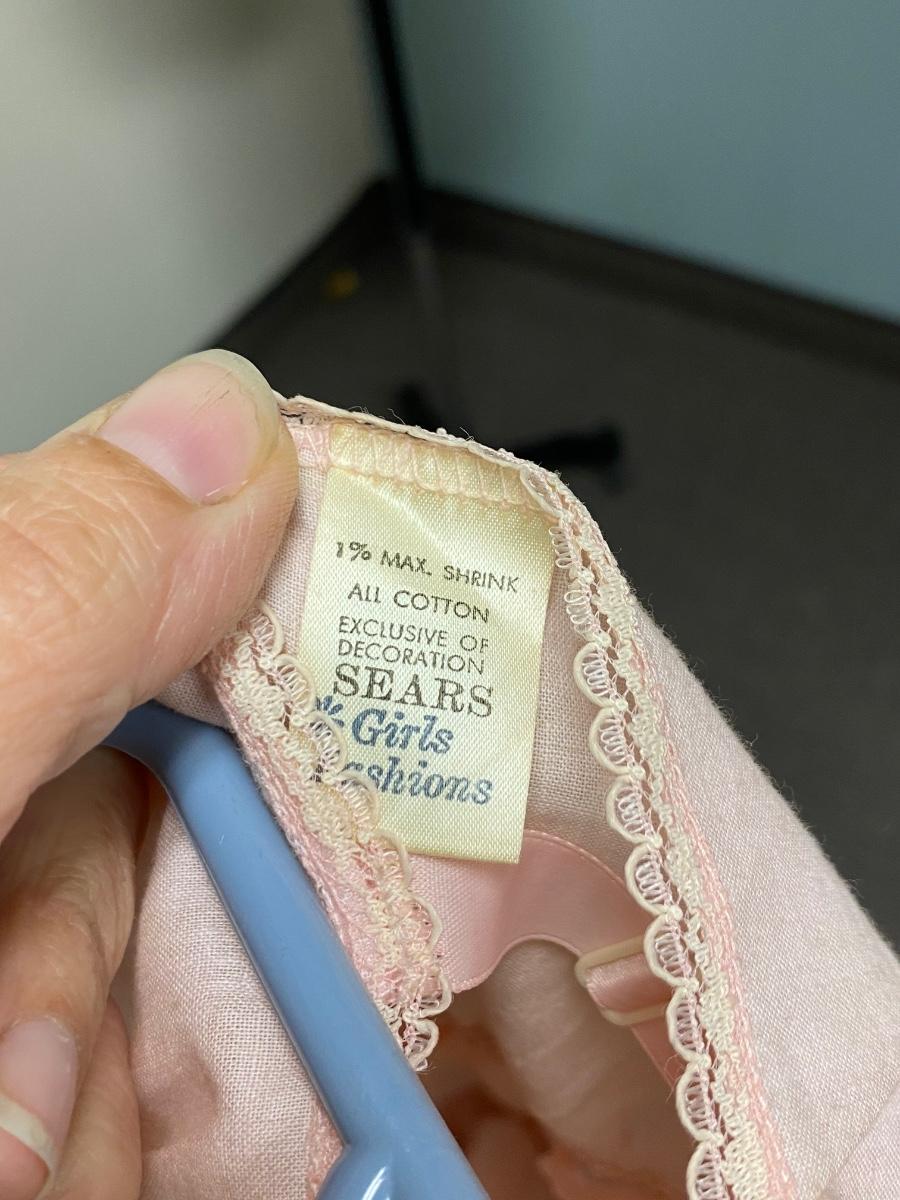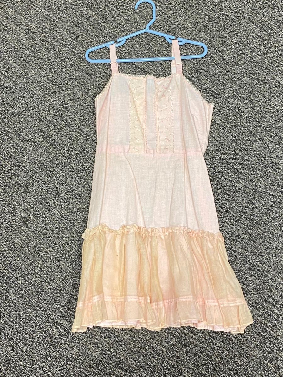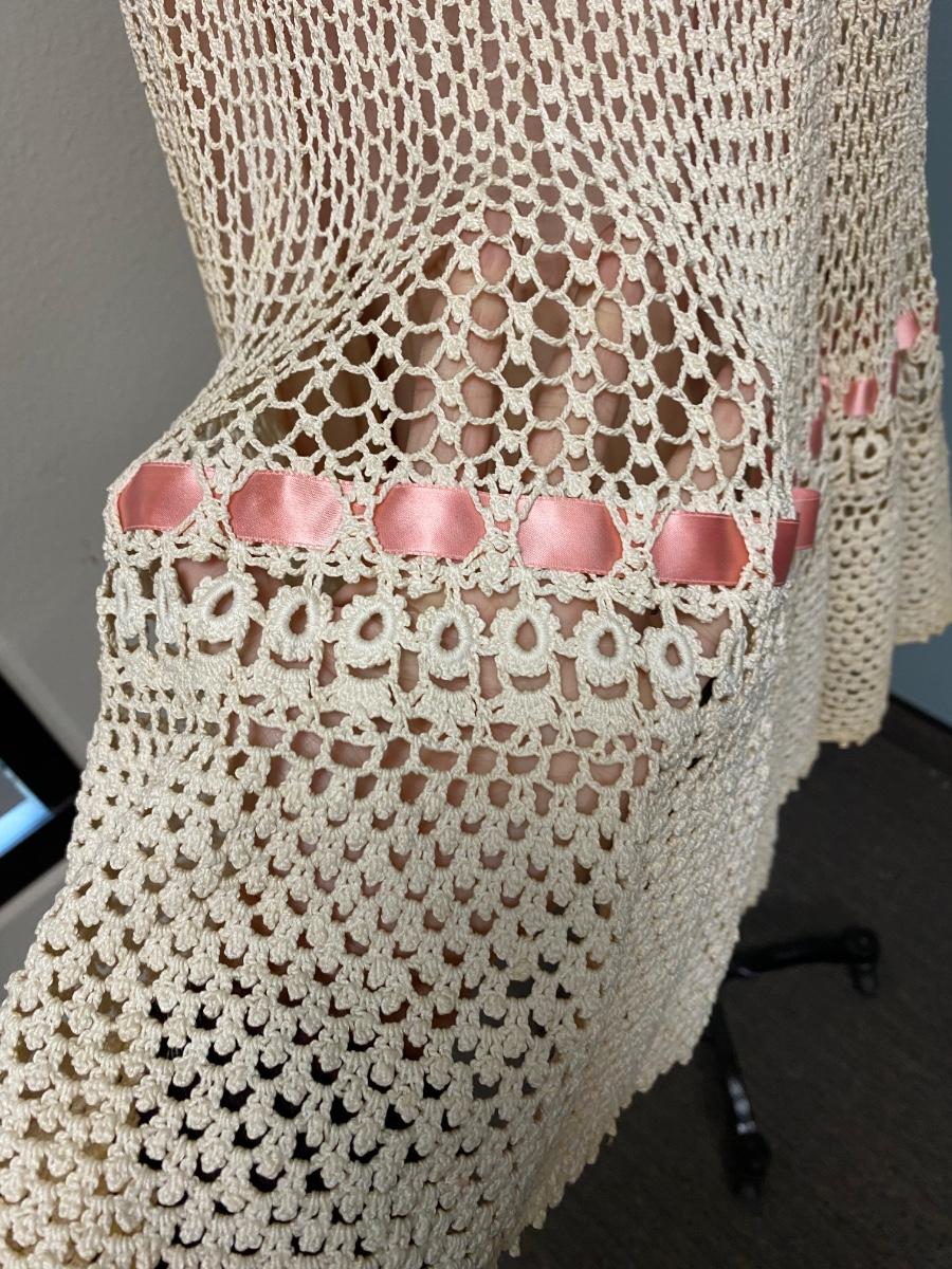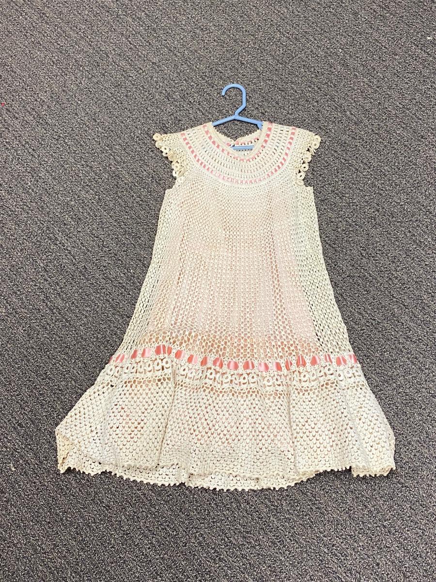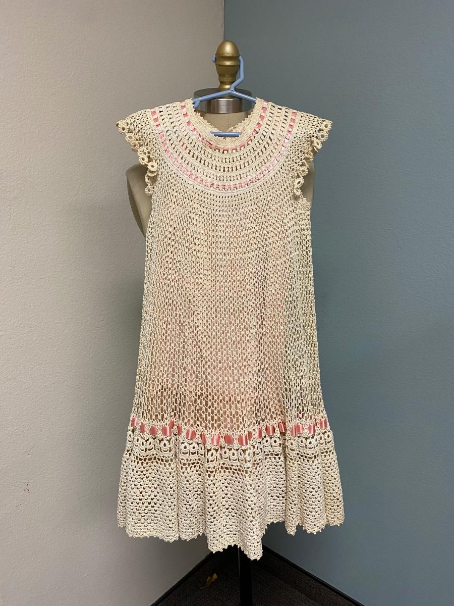 Vintage Little Girl's Crochet Sun Dress with Pastel Pink Slip Dress and Ribbon Trim
