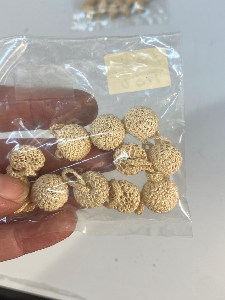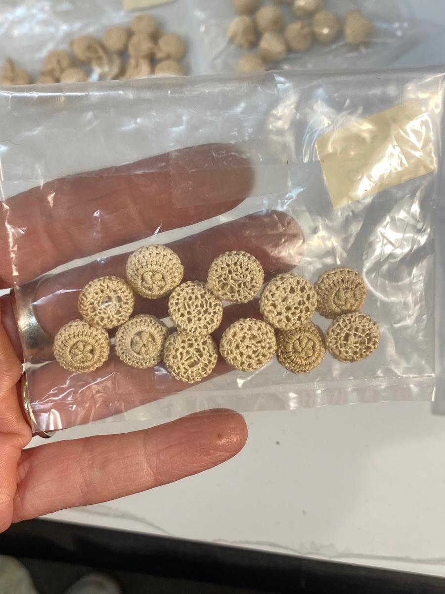 Vintage Antique Lot of Tatted Stitched Victorian Buttons Various Styles. 5 different packages of buttons. Some are more like dangling adornments. See photos for better idea of styles.