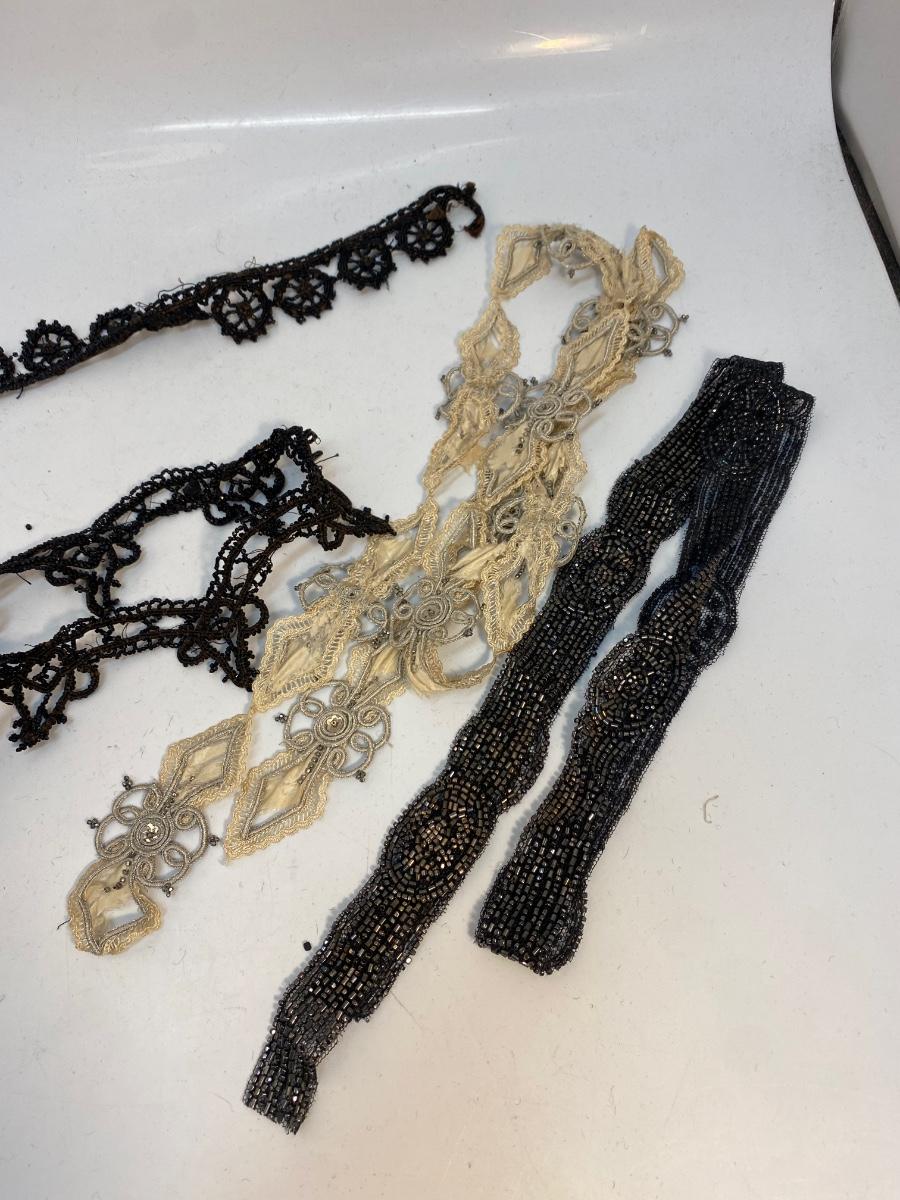 Victorian Antique Vintage Beaded Applique Trim Pieces. Good for crafting and sewing.