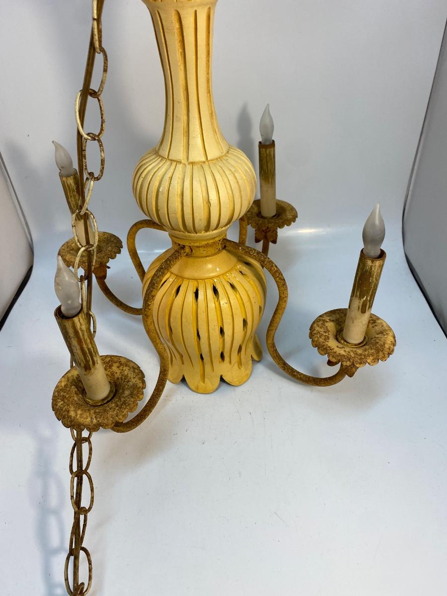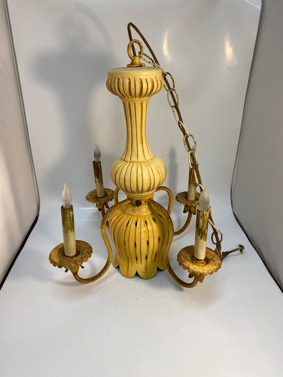 Vintage Plaster 4 Arm Chandelier. Untested. Needs to be hard wired. Great for refurbish project.
