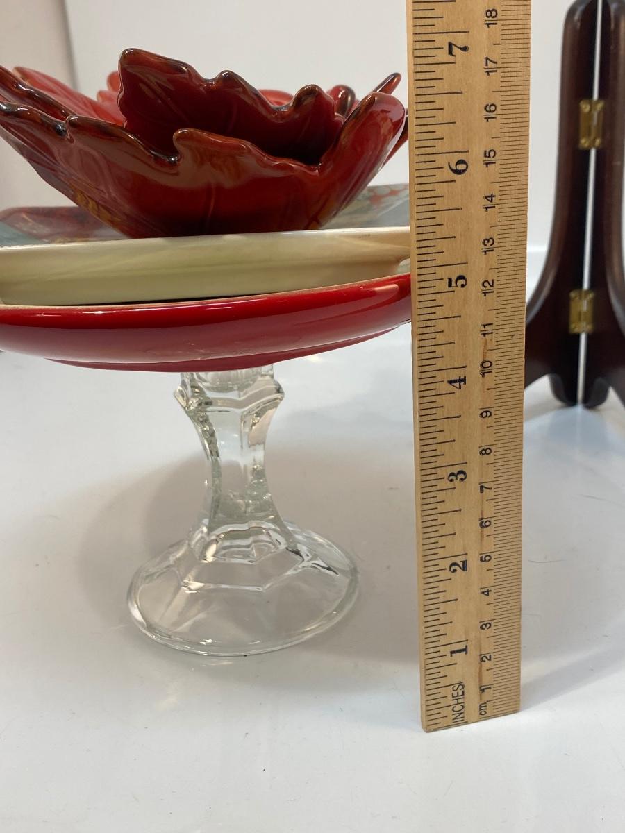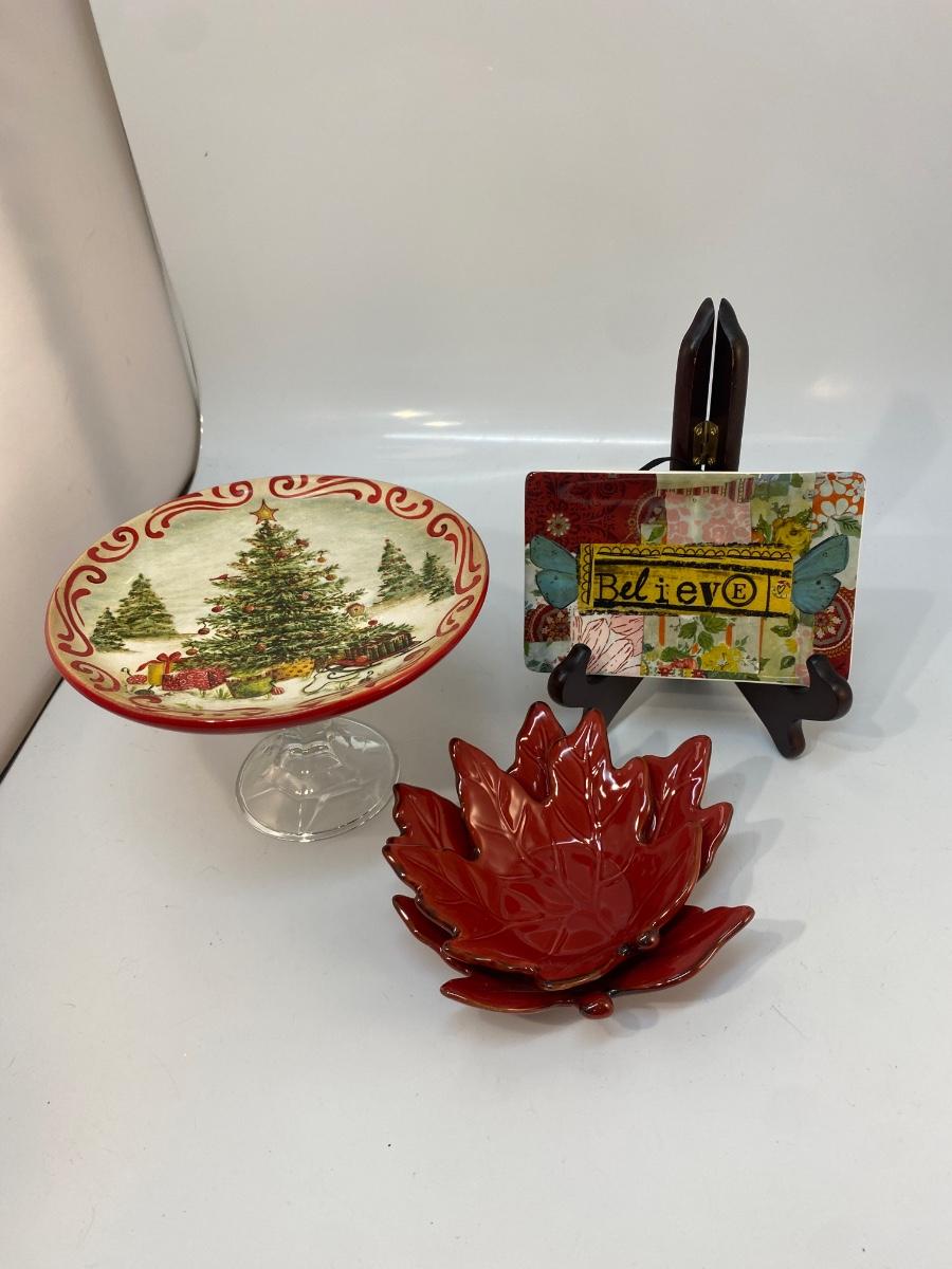 Variety of Ceramic Seasonal Trinket Plate Candy Dishes Candle Holder. All three in good condition. Under 6" size.