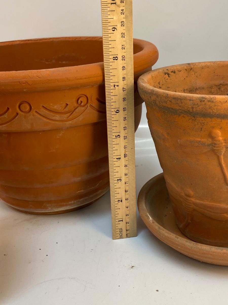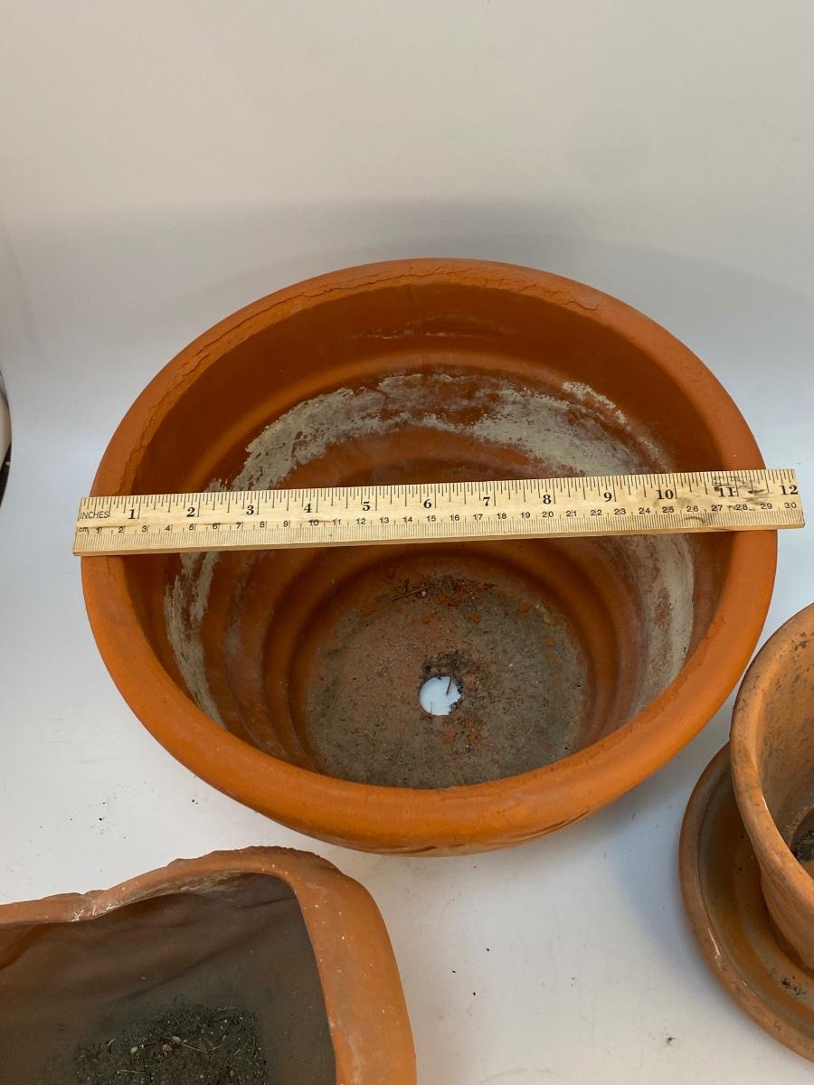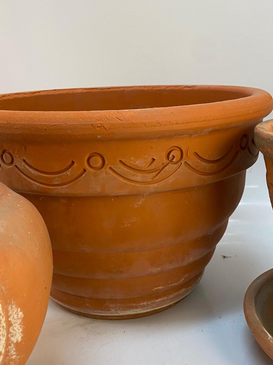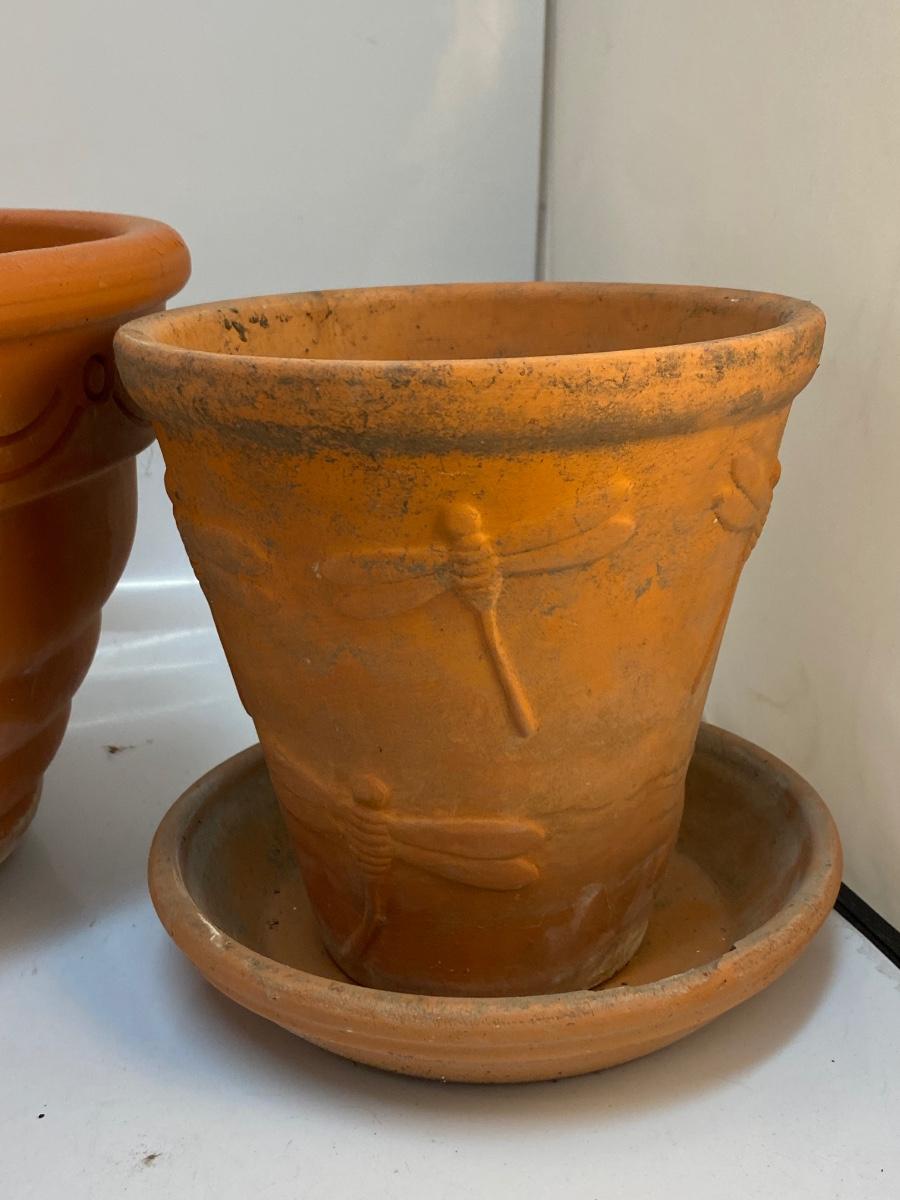Lot of Terracotta Garden Yard Art Pottery Planters Cherub Angels, Dragon Fly Pattern, & More