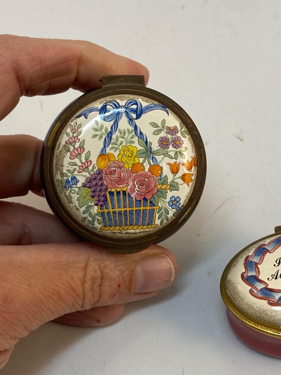Pair of Retro Staffordshire Enamels English Old Hall Snuff Boxes