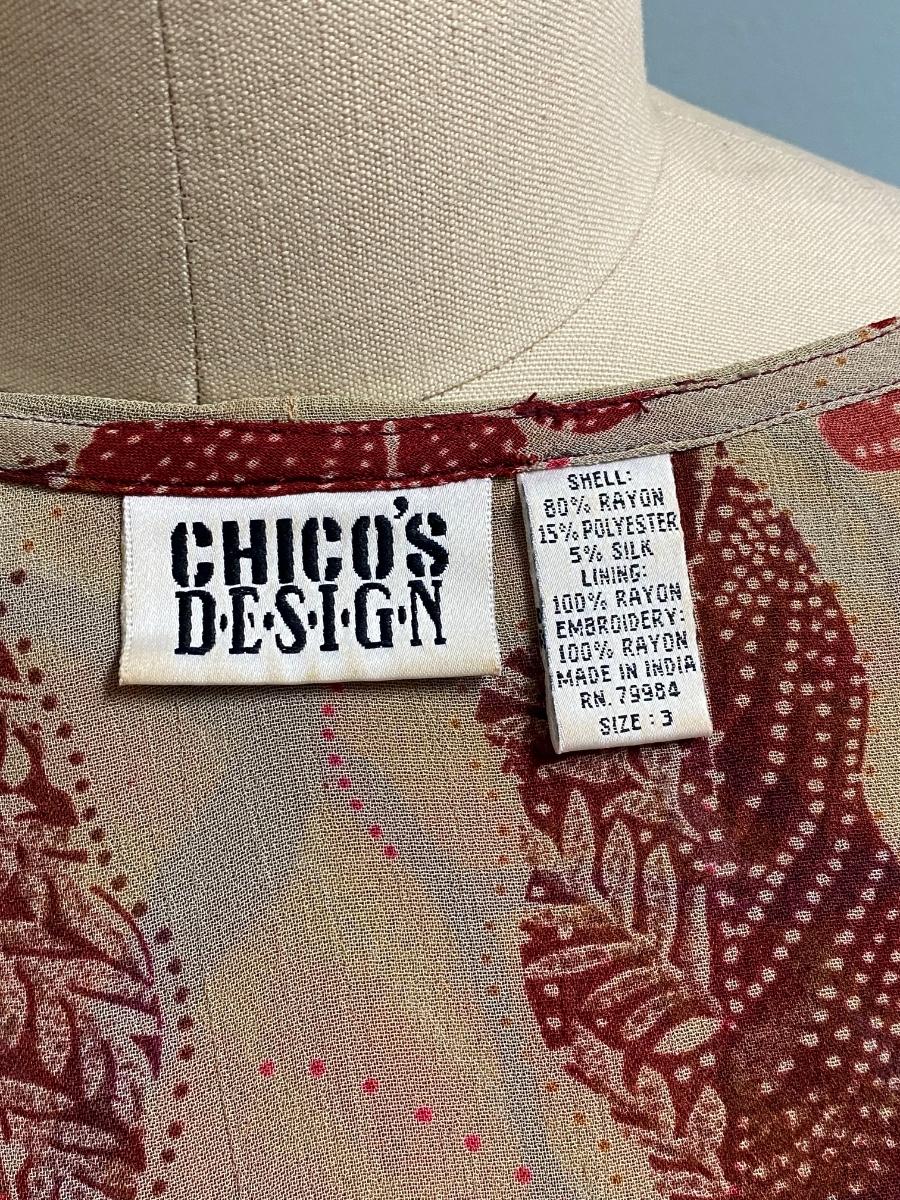 Chico's Design Size 3 Patchwork Style Hooded Button Front Lightweight Coat Blouse. In good condition. Chico's size 3 is a 16/18 or 1X.