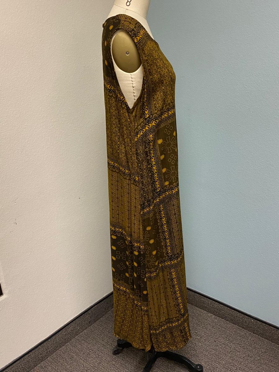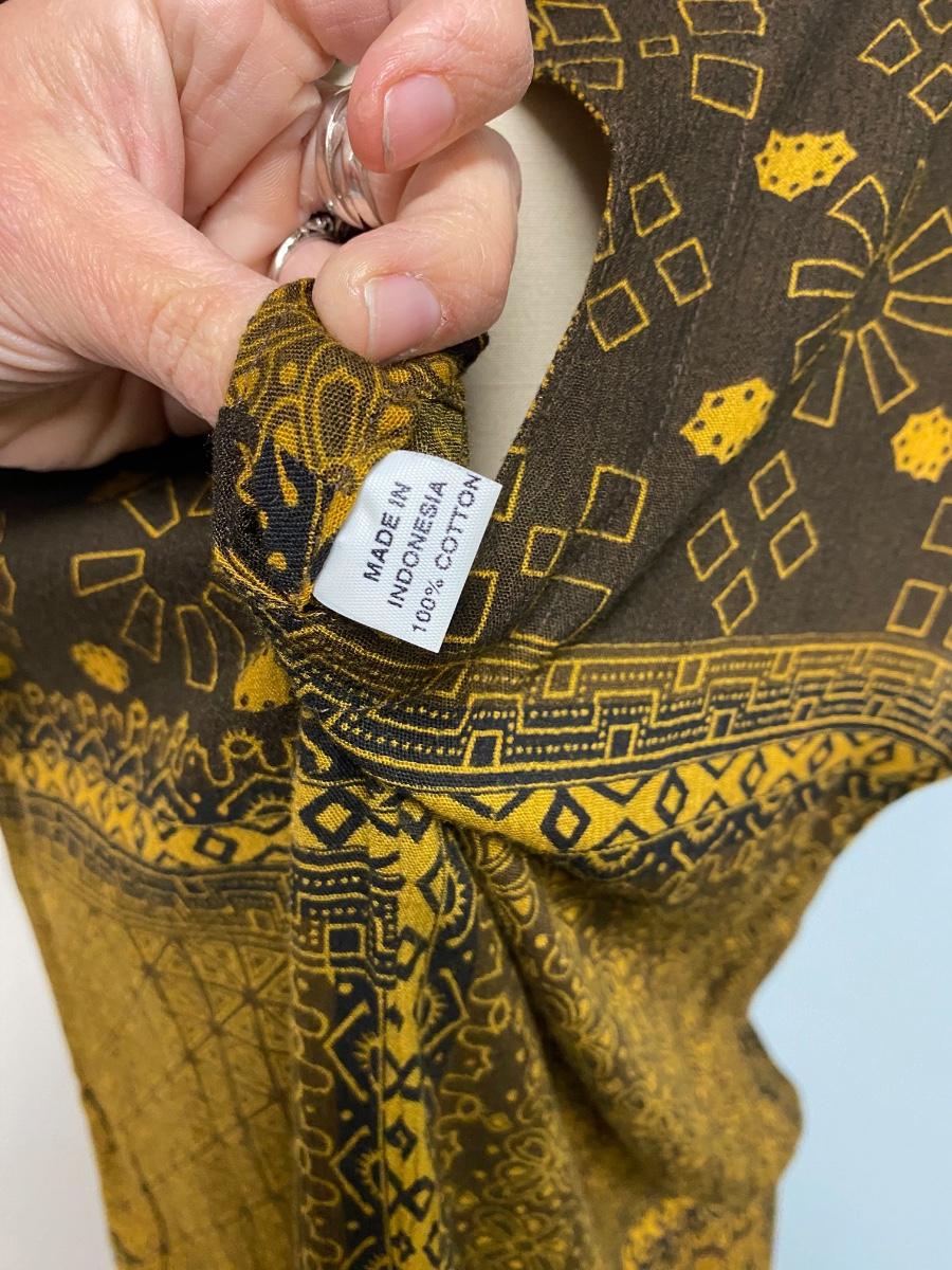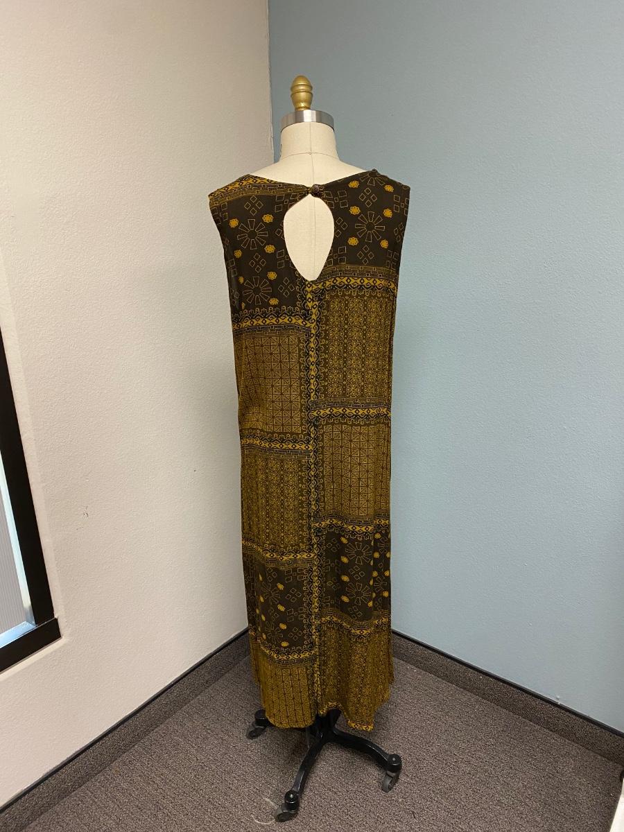 Tribal Ethnic Patterned Sleeveless Dress Made in Indonesia 100% Cotton. Single button closure at the neck in the back. Good condition. No size tag, guessing about a large.