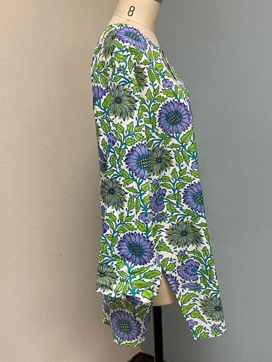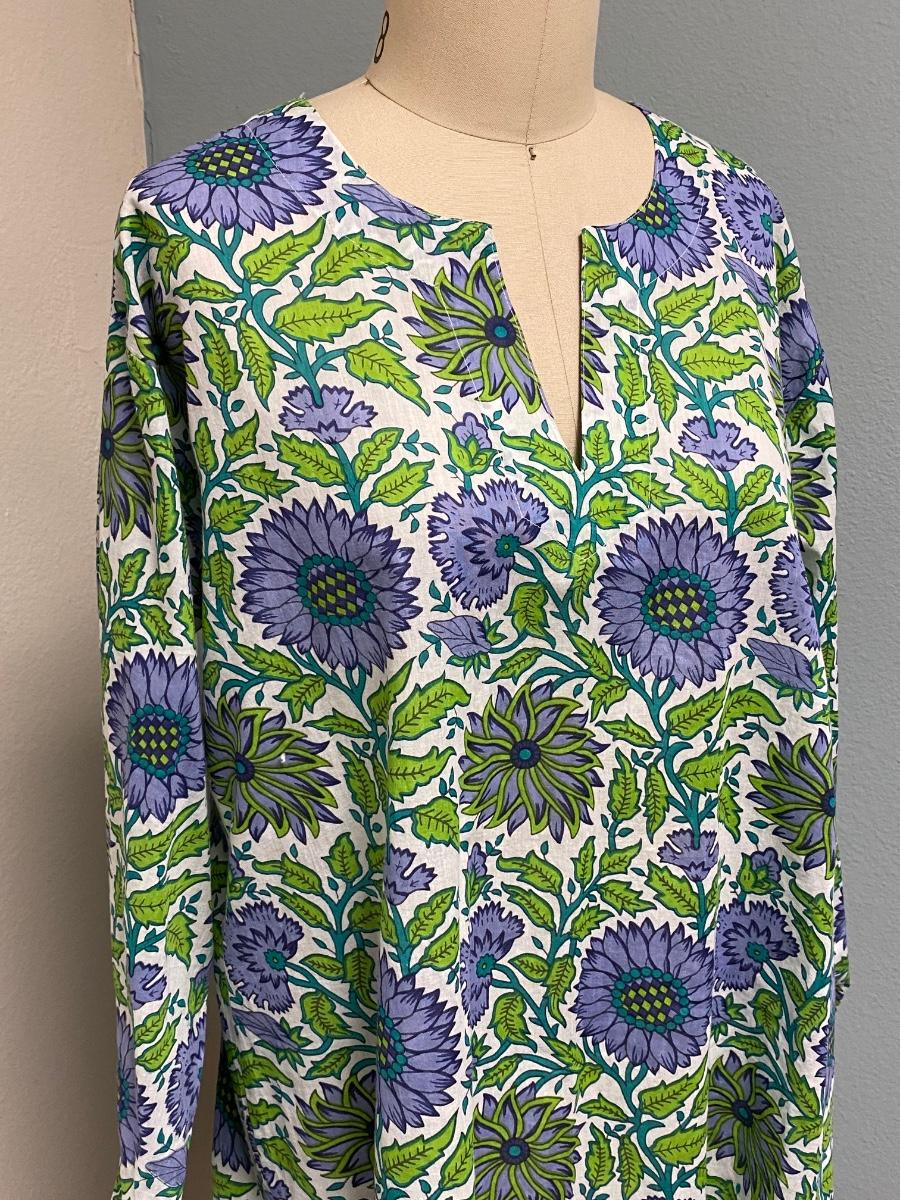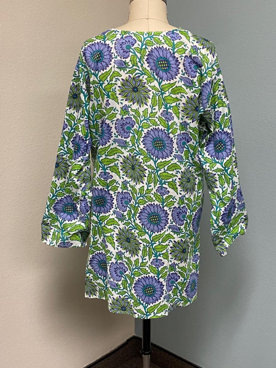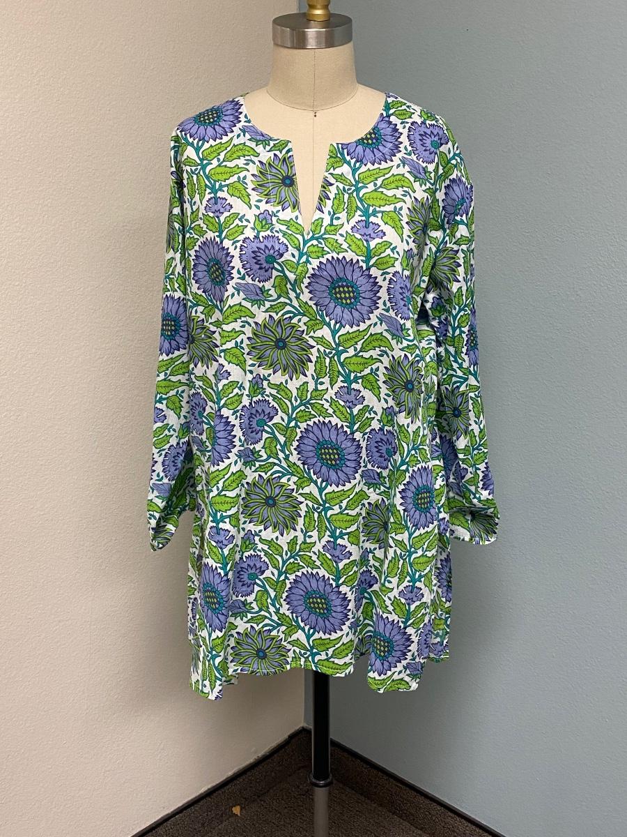 100% Cotton Large Floral Pattern Hippie Tunic Blouse Made in India