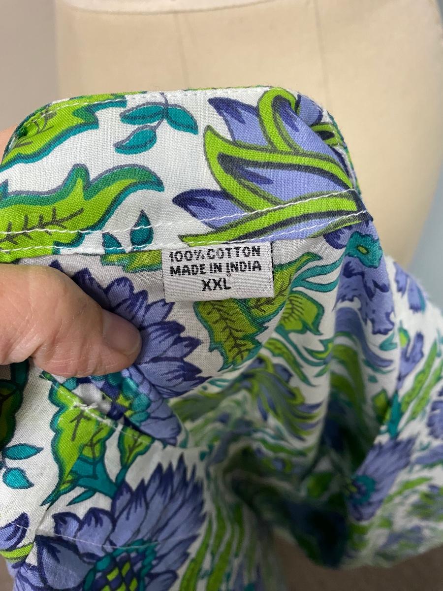 100% Cotton Large Floral Pattern Hippie Tunic Blouse Made in India. In good condition. Size tag says XXL but it seems to be a little smaller than a standard XXL.