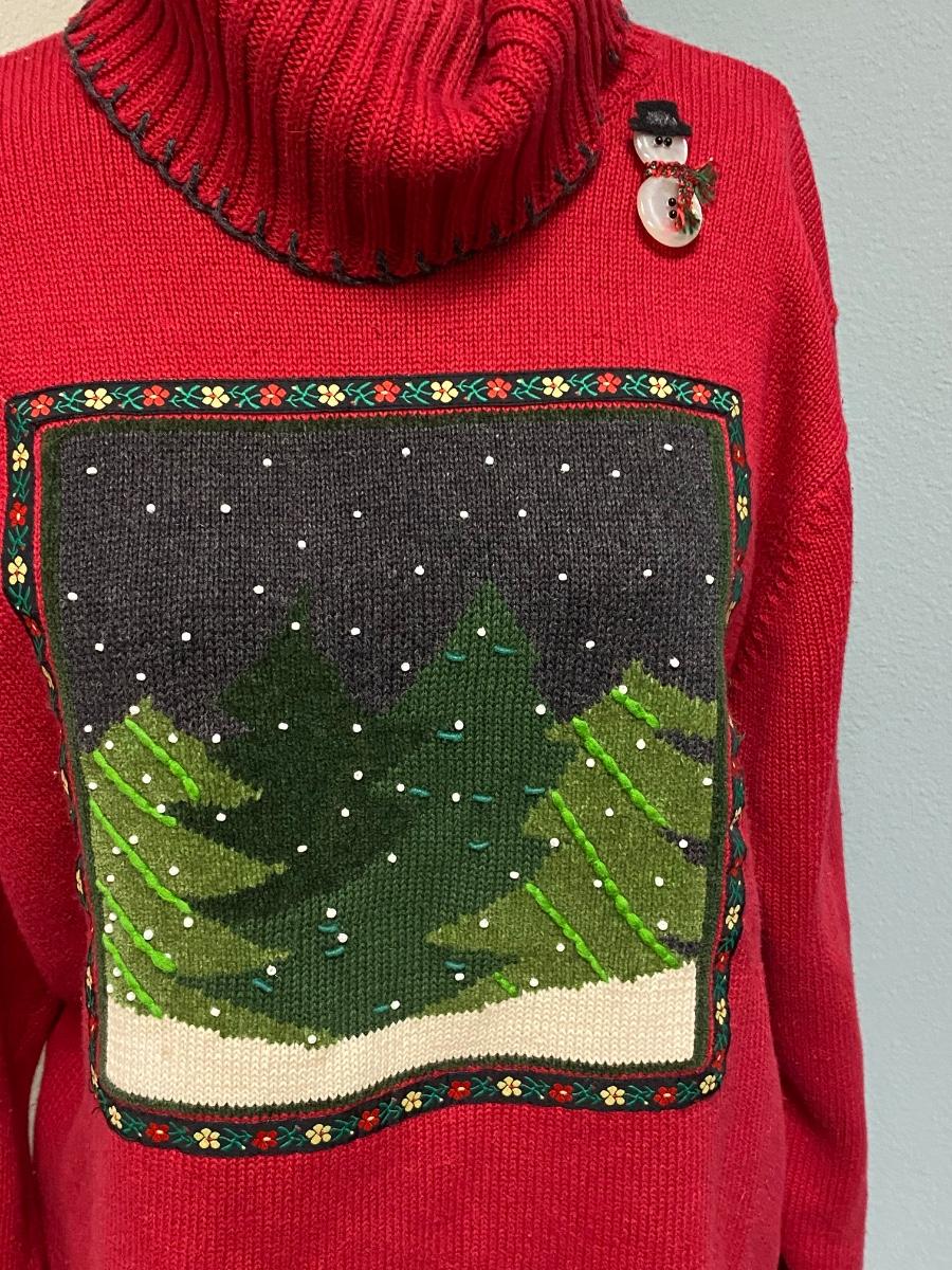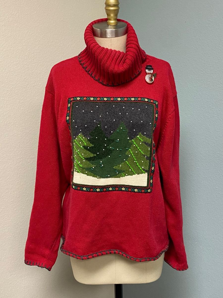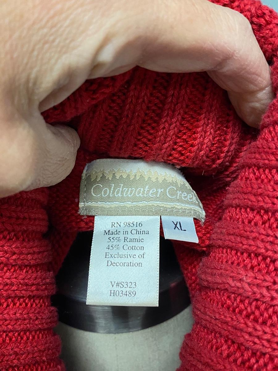Coldwater Creek Red Christmas Winter Holiday Sweater with Pin. Good condition. Size XL.