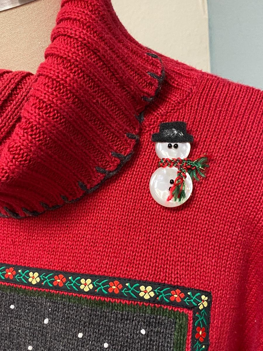 Coldwater Creek Red Christmas Winter Holiday Sweater with Pin