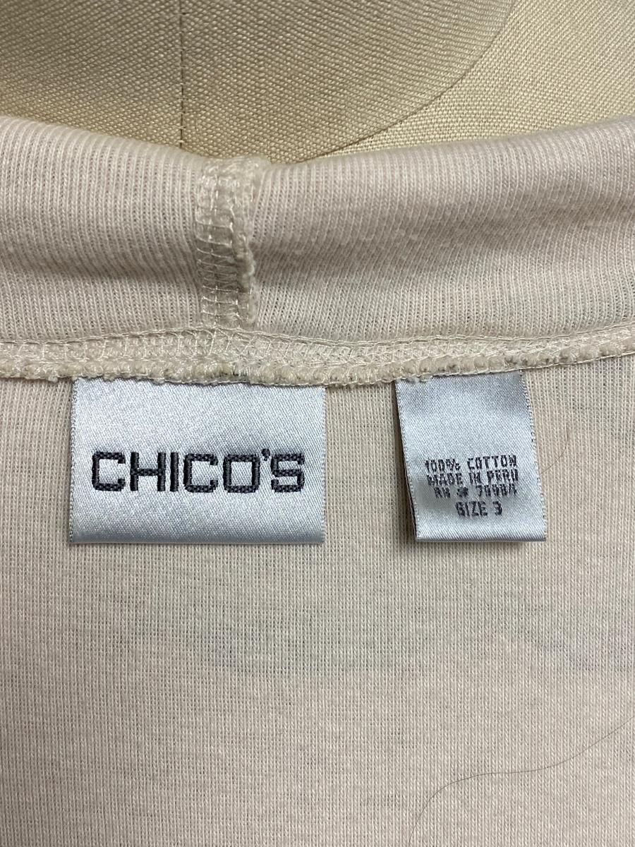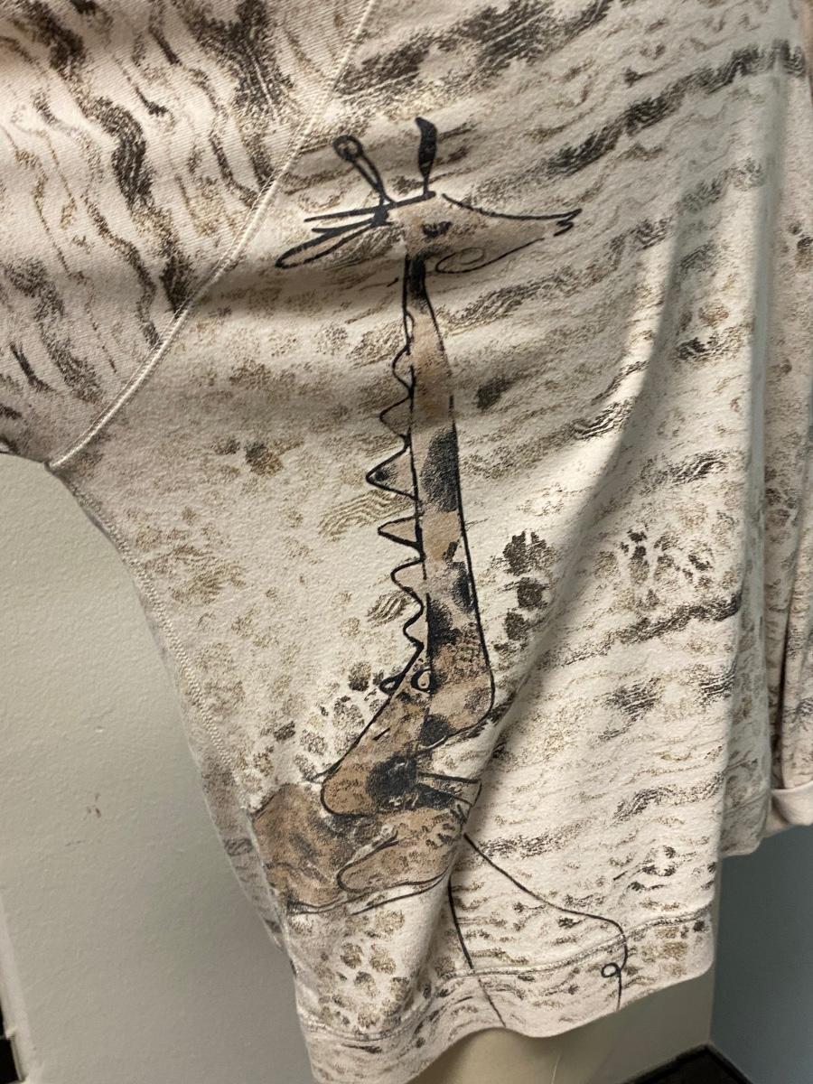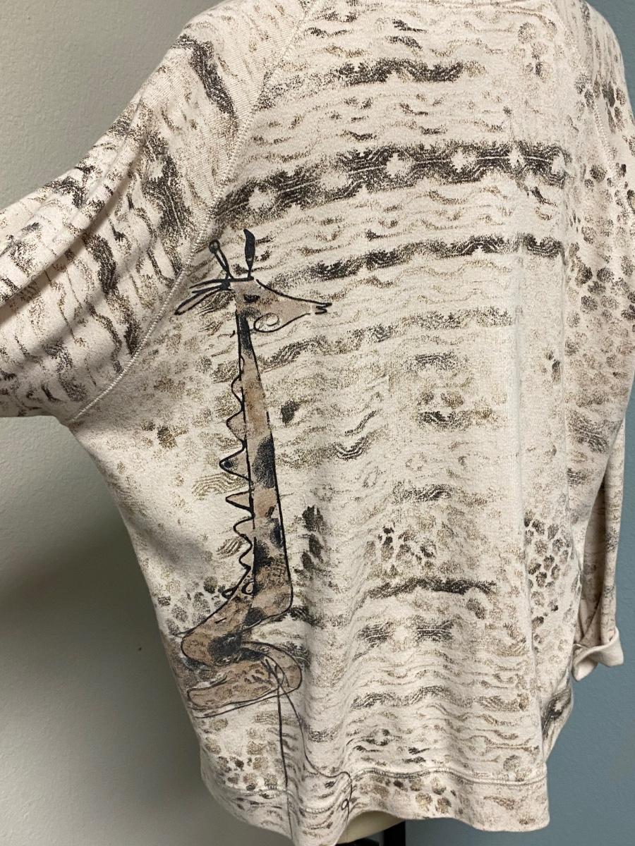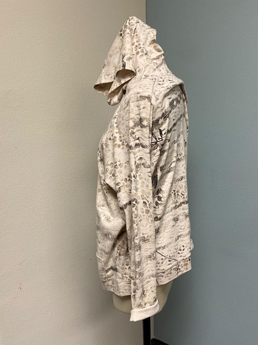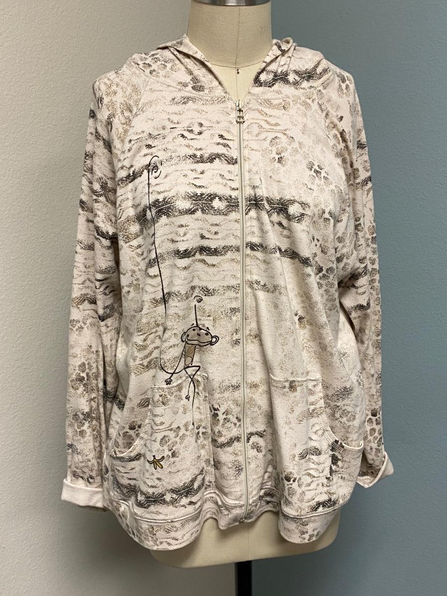 Chico's Lightweight Neutral Colored Animal Monkey Giraffe Printed Zipper Hoodie Jacket. In good condition. Chico's size 3, comparable to a 16/18 or 1X.
