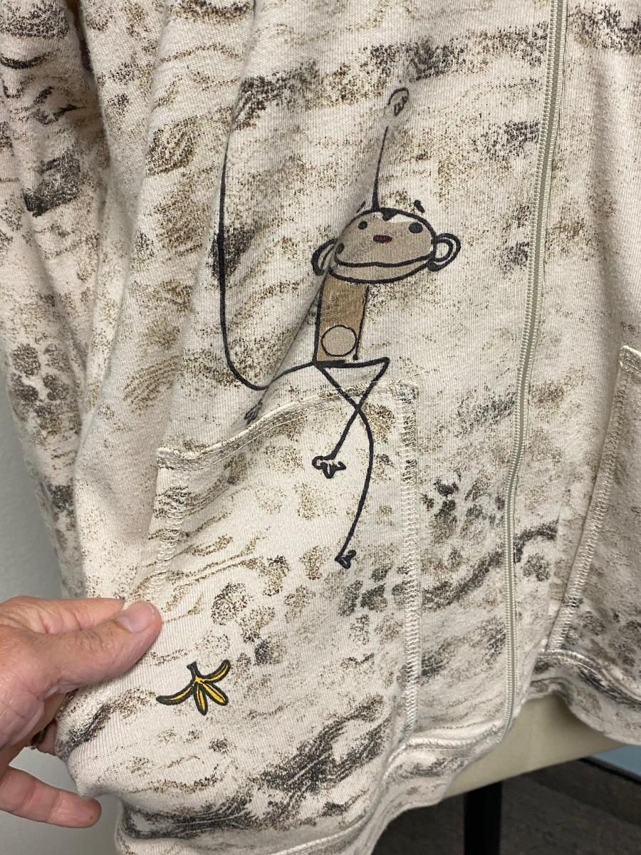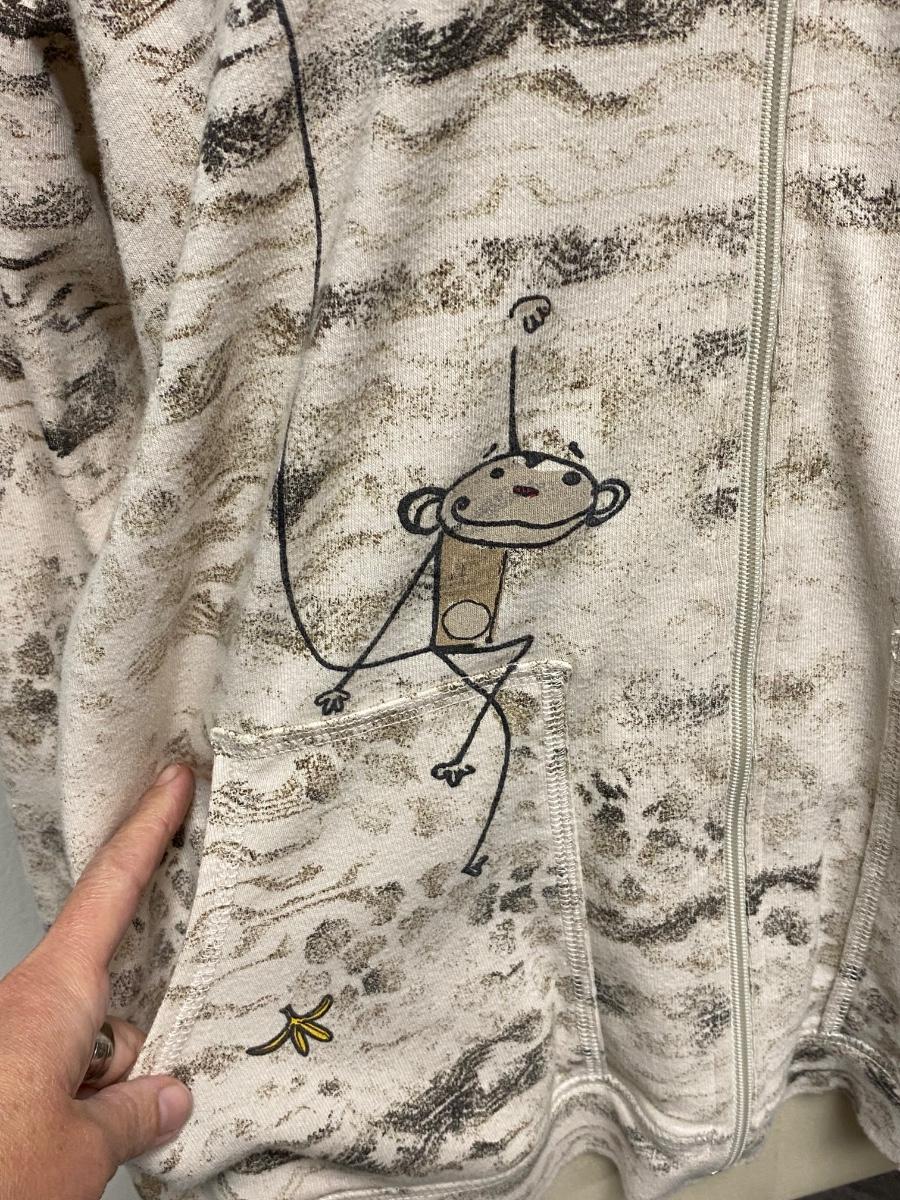 Chico's Lightweight Neutral Colored Animal Monkey Giraffe Printed Zipper Hoodie Jacket