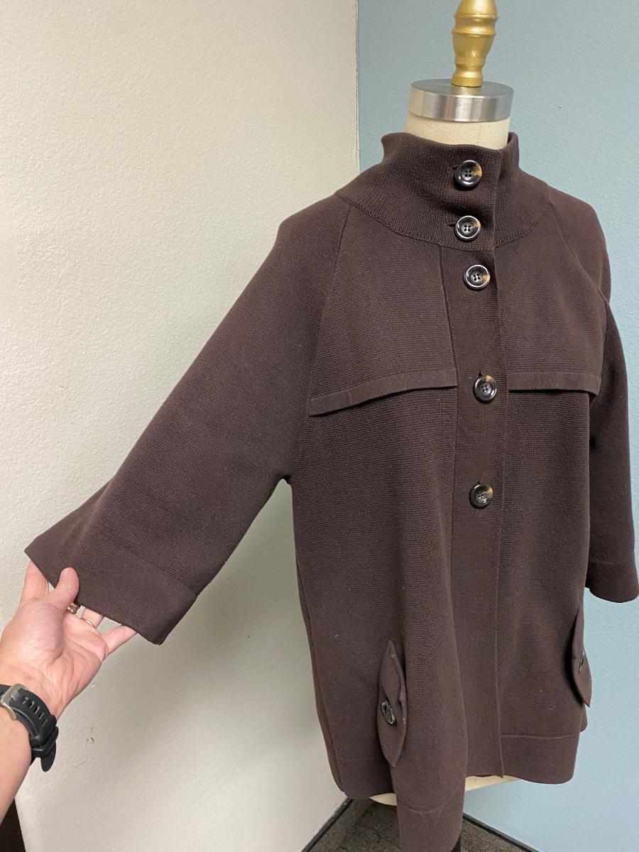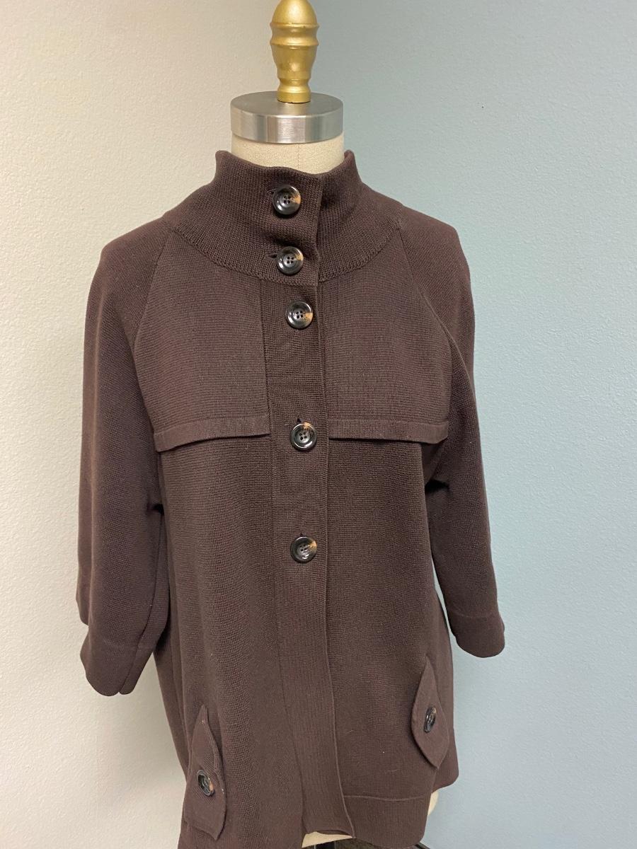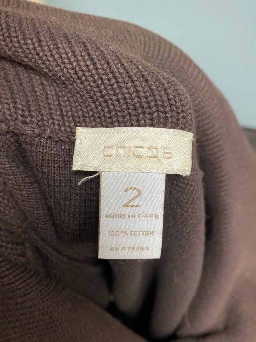 Chico's Size 2 Dark Brown Vintage Styled Tunic Button Front Top. Large buttons on the front, has a vintage style to it. Chico's size 2 is comparable to a size 12 or large.