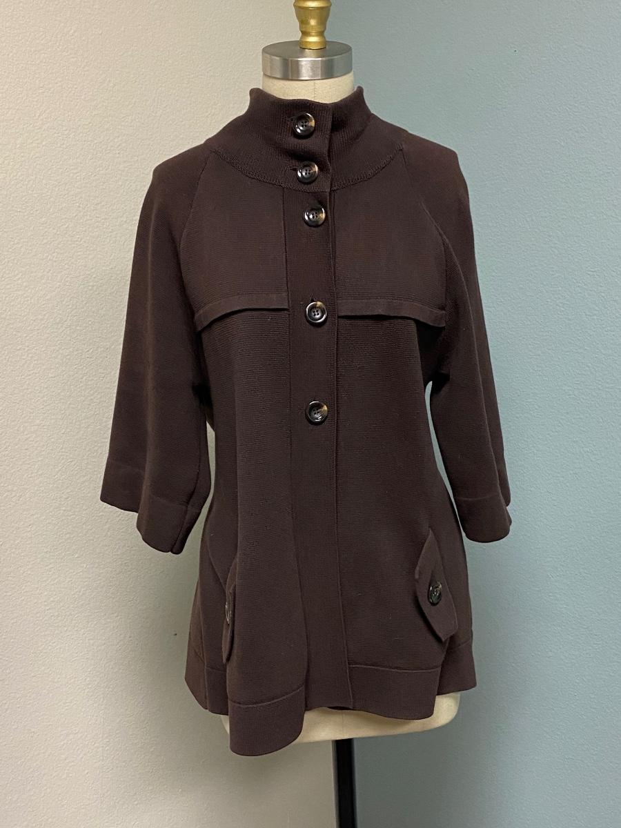 Chico's Size 2 Dark Brown Vintage Styled Tunic Button Front Top